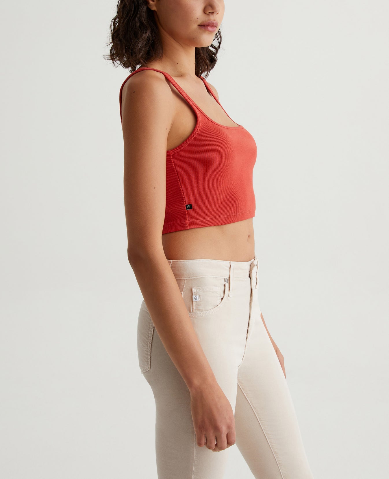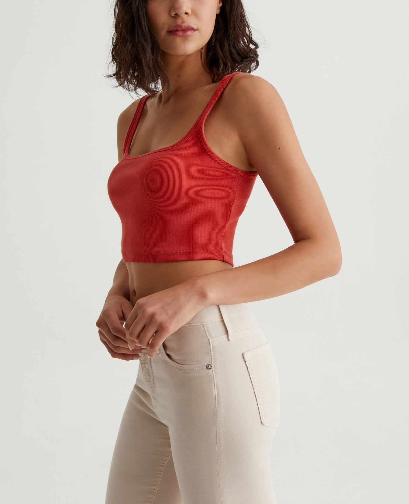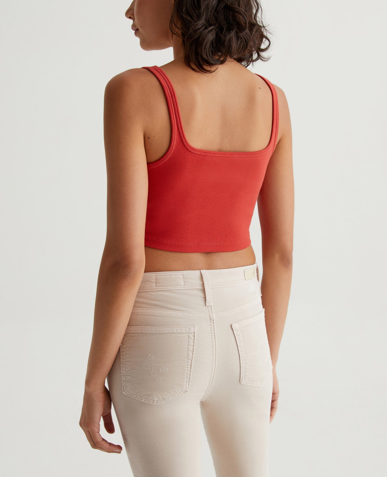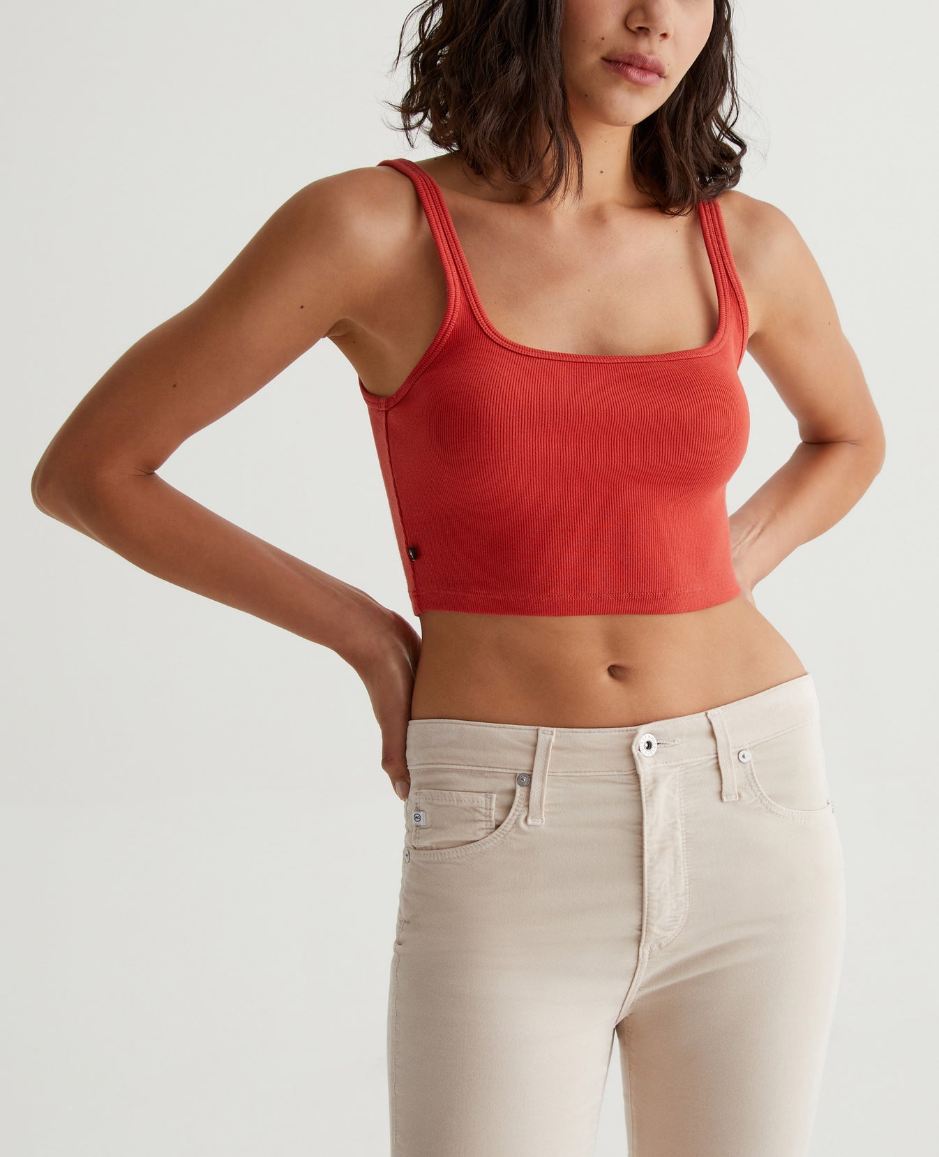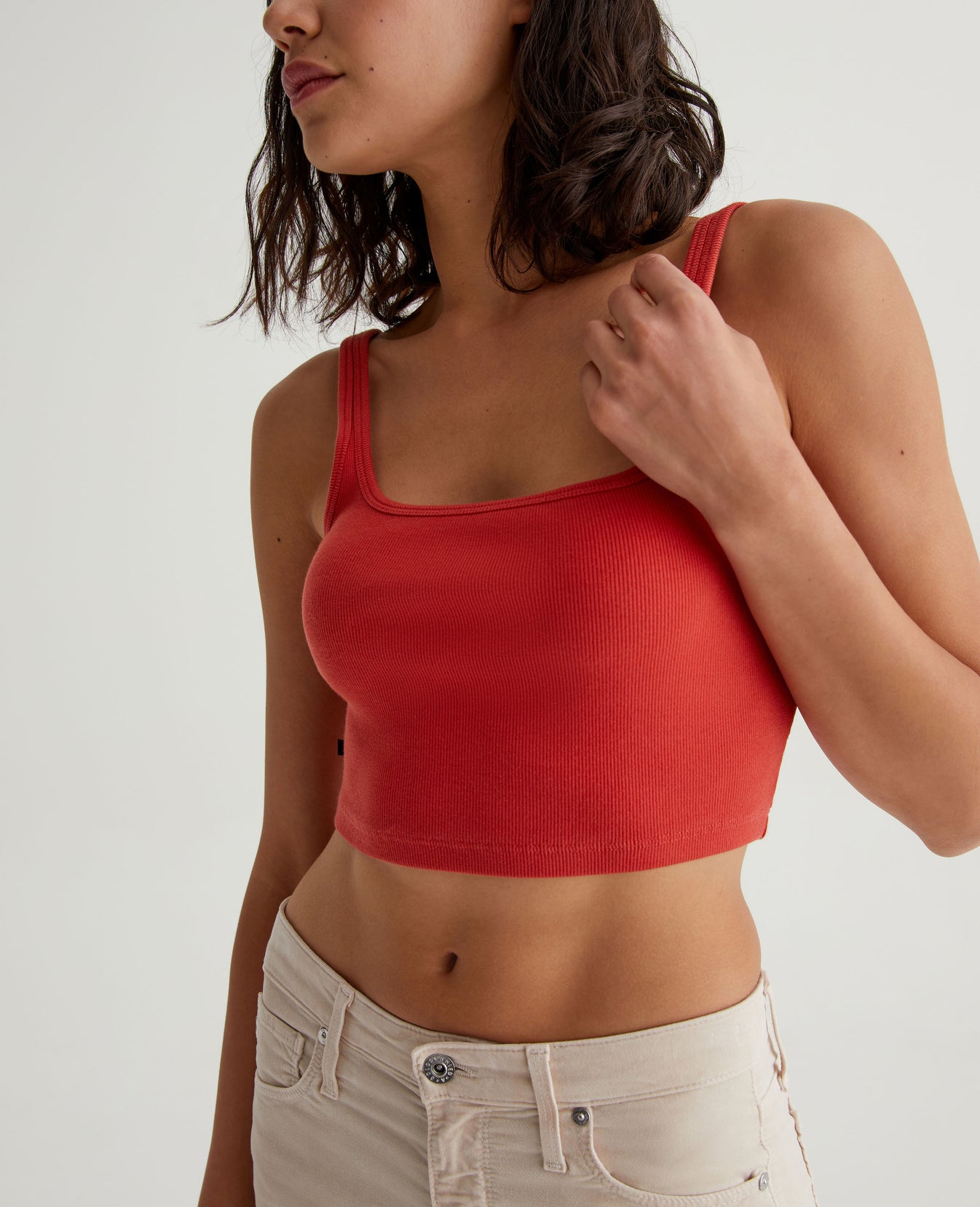 The Cooper tank is cut for a midriff-baring slim fit in a heavy cotton-blend rib knit that gives structure and support to the rounded square-neck design. This tank is easy to dress up or wear casual.