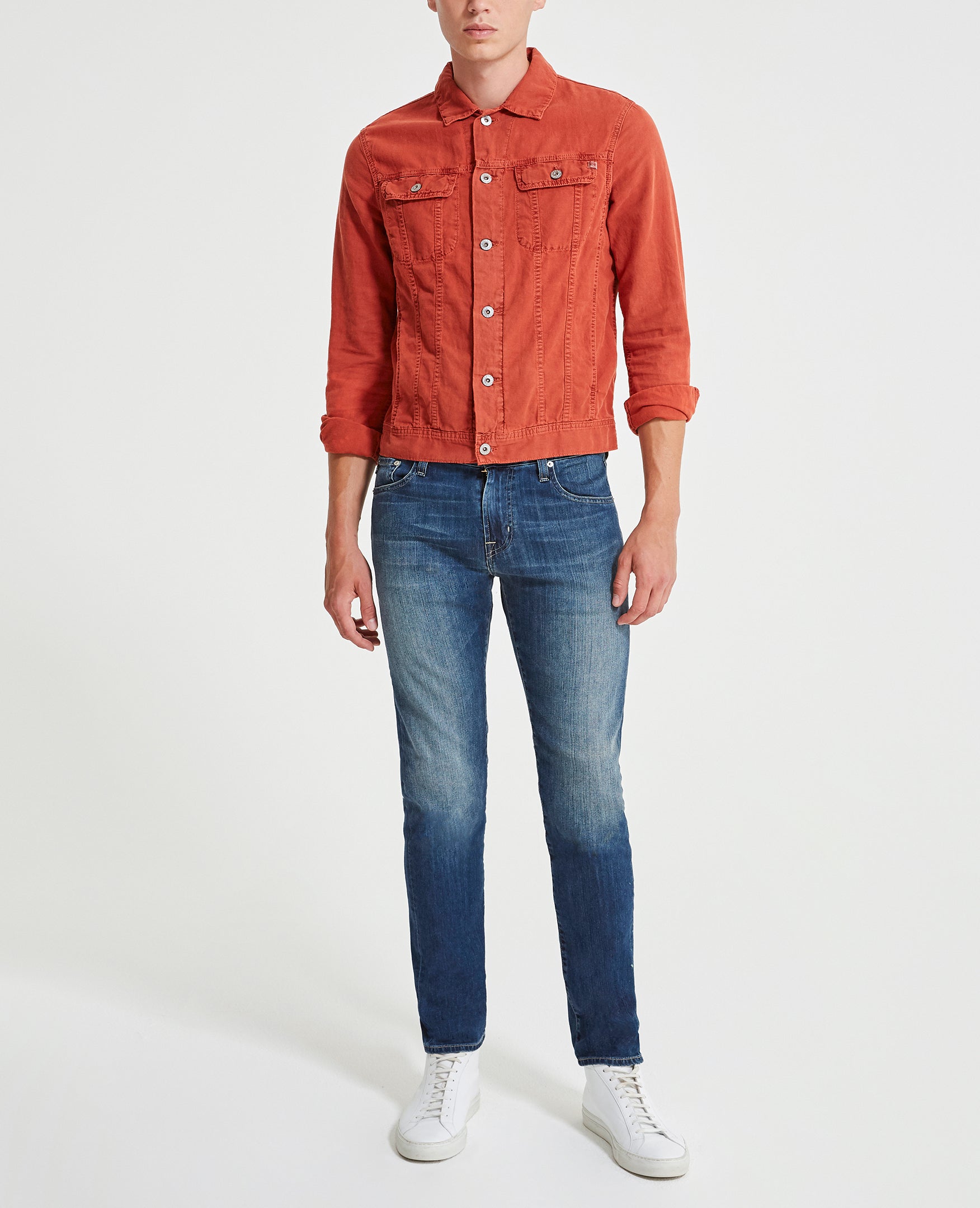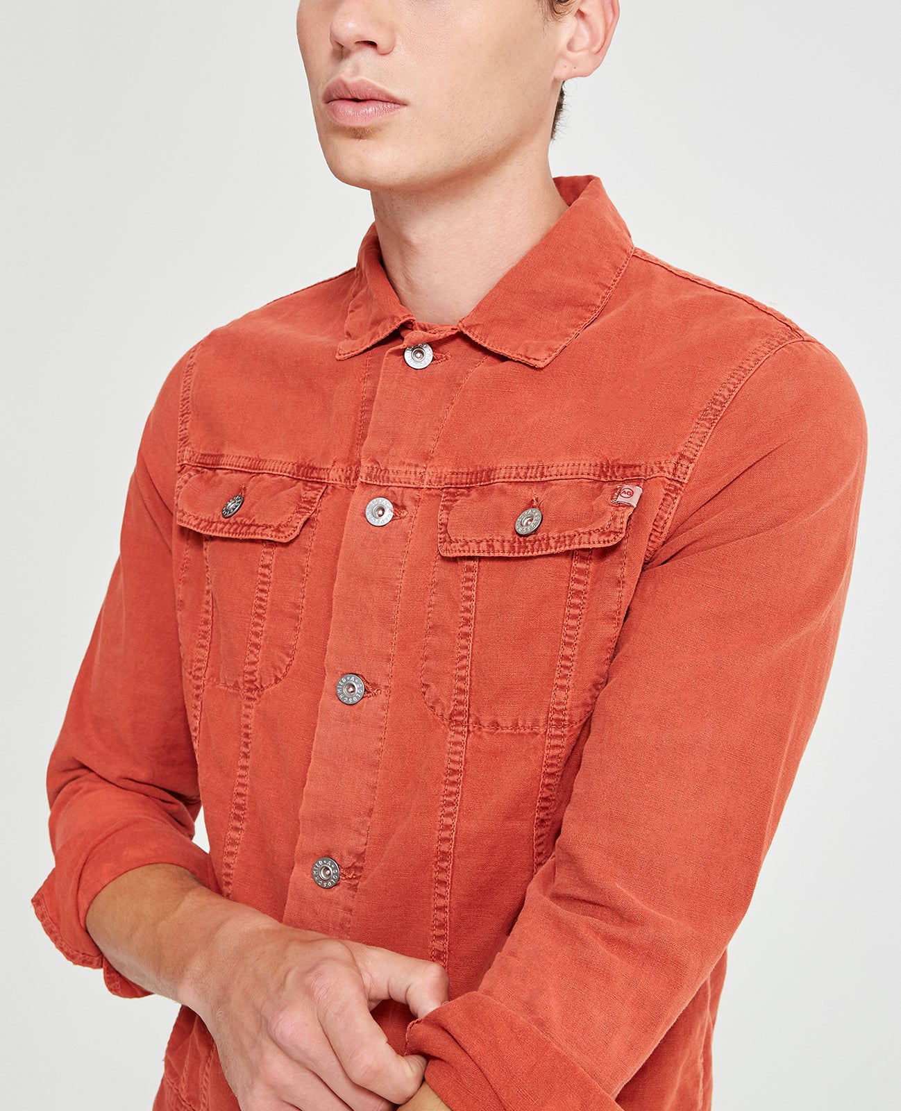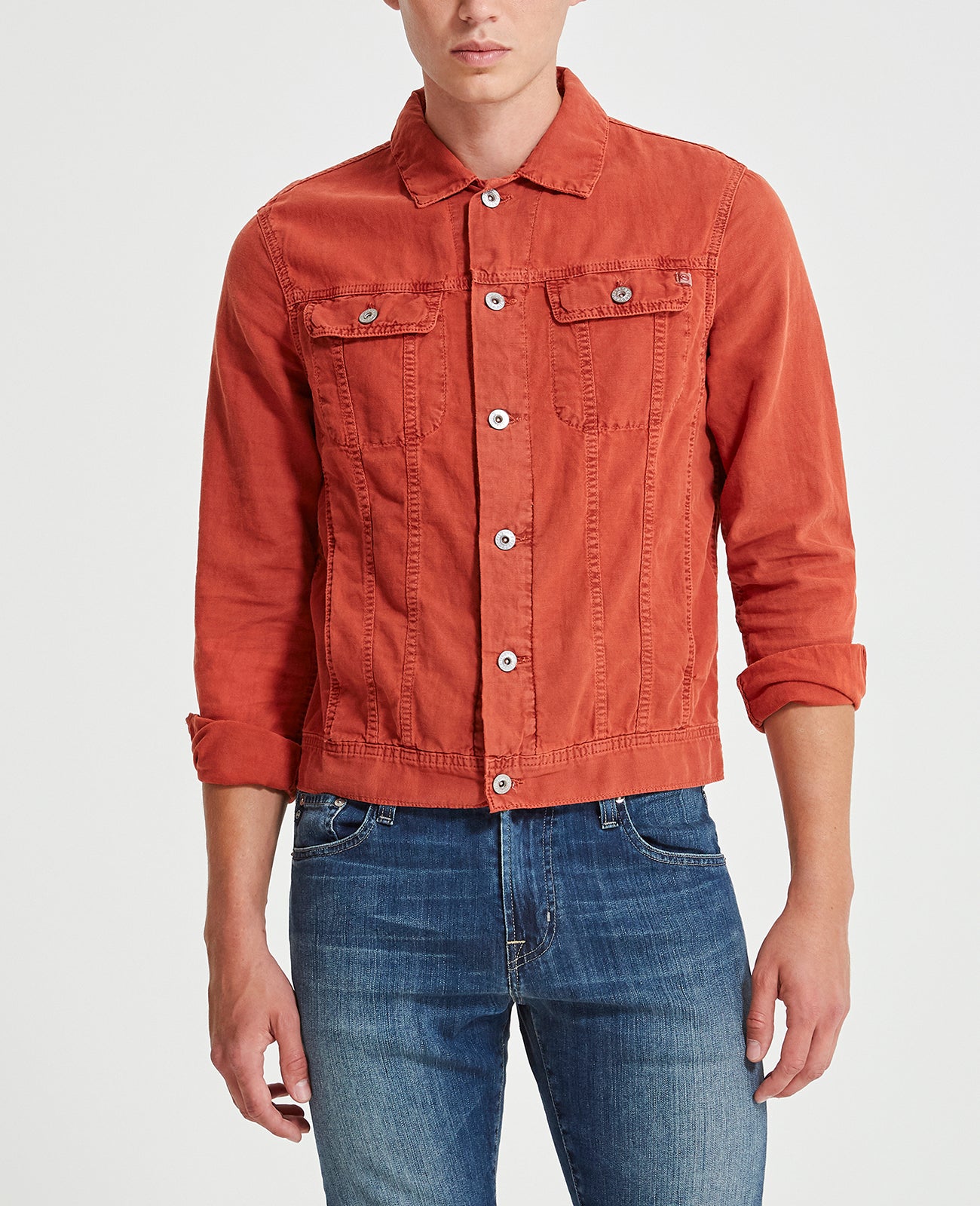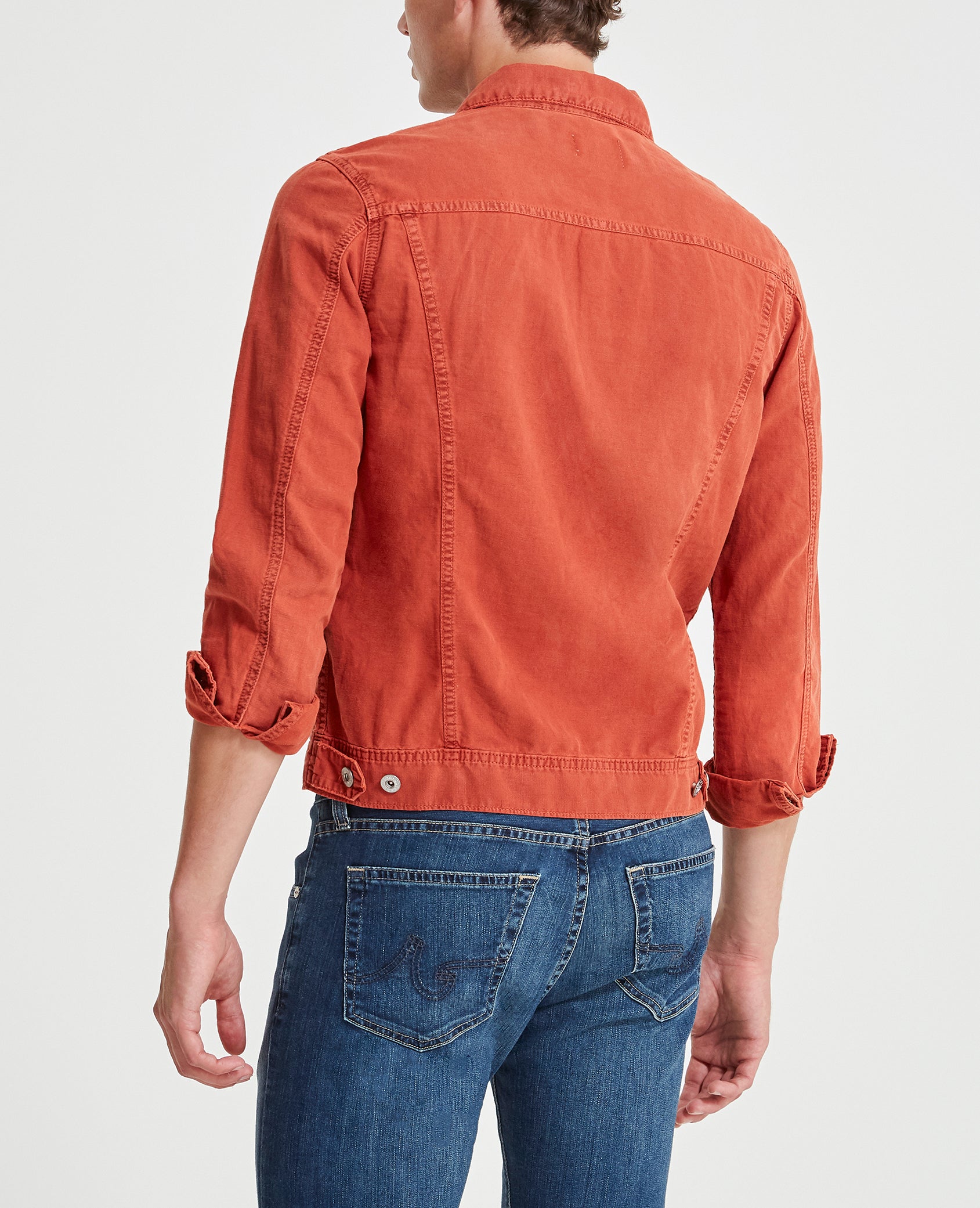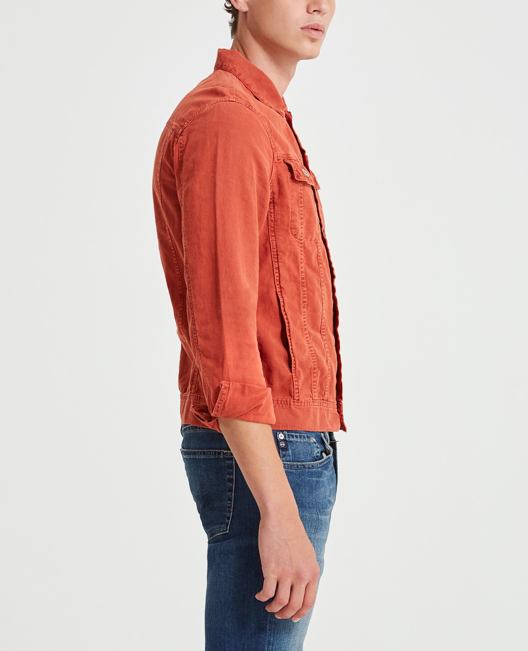 The Dart Jacket is a classic jean jacket for men featuring a vintage brick red hue and an easy silhouette for seasonal styling and everyday wear. This men’s denim jacket is designed in a lightweight cotton linen blend for extra breathability and comfort.
