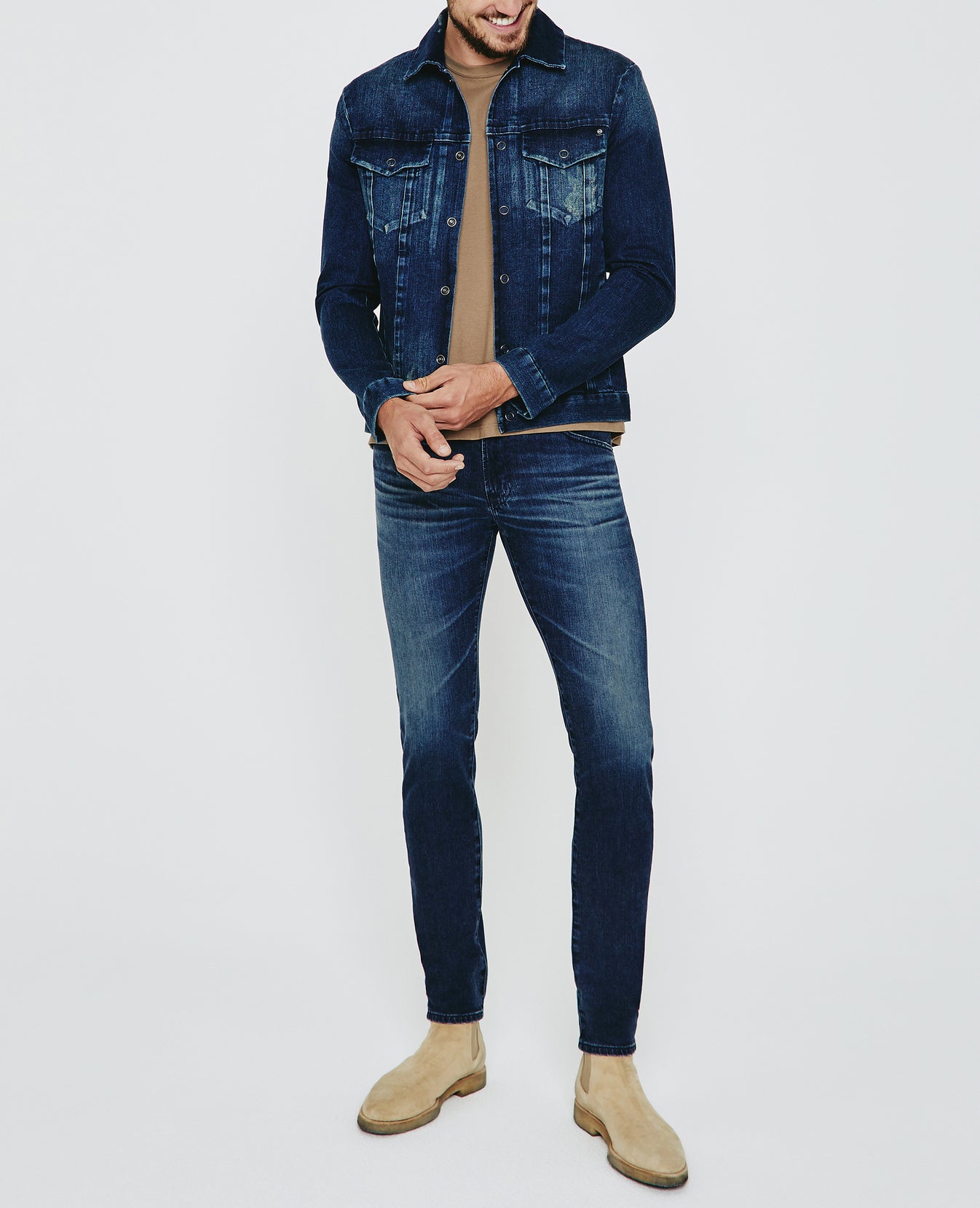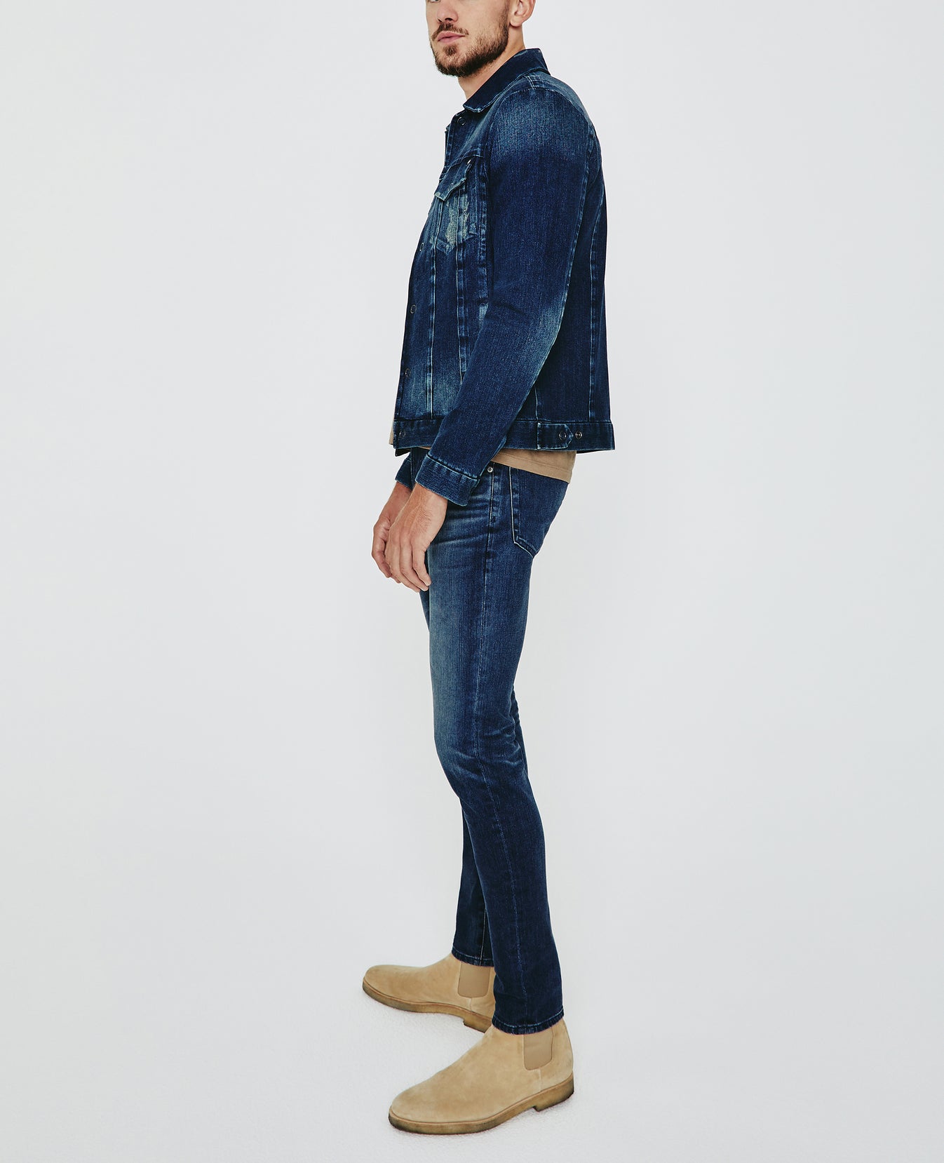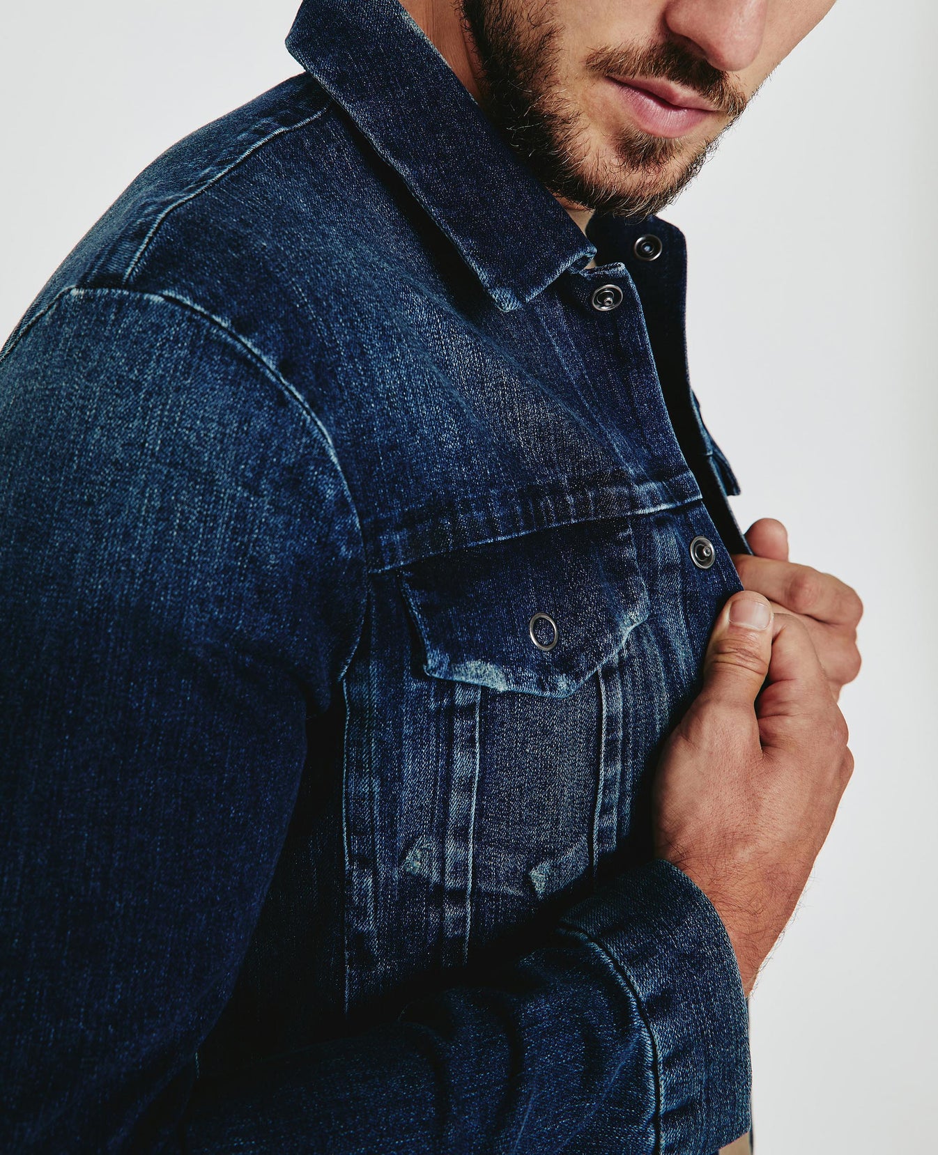 The Dart Jacket is a classic denim jacket for men featuring an authentic, 16-year medium wash that’s been uniquely faded and whiskered to mimic a pair of genuine vintage jeans. The Dart Jacket offers an easy silhouette for seasonal styling and everyday wear. This men’s jean jacket is designed in an 11 oz. Japanese denim with comfort stretch for everyday wear.