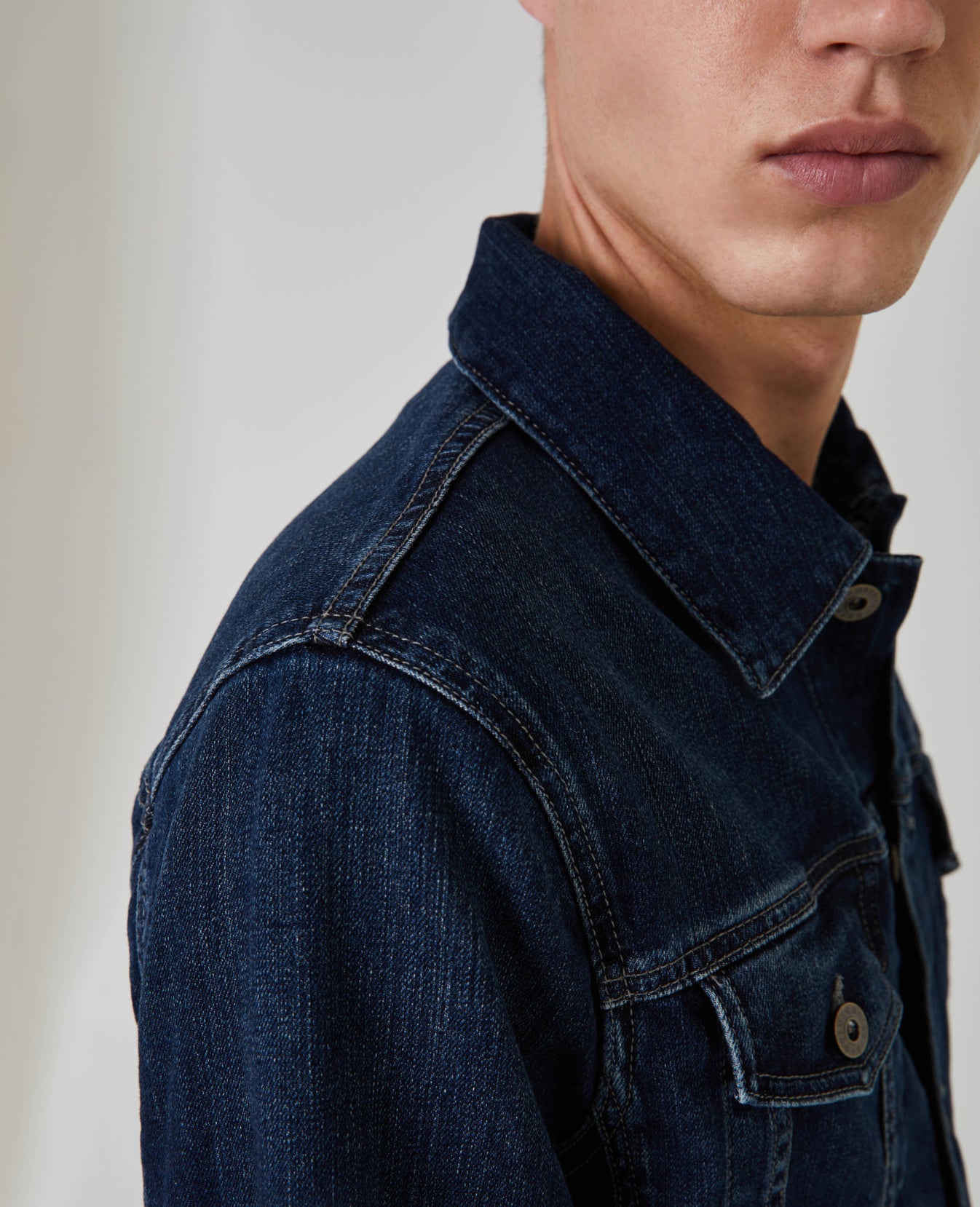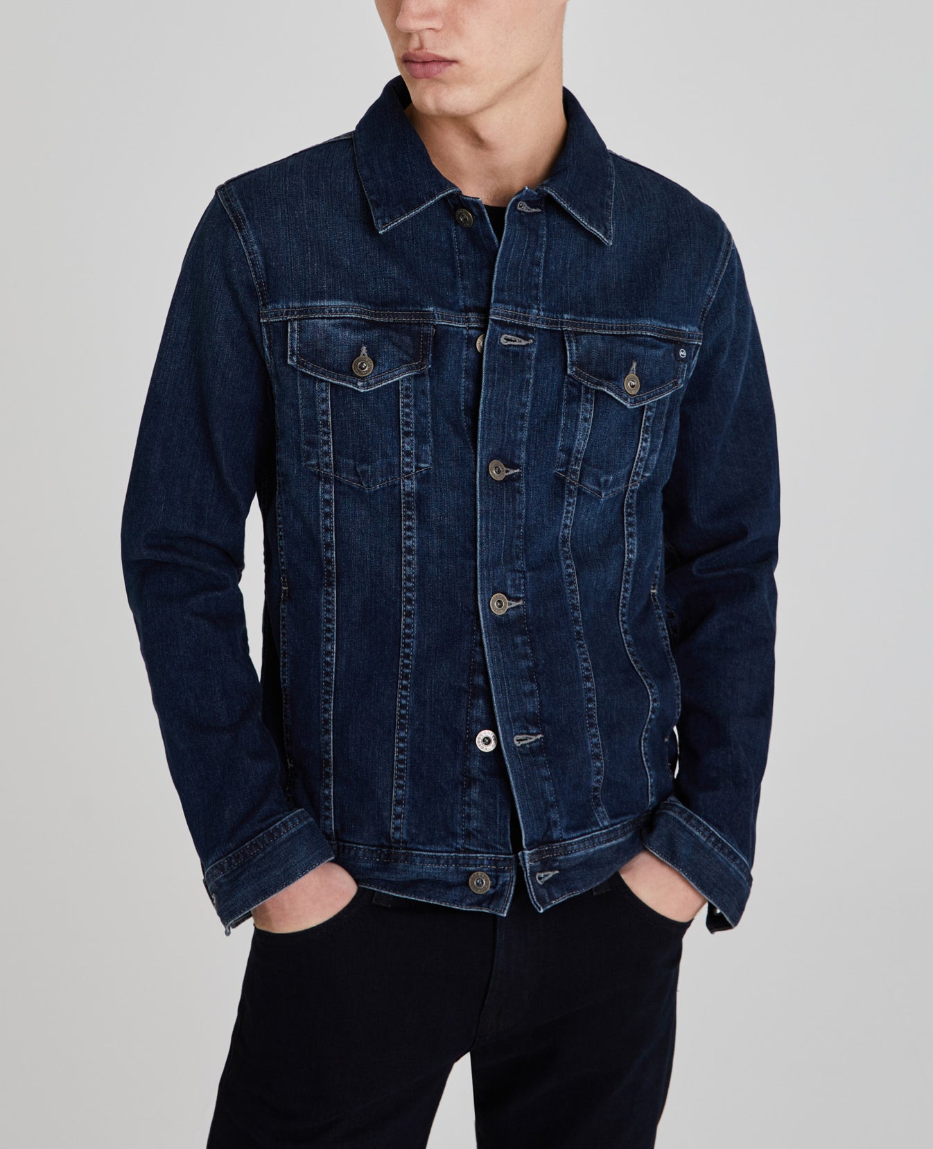 The Dart Jacket is a classic jean jacket for men featuring a classic dark wash. The Dart Jacket offers an easy silhouette for seasonal styling and everyday wear. This men’s denim jacket is designed in an 11 oz. Japanese denim with comfort stretch for everyday wear.