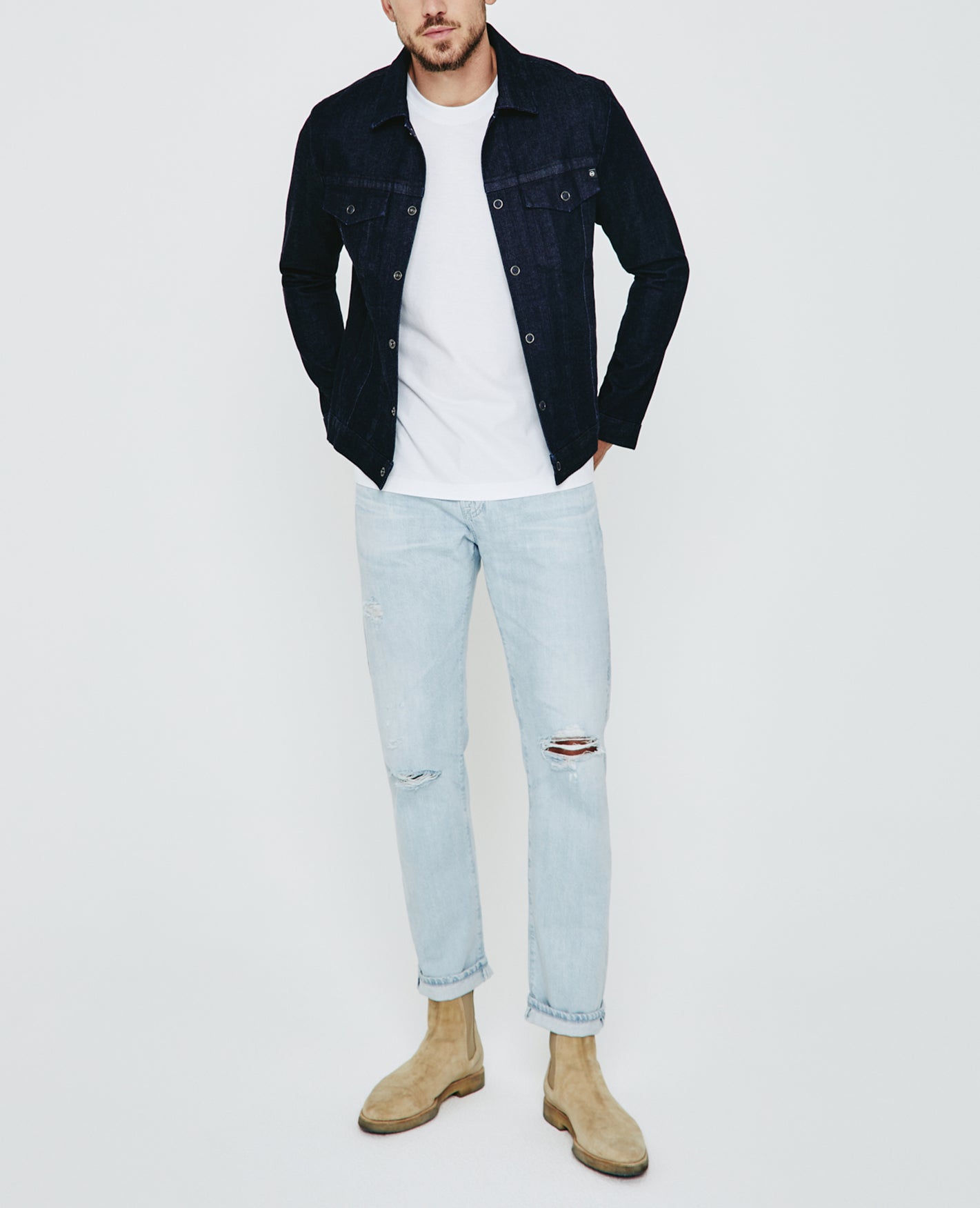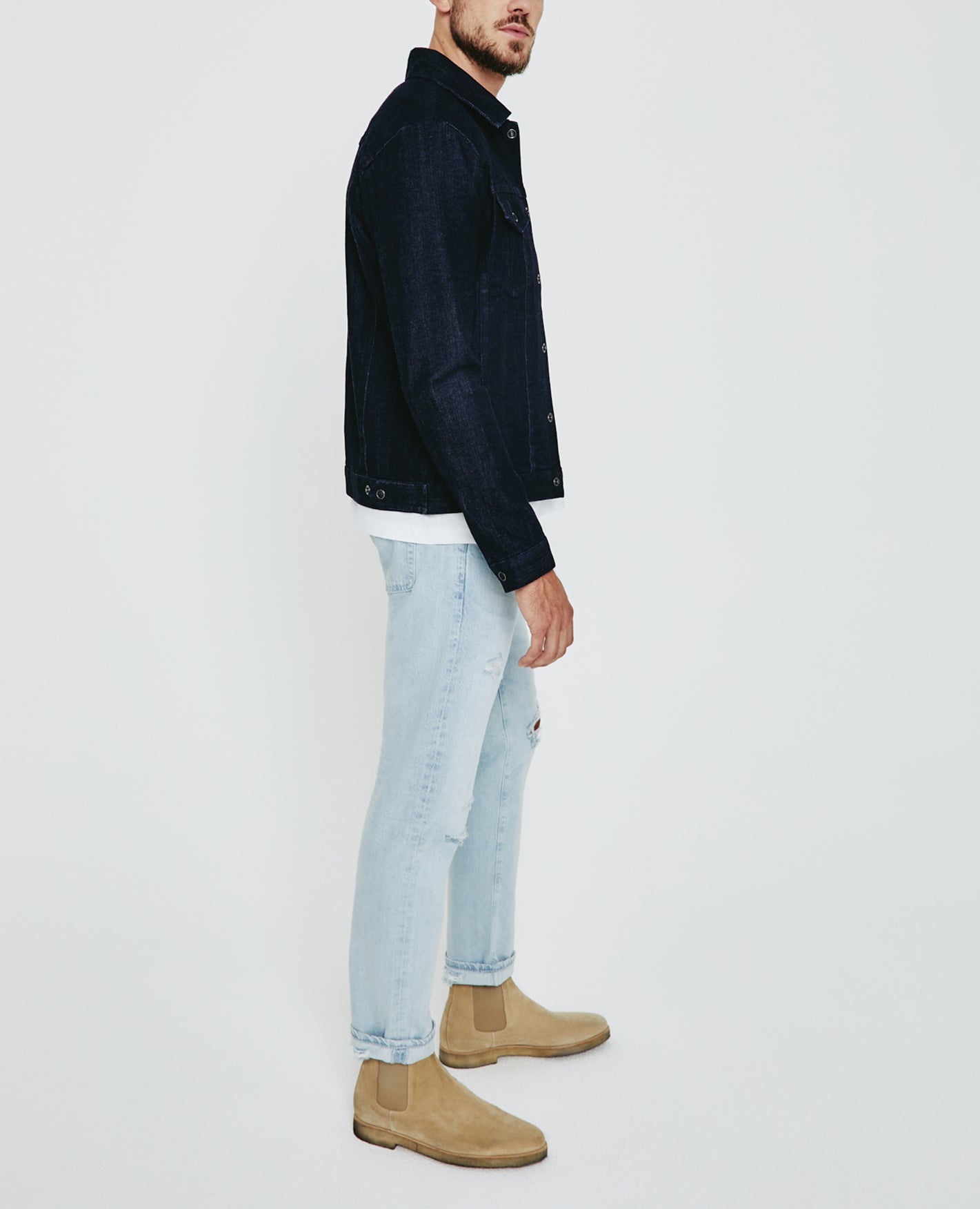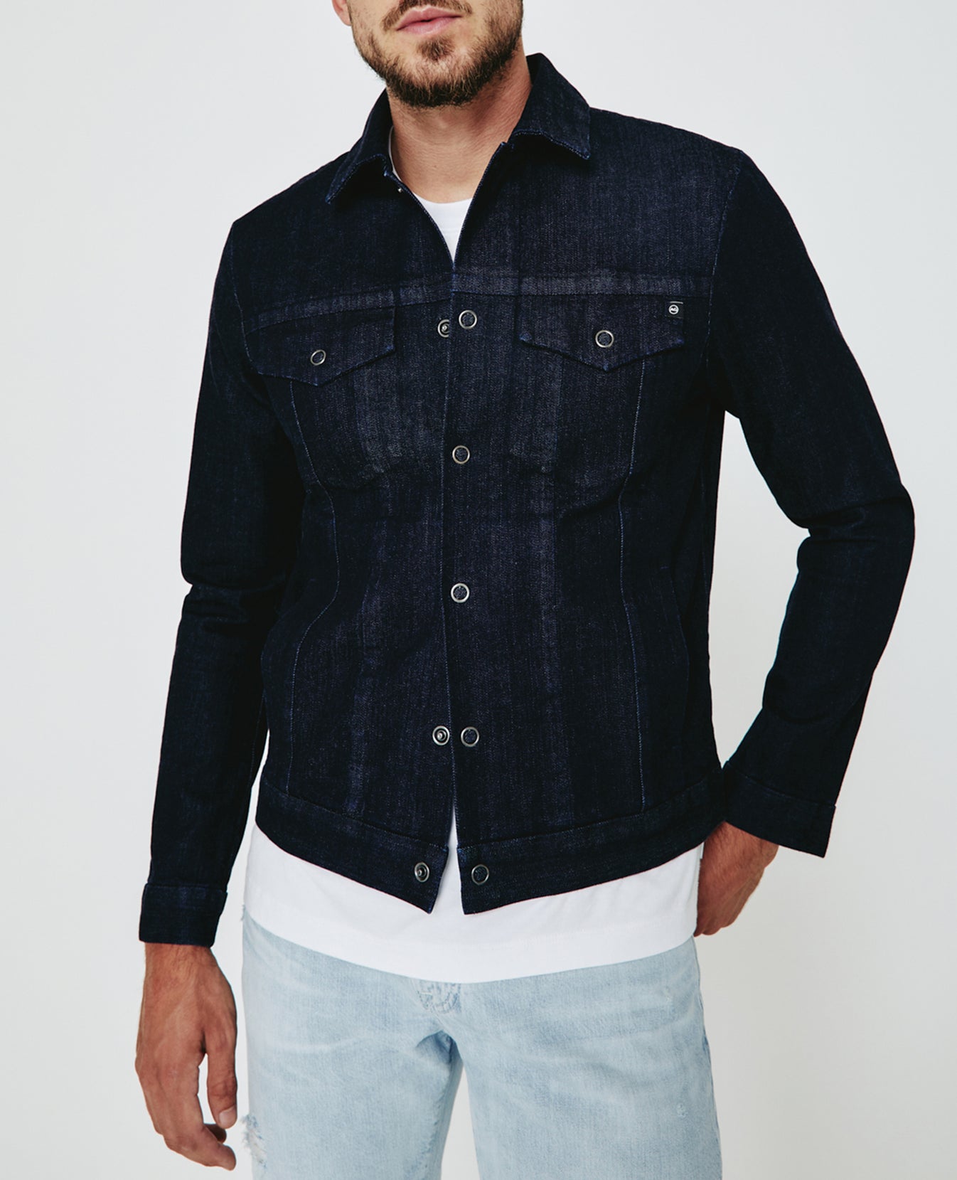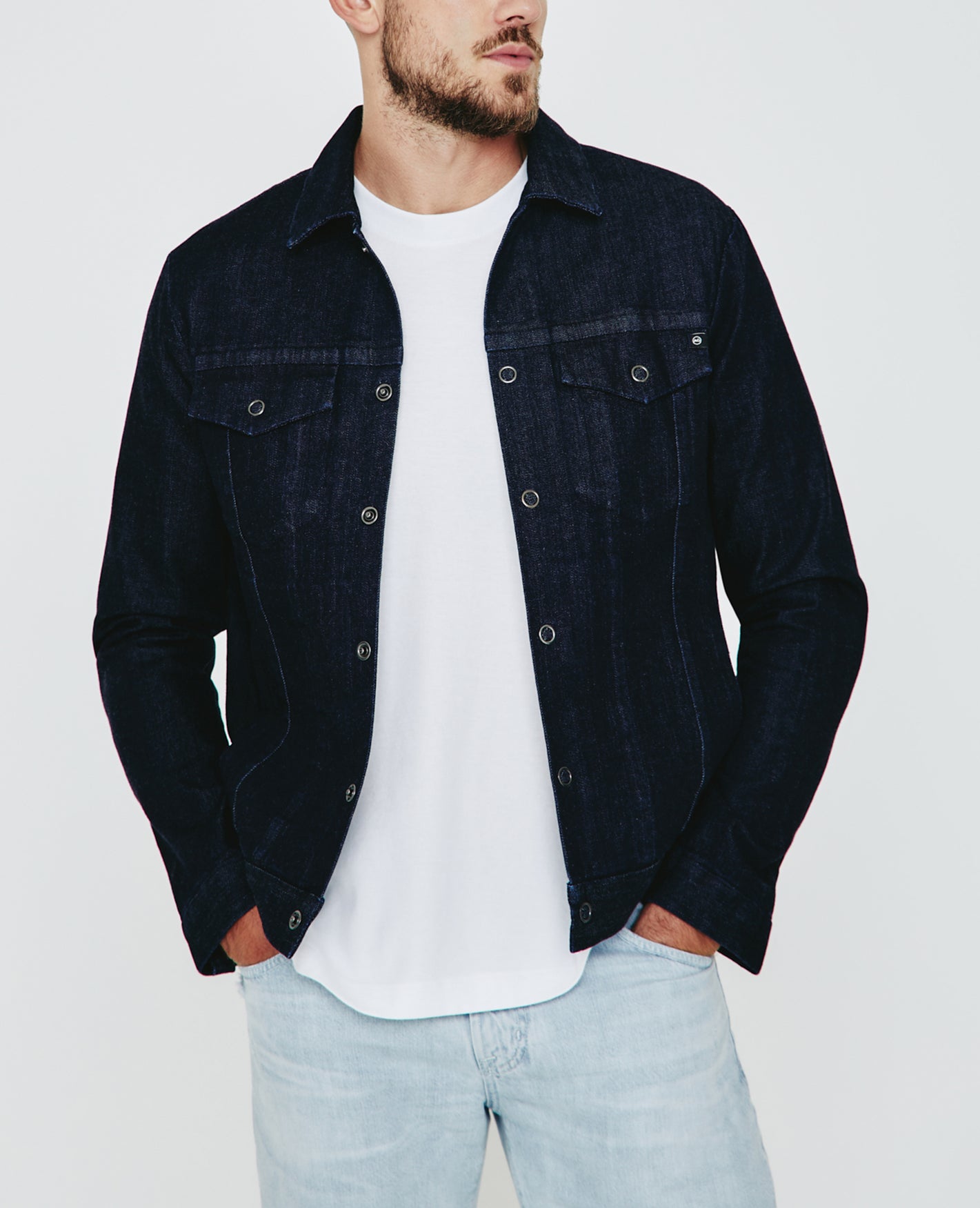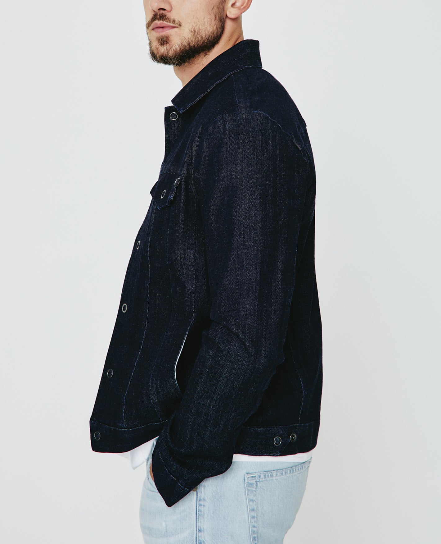 The Dart Jacket is a classic denim jacket for men featuring a dark indigo wash. The Dart Jacket offers an easy silhouette for seasonal styling and everyday wear. This men’s jean jacket is designed in an 11 oz. Japanese denim with comfort stretch for everyday wear.