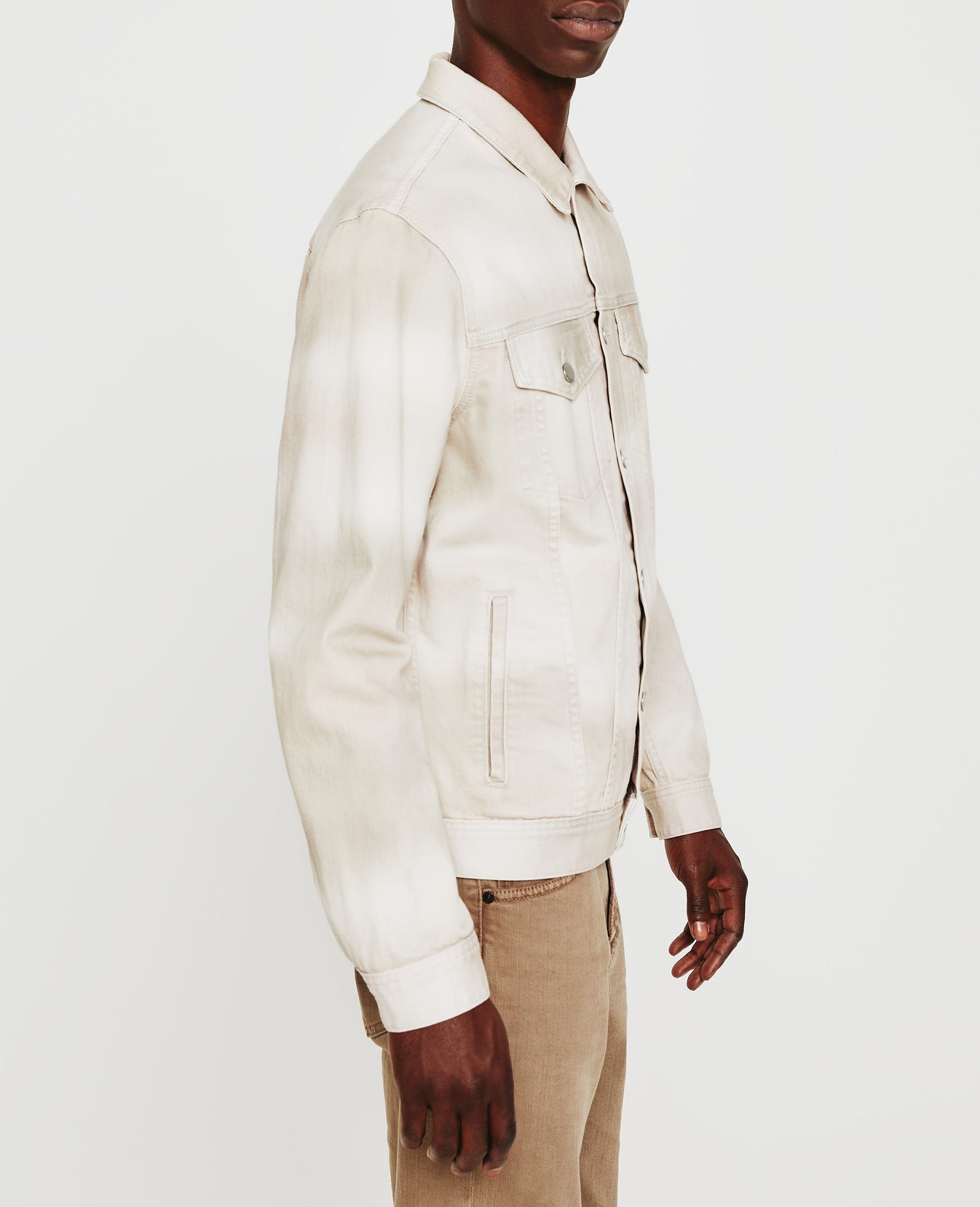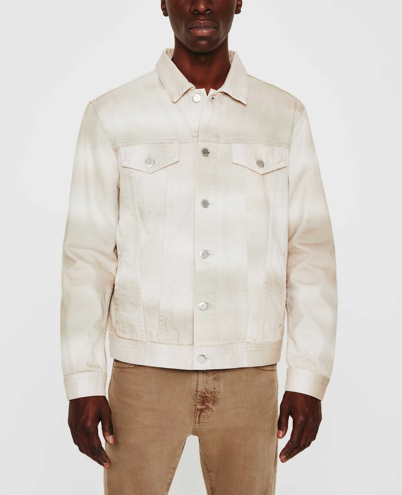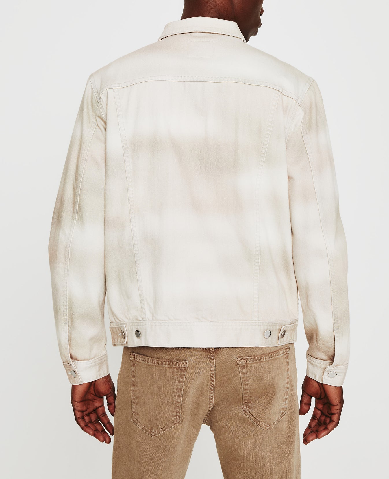 The Dart Jacket is an updated take on the classic jean jacket for men, refreshed with a hazy color treatment of neutral hues. Accented with flap pockets and shank buttons, this men's denim trucker jacket comes in 10 oz. Dover Stretch Denim for comfortable everyday wear.