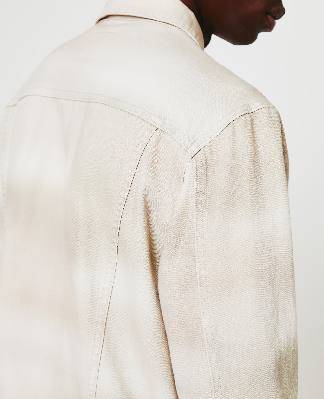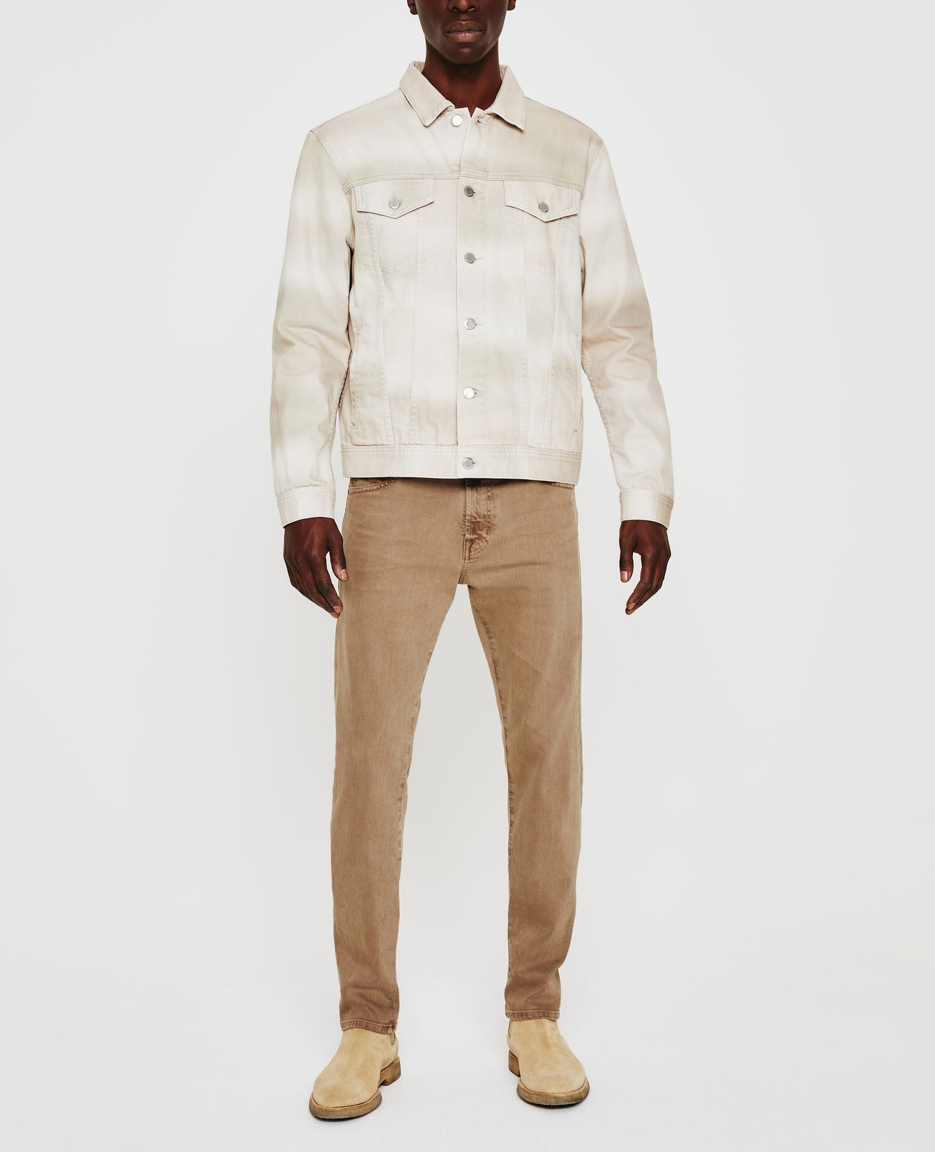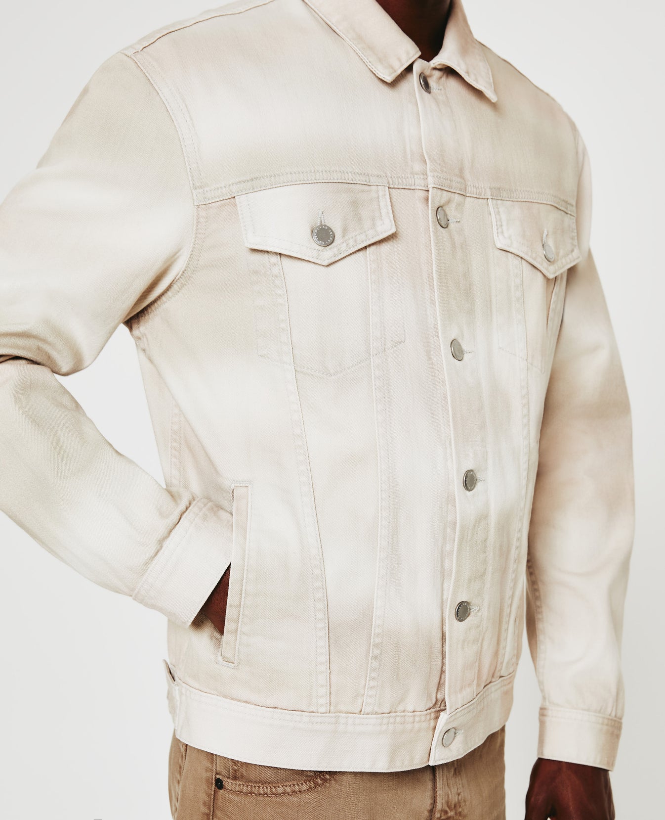 The Dart Jacket is an updated take on the classic jean jacket for men, refreshed with a hazy color treatment of neutral hues. Accented with flap pockets and shank buttons, this men's denim trucker jacket comes in 10 oz. Dover Stretch Denim for comfortable everyday wear.