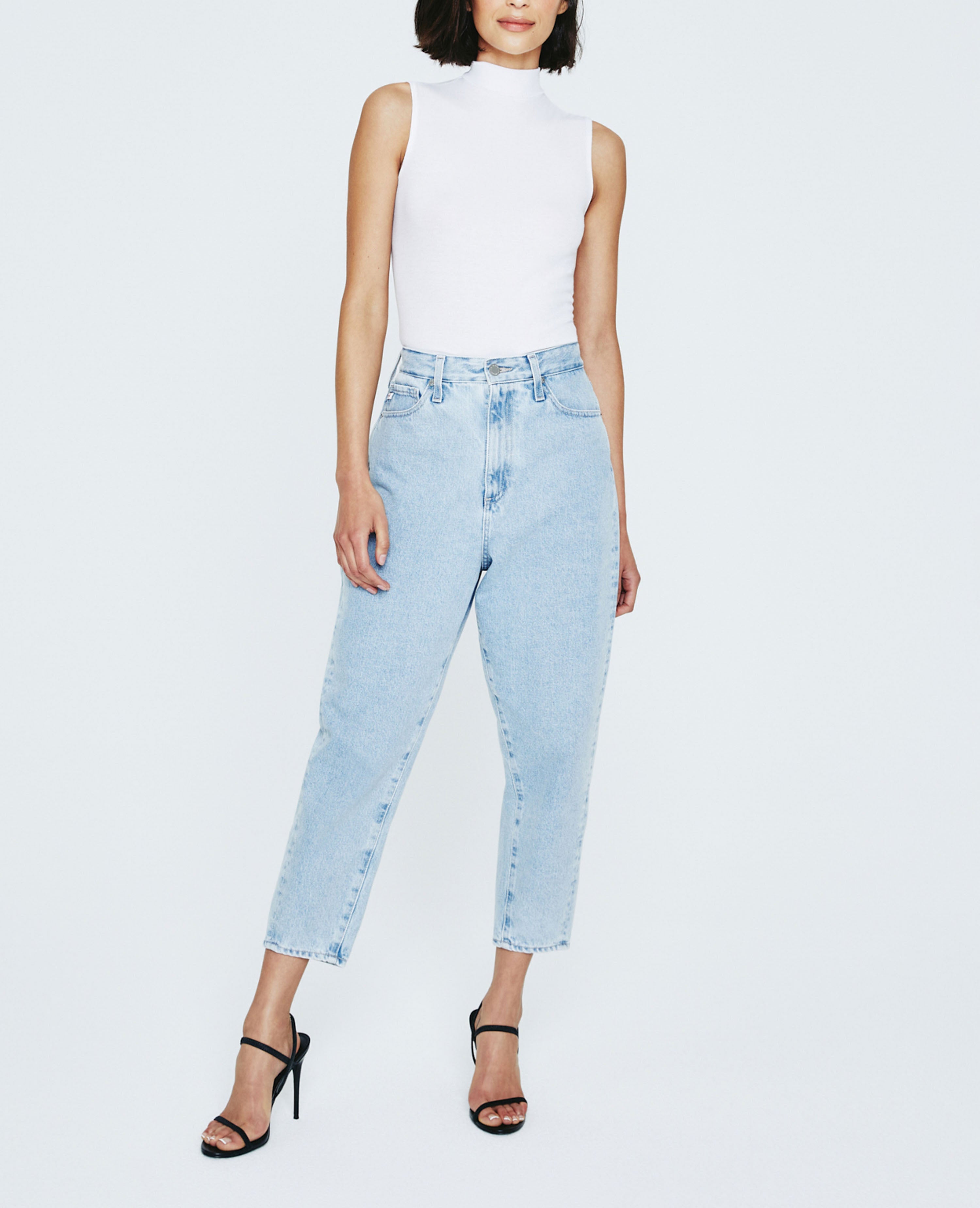 The Edie Sleeveless Turtleneck is a ribbed knit basic that is not confined by colder months. Our in-house looms deliver the precision knitting needed to accomplish the characteristic 2 X 1 weave that lends to the fabric’s superior comfort and draping qualities. Designed in a premium white spandex and 2 X 1 Lyocell Rib fabrication. Made with Eucalyptus, our lyocell is plant-based, biodegradable, and uses 20% less resources to develop.