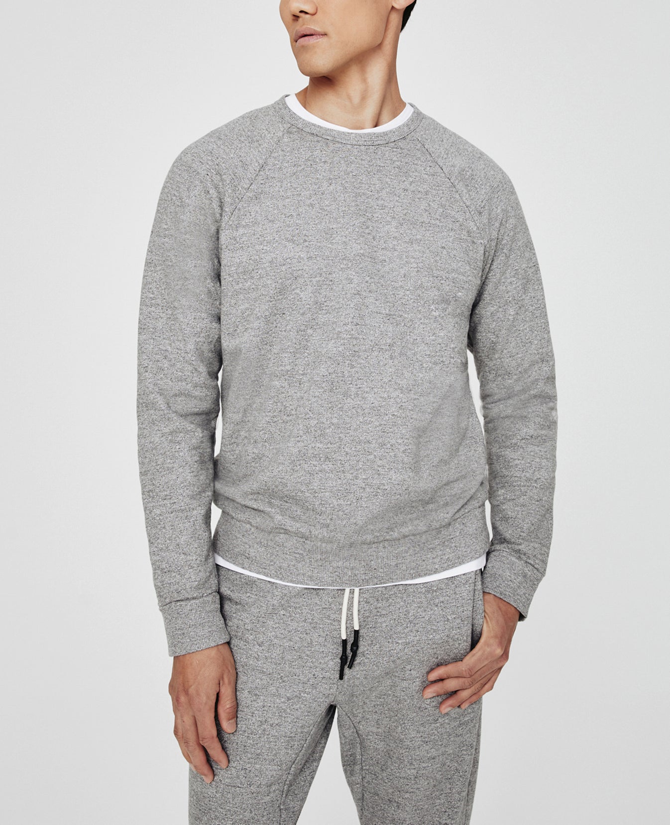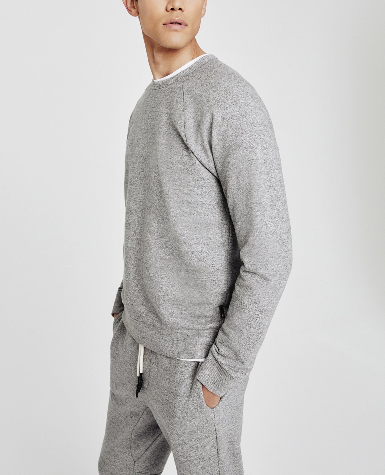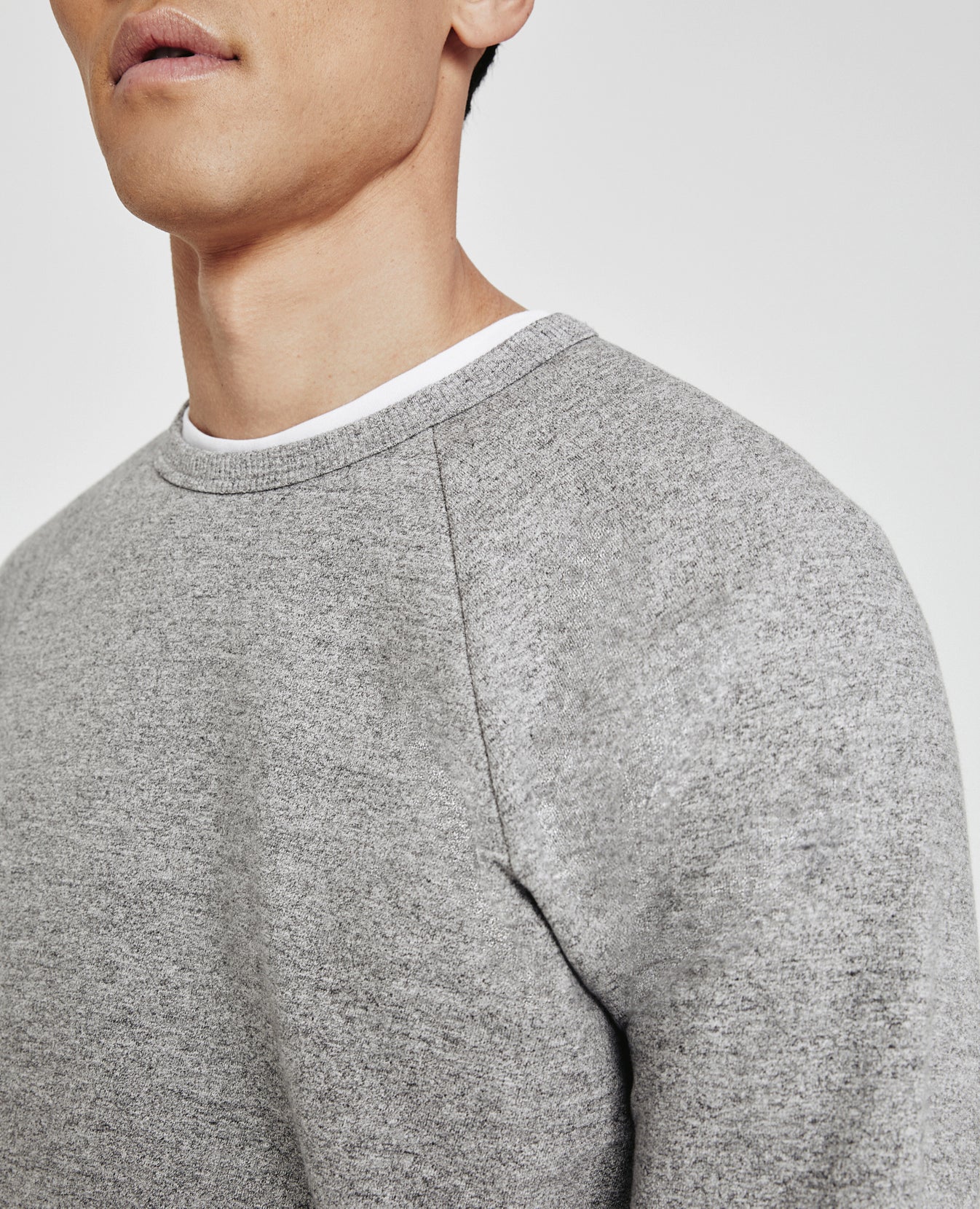 The Elba Crew is a pullover sweatshirt for men in a soft heather grey. The Elba offers a classic crew neckline, raglan sleeves, relaxed silhouette, and vintage-inspired ribbing at the waist and sleeves. This men’s sweatshirt is designed in a luxurious Soft Heather Terry featuring a lightweight feel and ultra-soft touch.