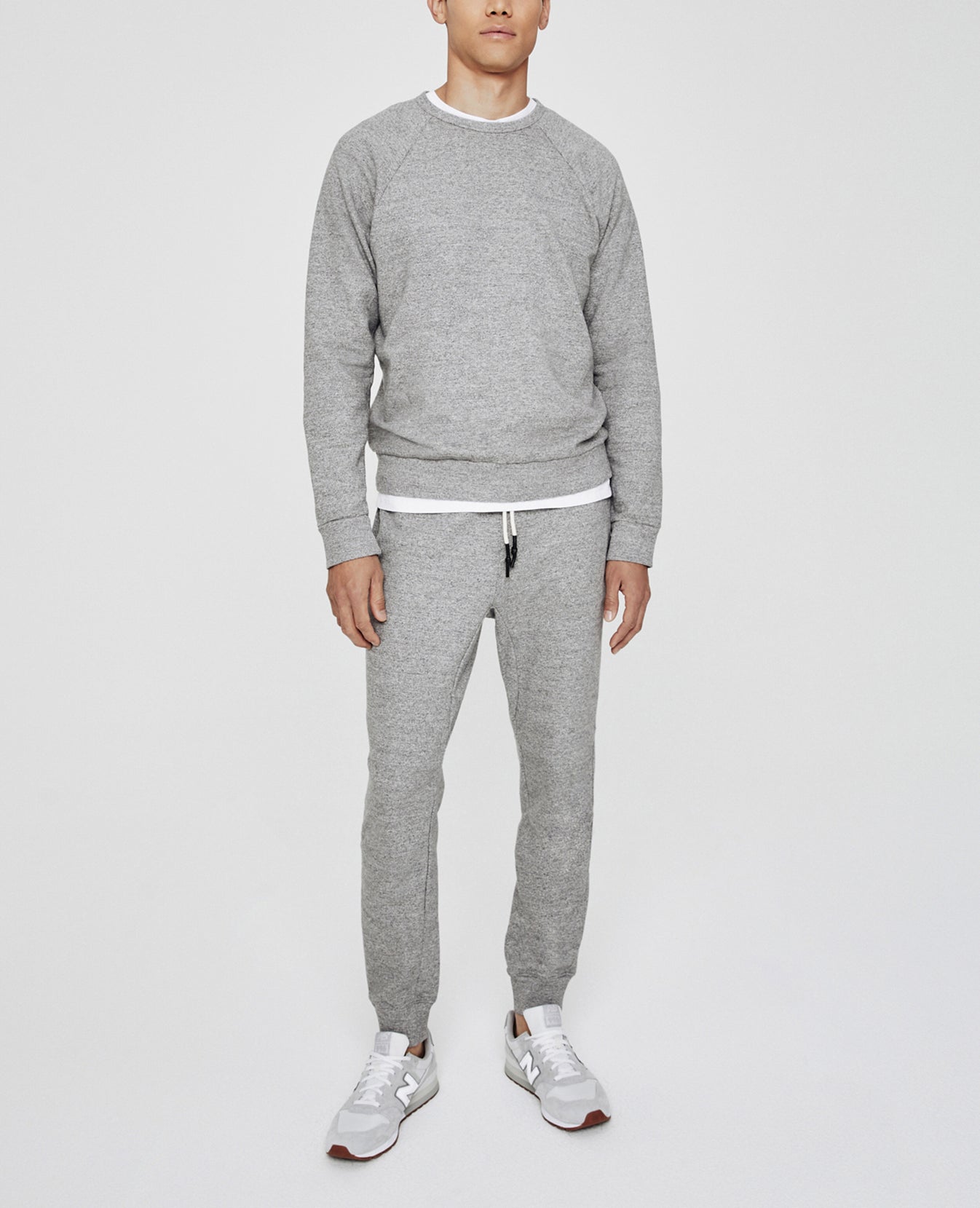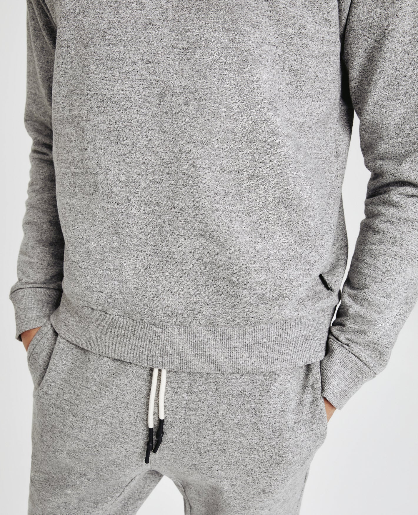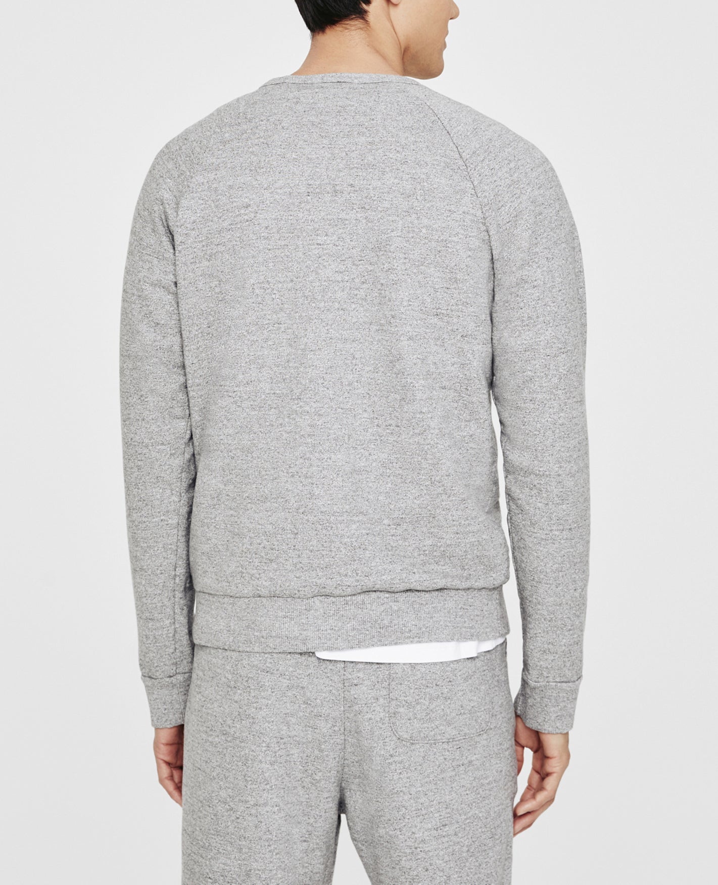The Elba Crew is a pullover sweatshirt for men in a soft heather grey. The Elba offers a classic crew neckline, raglan sleeves, relaxed silhouette, and vintage-inspired ribbing at the waist and sleeves. This men’s sweatshirt is designed in a luxurious Soft Heather Terry featuring a lightweight feel and ultra-soft touch.