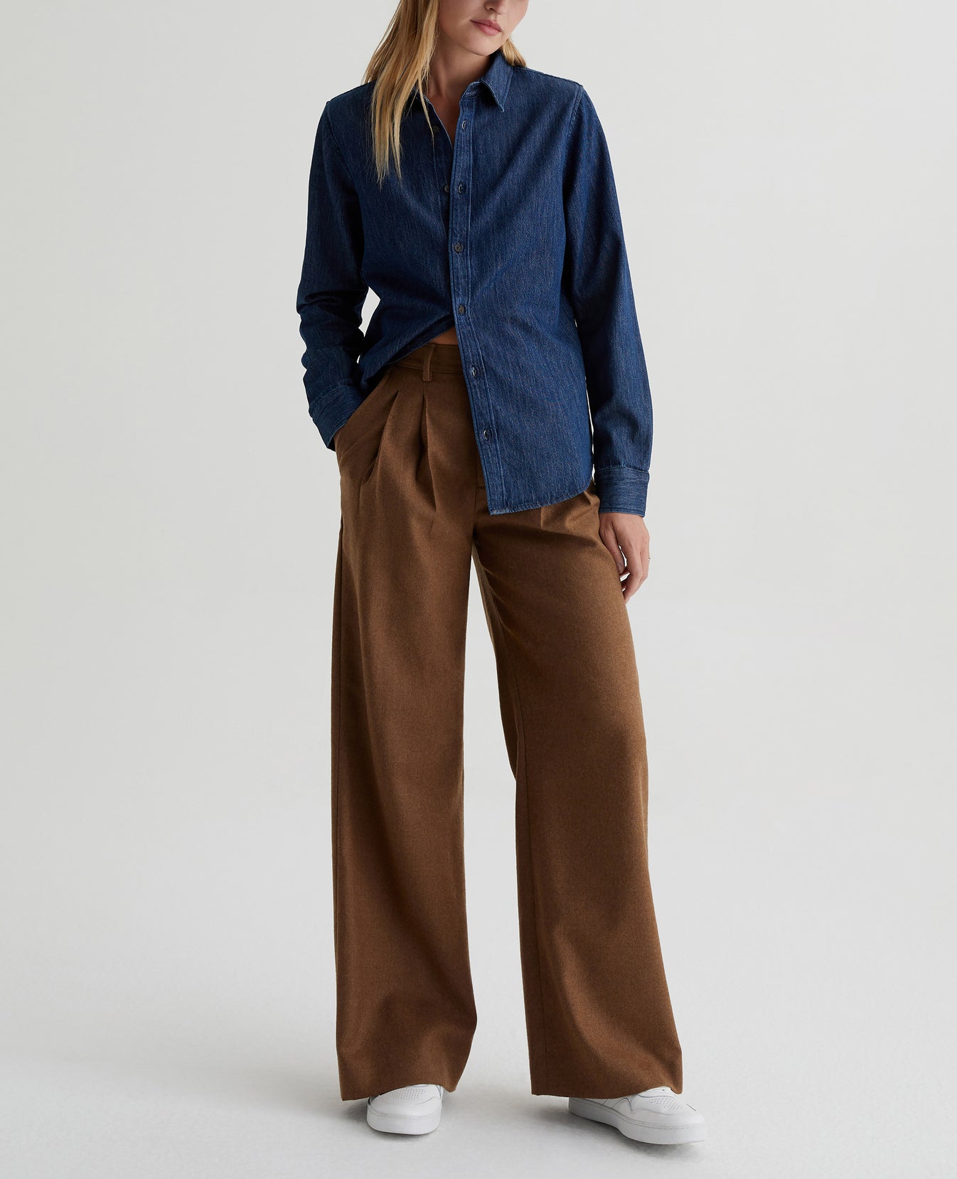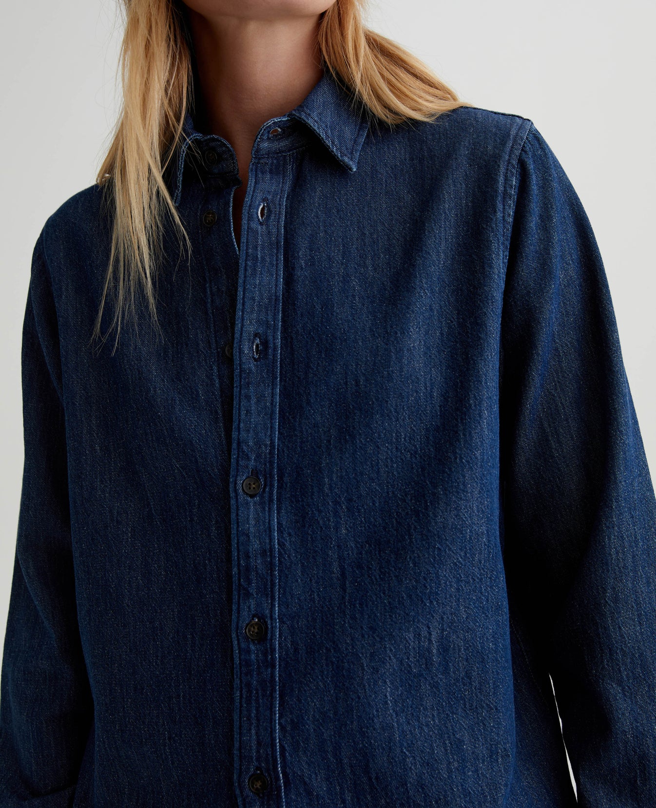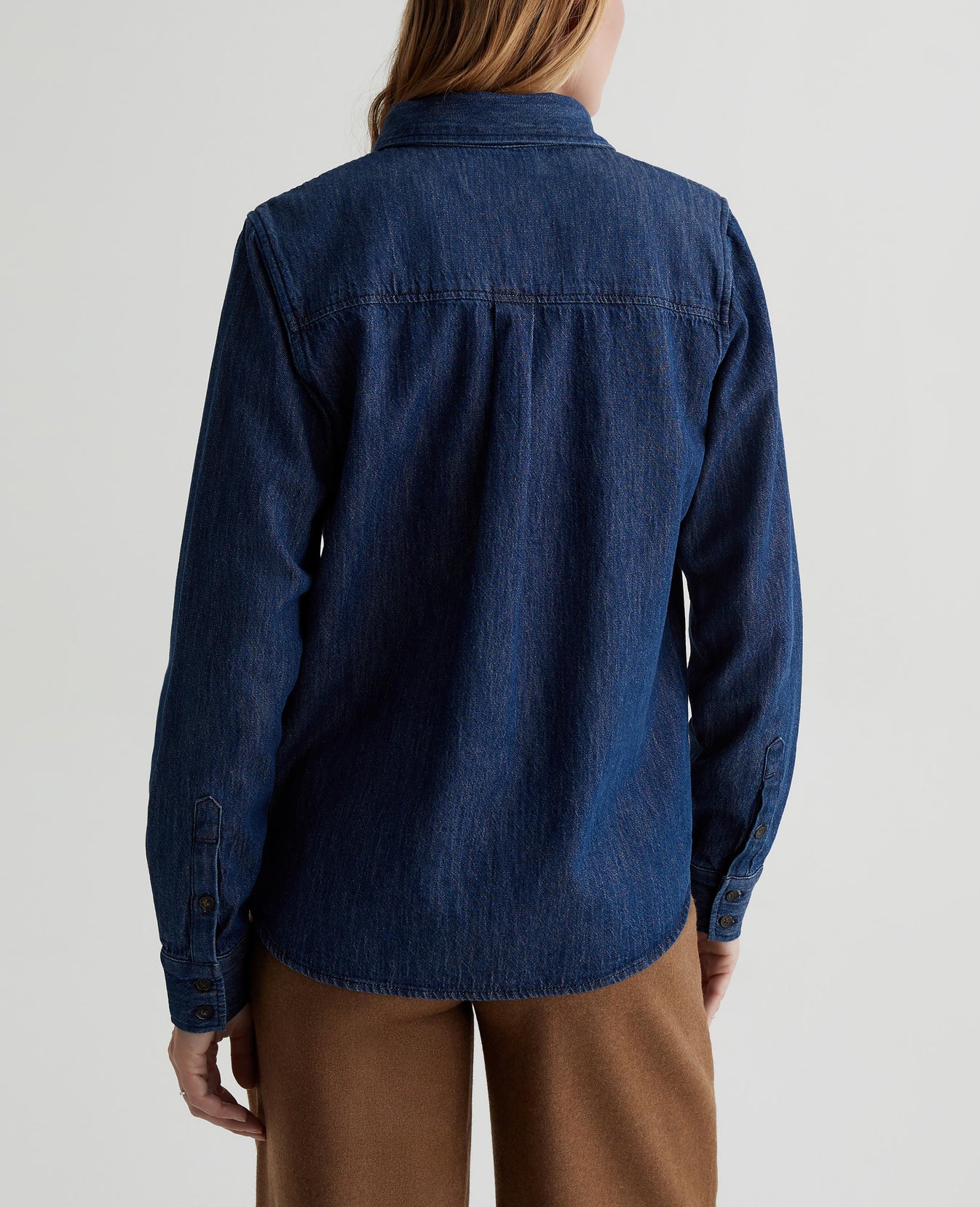 The EmRata x AG Elena is a fitted chambray button up shirt with a modern tailored appeal. This wardrobe staple is made in 7.25 oz. Boundless Lightweight Denim in a sophisticated classic blue. A perfect long sleeve button up for any wardrobe, providing easy layering and styling. Designed in partnership with Emily Ratajkowski, the EmRata x AG capsule reflects the model's personal style with a curated collection of versatile pieces able to pair effortlessly together for everyday elevated style.
