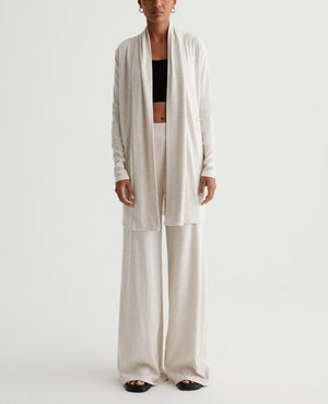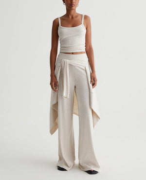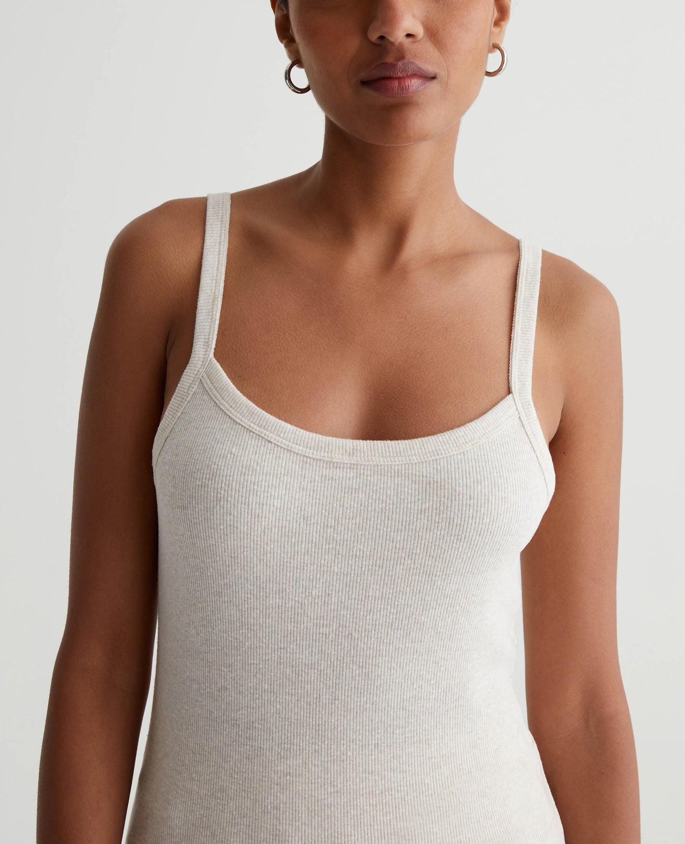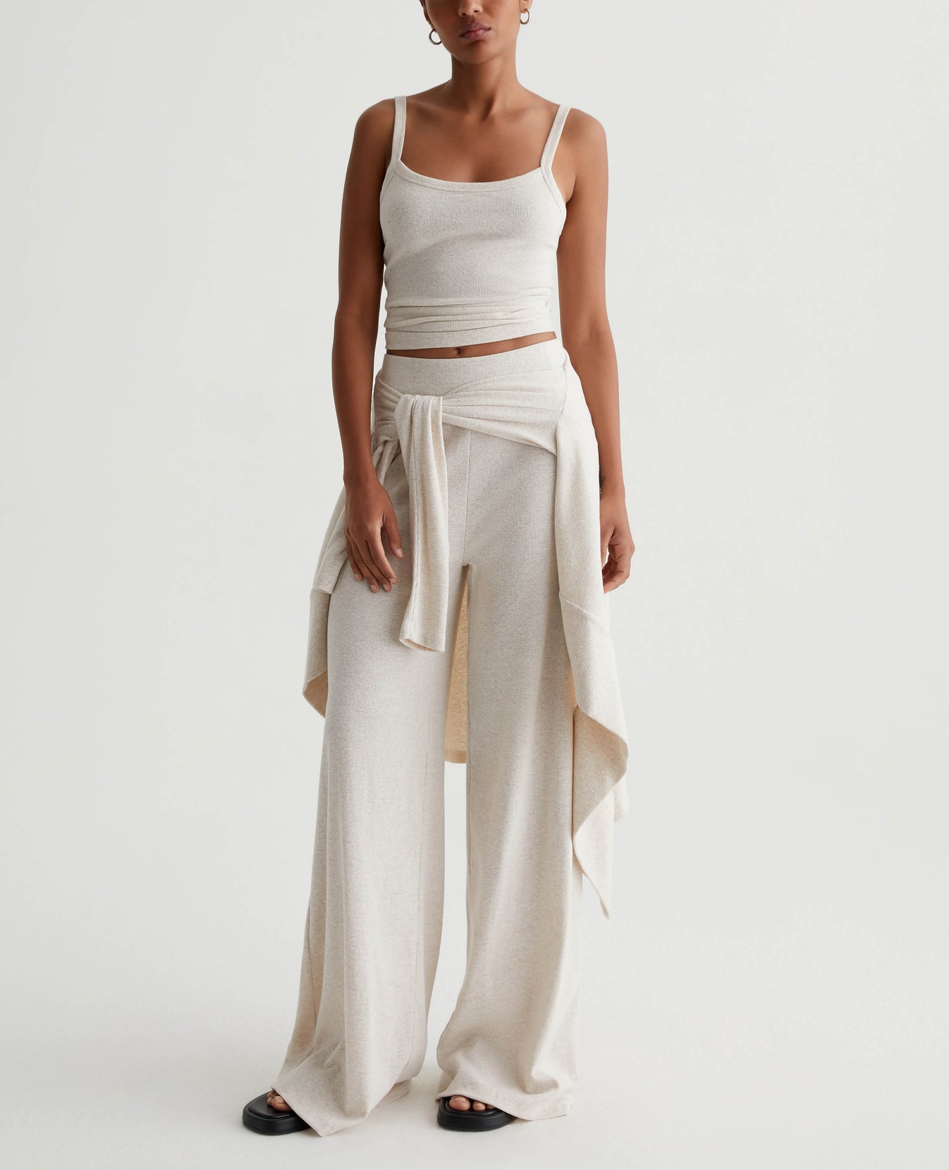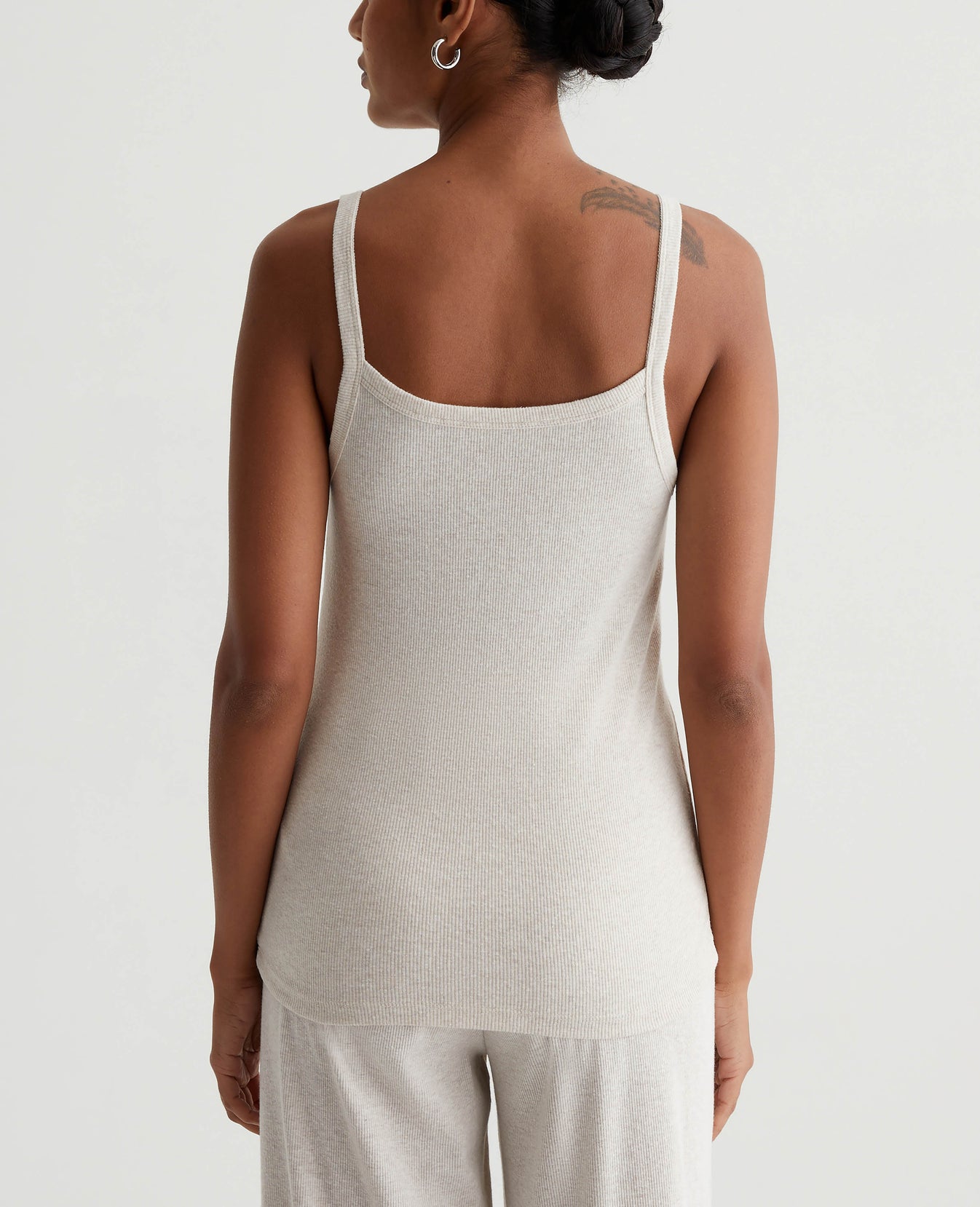A luxe piece for lounging and layering, the Ever Tank has a slim fit and soft feel in our Mélange Snow Rib. Featured here in heathered Snow White, this strappy knit top naturally pairs with our Saamie Cardigan and Sourie pants to create a cozy-chic set.