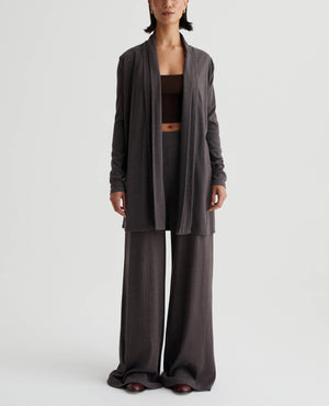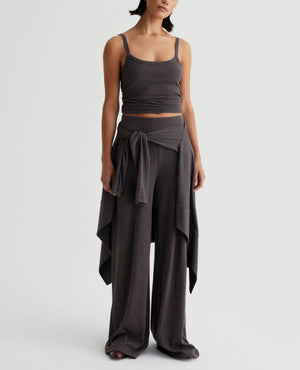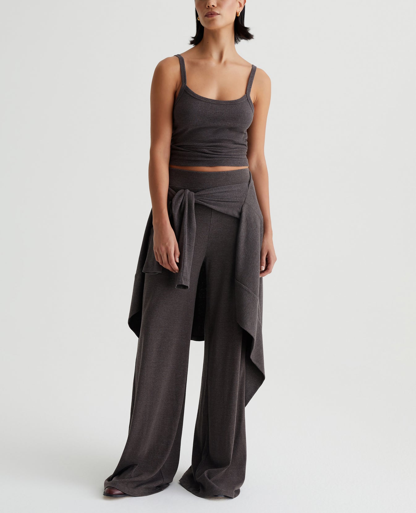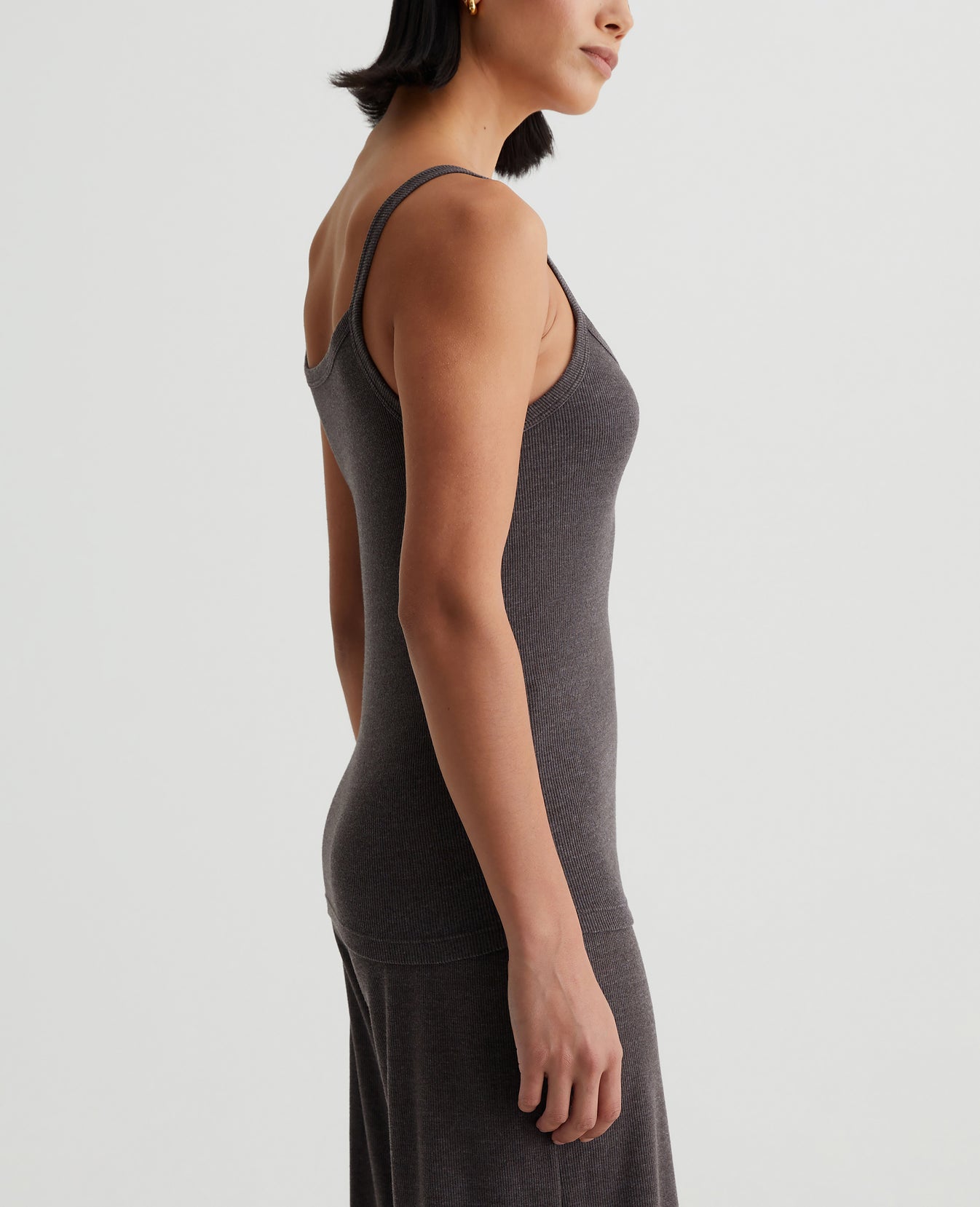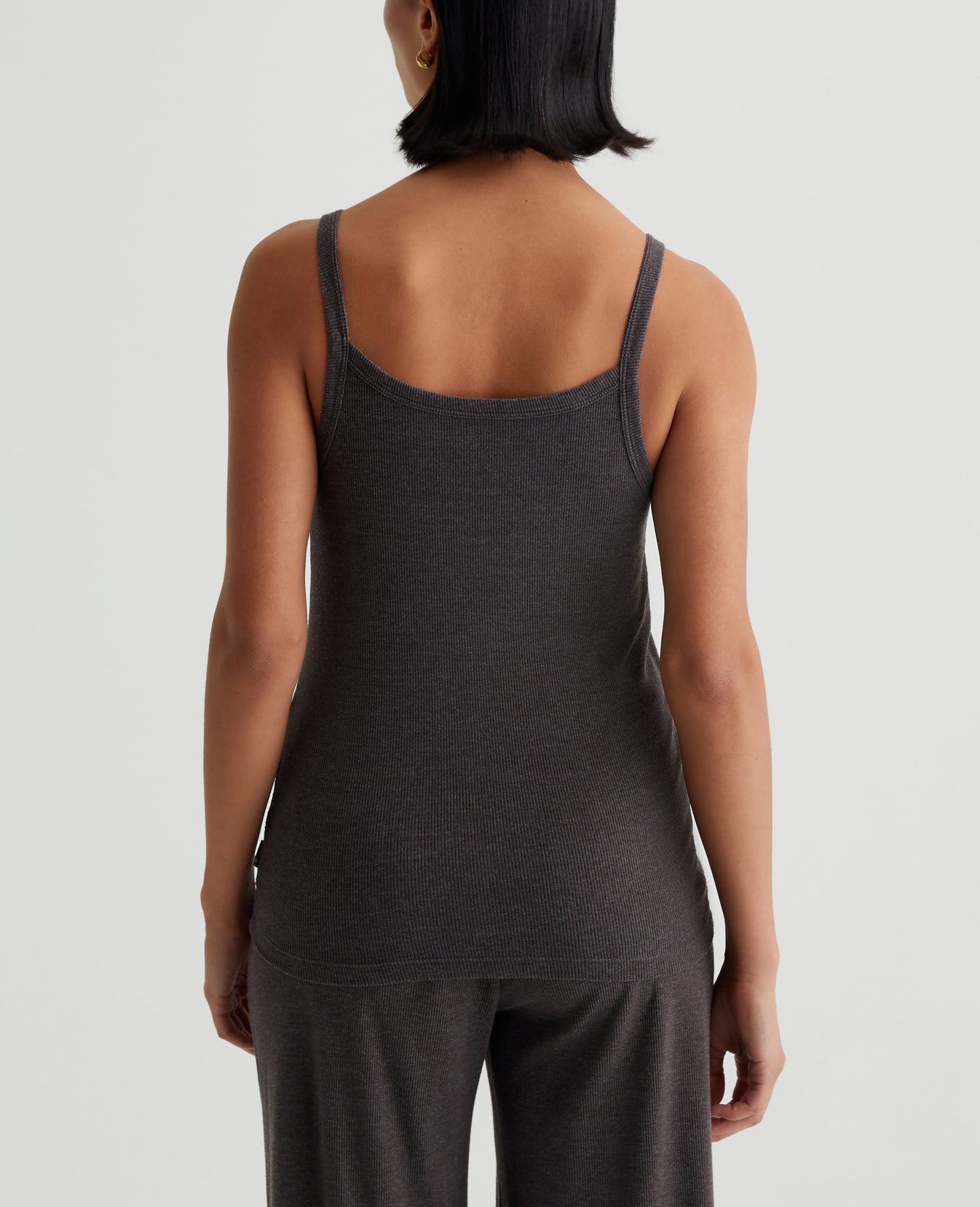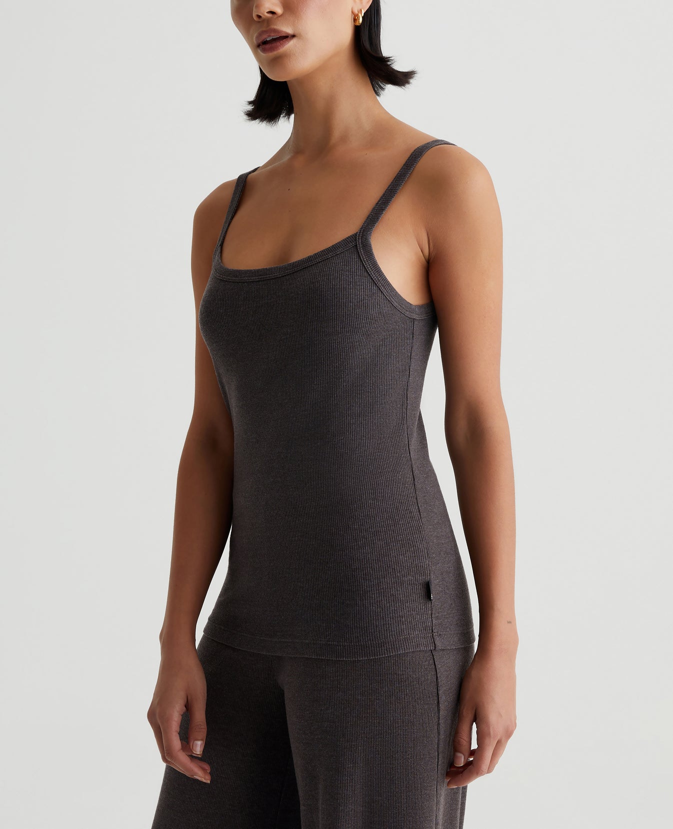 A luxe piece for lounging and layering, the Ever Tank has a slim fit and soft feel in our Mélange Snow Rib. Featured here in heathered Stone Brown, this strappy knit top naturally pairs with our Saamie Cardigan and Sourie pants to create a cozy-chic set.