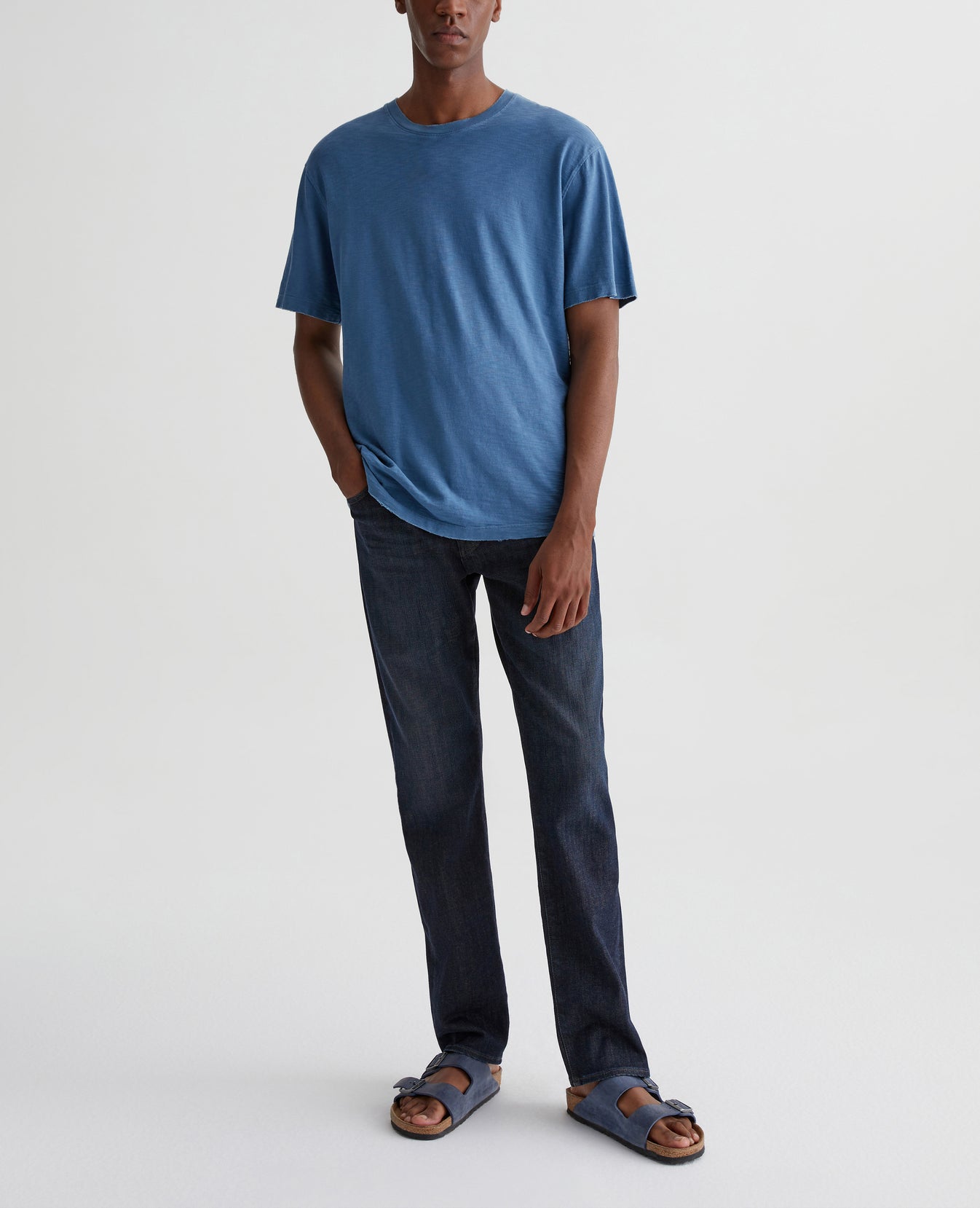 Our Everett Slim Straight Jean for men features a dark indigo shade with subtle fading and whiskering. The style has a comfortable mid-rise waist with a straight fit that’s relaxed from hip to the knee before slightly tapering at the leg opening. This men’s slim straight jean is designed in 11 oz. Flex 360° Denim with active stretch.