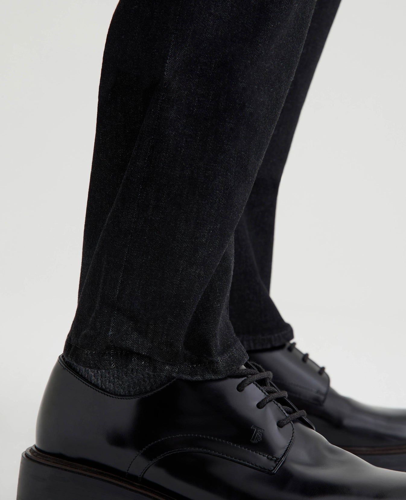 Everett is our slim straight jean for men, updated here in 10.5 oz. Infinite Bi-Stretch Black denim with subtle whiskering. The five-pocket style has a comfortable mid-rise waist and a straight fit that’s relaxed from hip to the knee before slightly tapering at the leg opening.