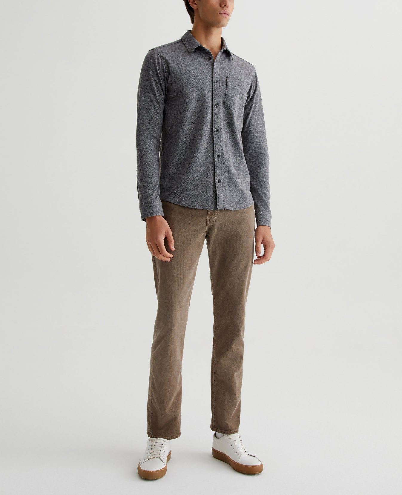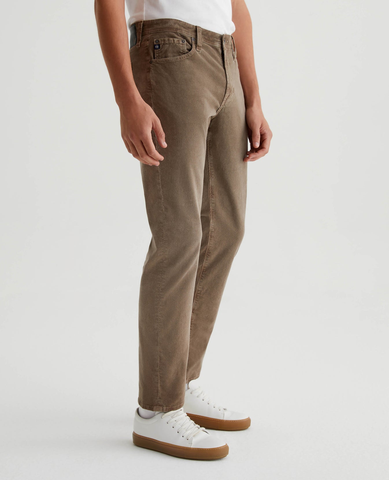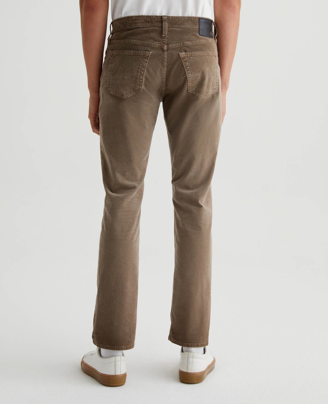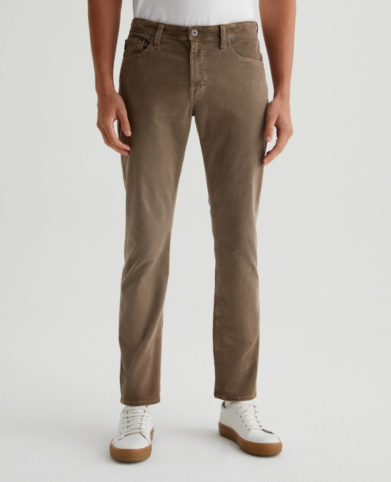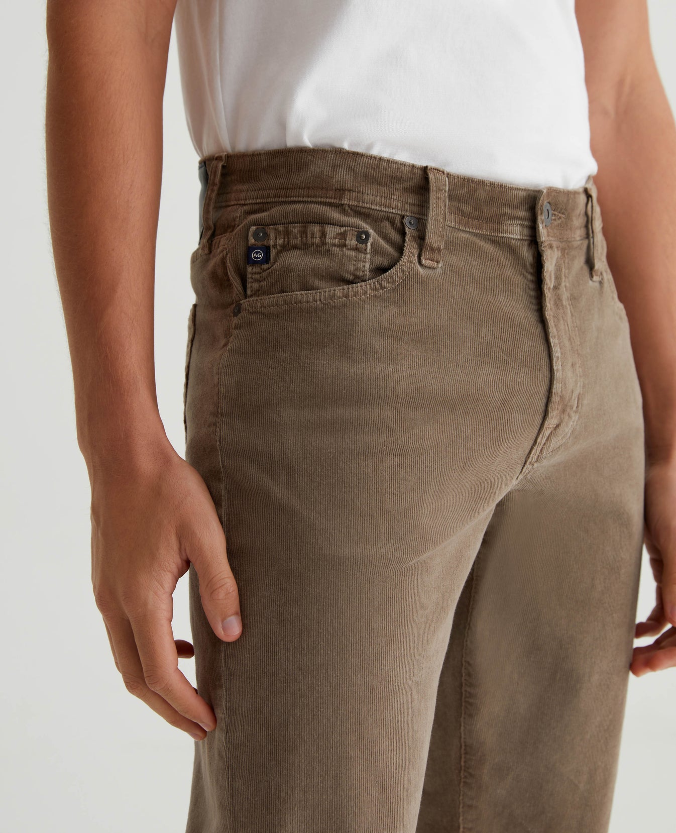 Our Everett slim straight corduroy pants for men have a soft, plush feel in 8.8 oz. Range Stretch Cord fabric with fine-wale construction. Featured here in a sulfur-dyed taupe shade, the style has a mid-rise waist and a straight fit that’s relaxed from hip to knee before slightly tapering at the leg opening.