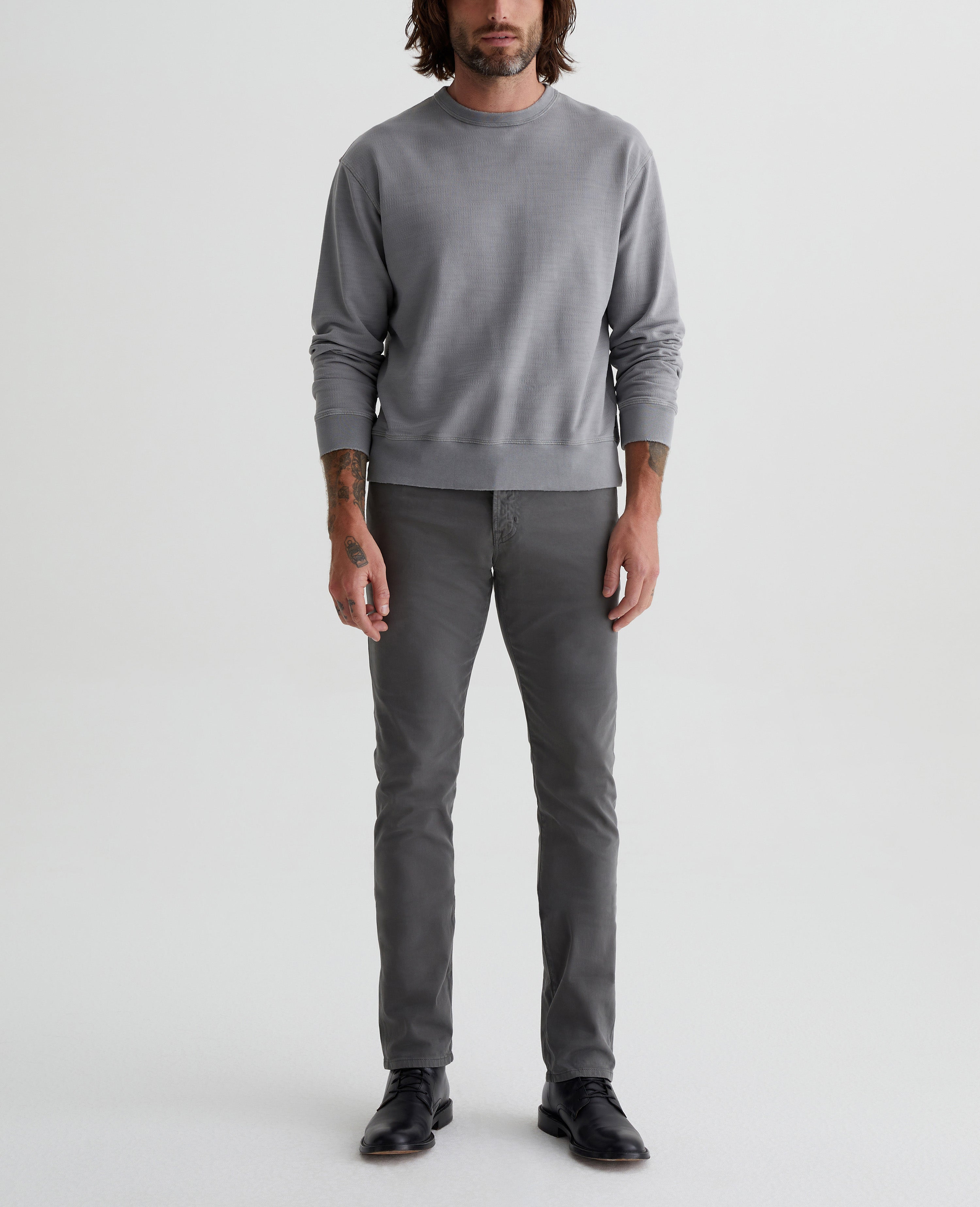 Everett is a slim straight pant for men, done here in a dark grey shade. It's cut with a mid-rise waist and a straight fit that’s relaxed from hip to knee before slightly tapering at the leg opening. This men’s slim straight pant is designed in 8.4 oz. Sueded Stretch Sateen for a refined look and comfortable feel.