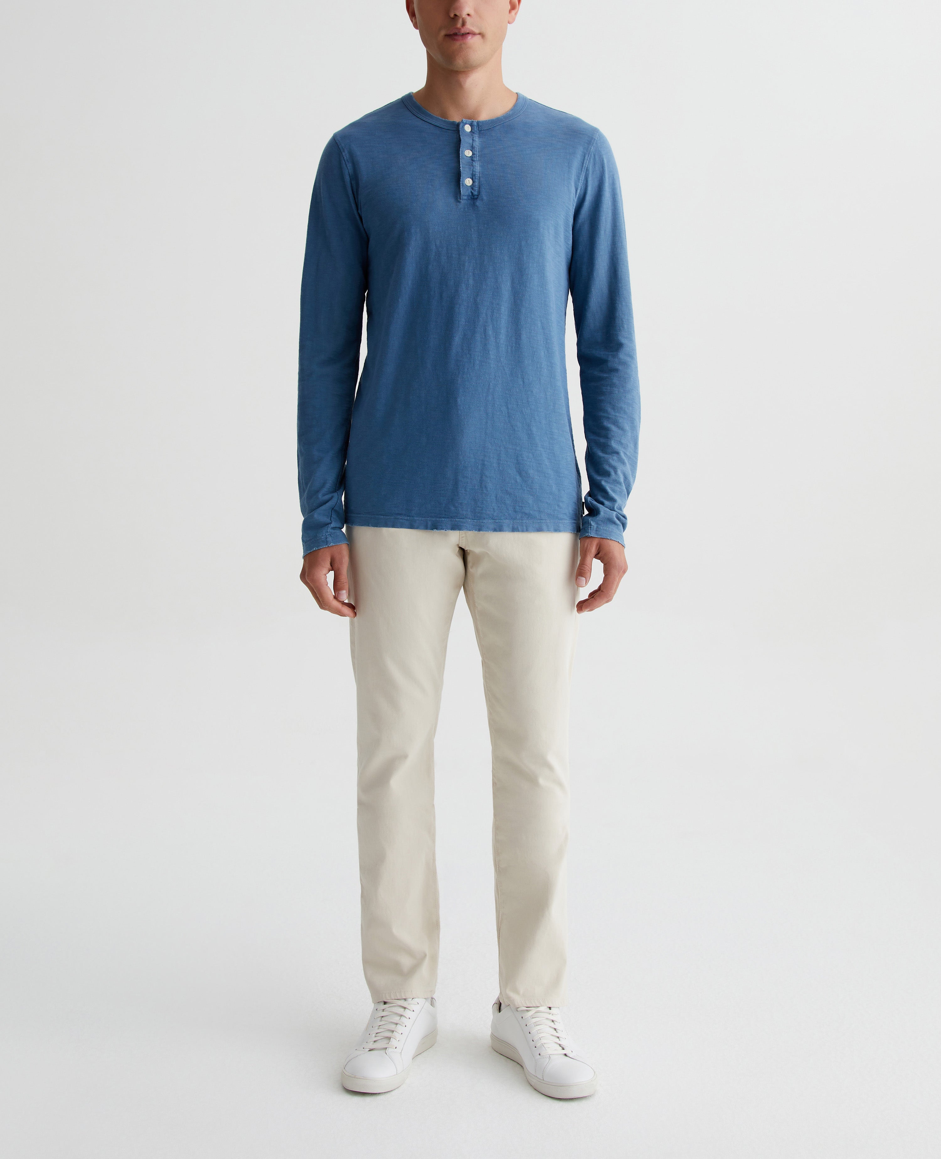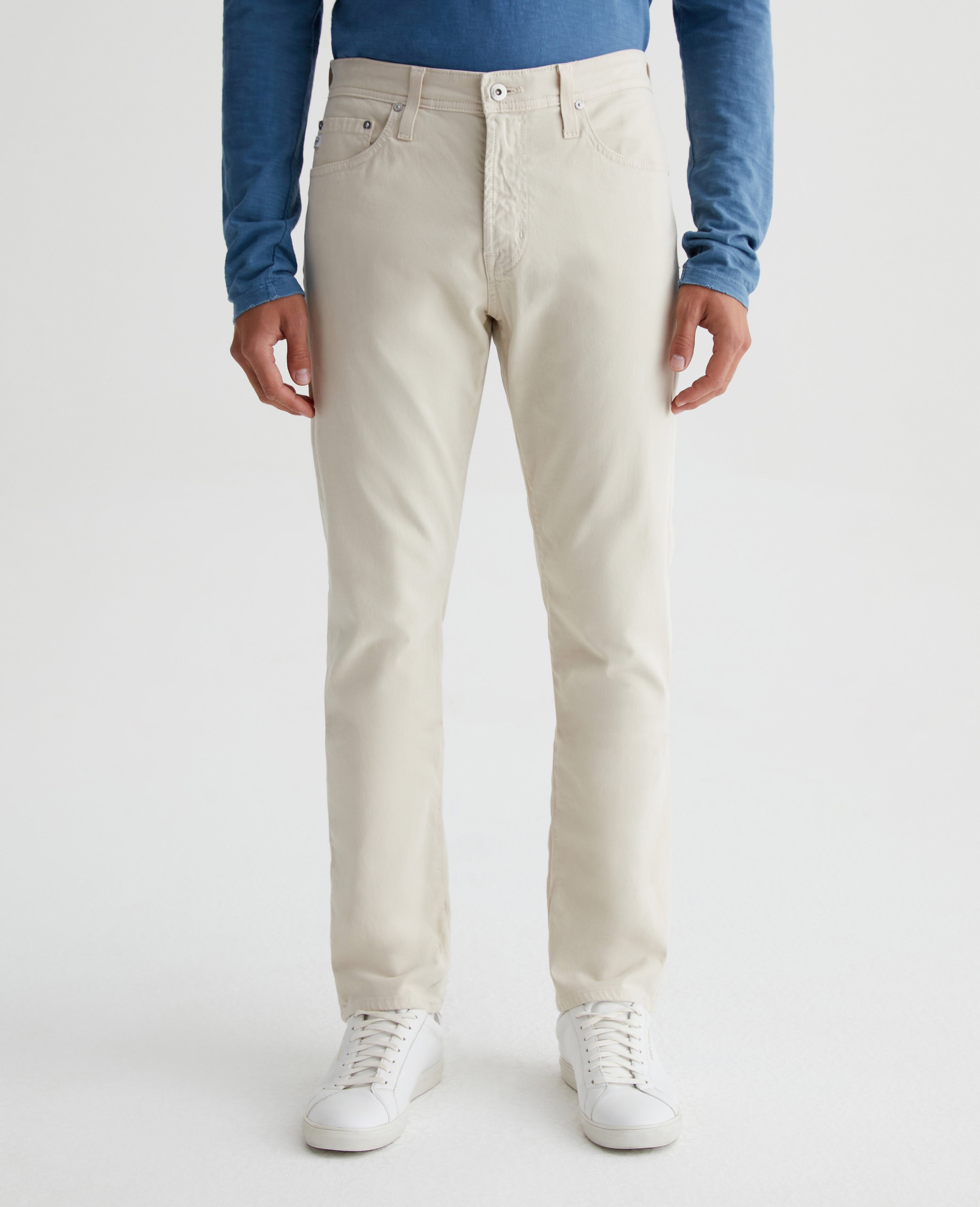 Everett is a slim straight pant for men, done here in off-white. It's cut with a comfortable mid-rise waist and a straight fit that’s relaxed from hip to the knee before slightly tapering at the leg opening. This men’s slim straight pant is designed in 8.4 oz. Sueded Stretch Sateen for refined comfort.