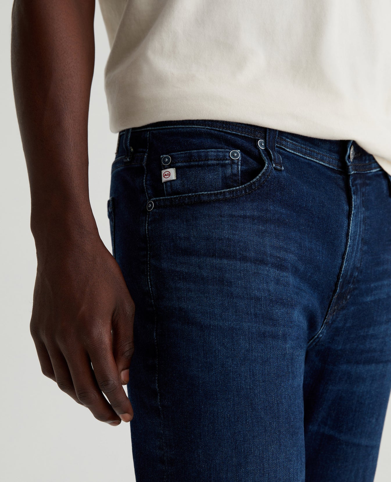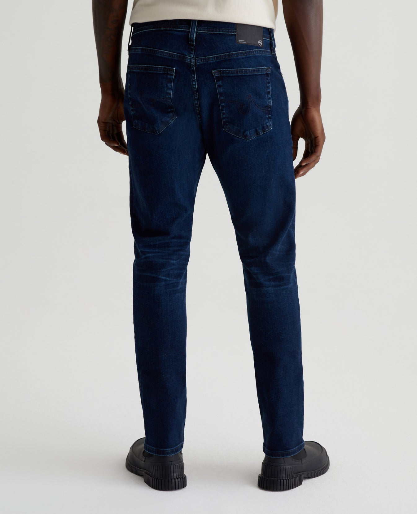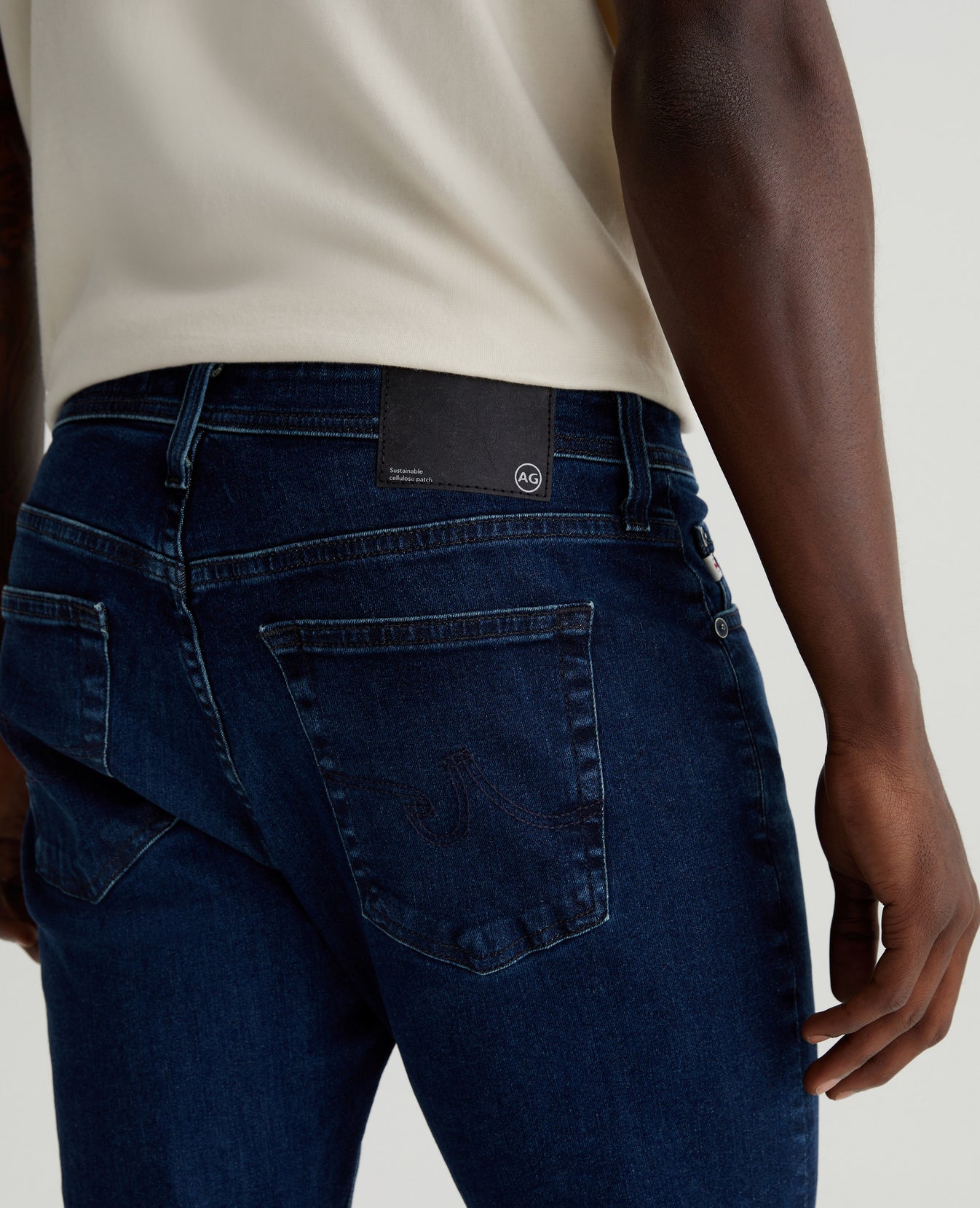 Everett is a pair of slim straight men's jeans featuring an AG-ed™ dark blue wash with a 5-year fade. Cut with a comfortable mid-rise waist, the style has a straight fit that’s relaxed from hip to knee before slightly tapering at the leg opening. This pair is designed in 10 oz. Empower Denim with high stretch for ease and recovery. Our AG Vapor Wash™ process significantly reduces the use of water, chemicals, and energy to lessen environmental impact. Finished with a vegan and 100% biodegradable cellulose patch at the back waistband.