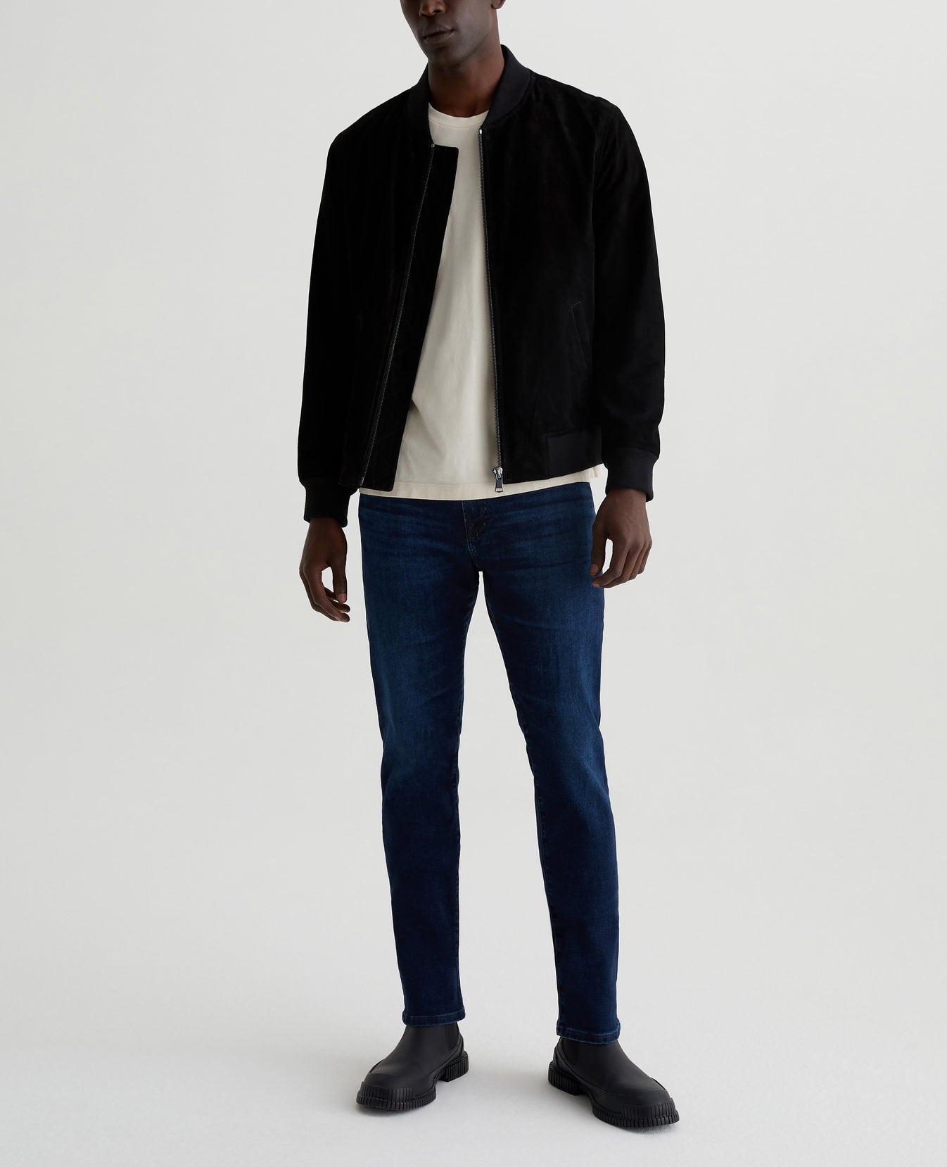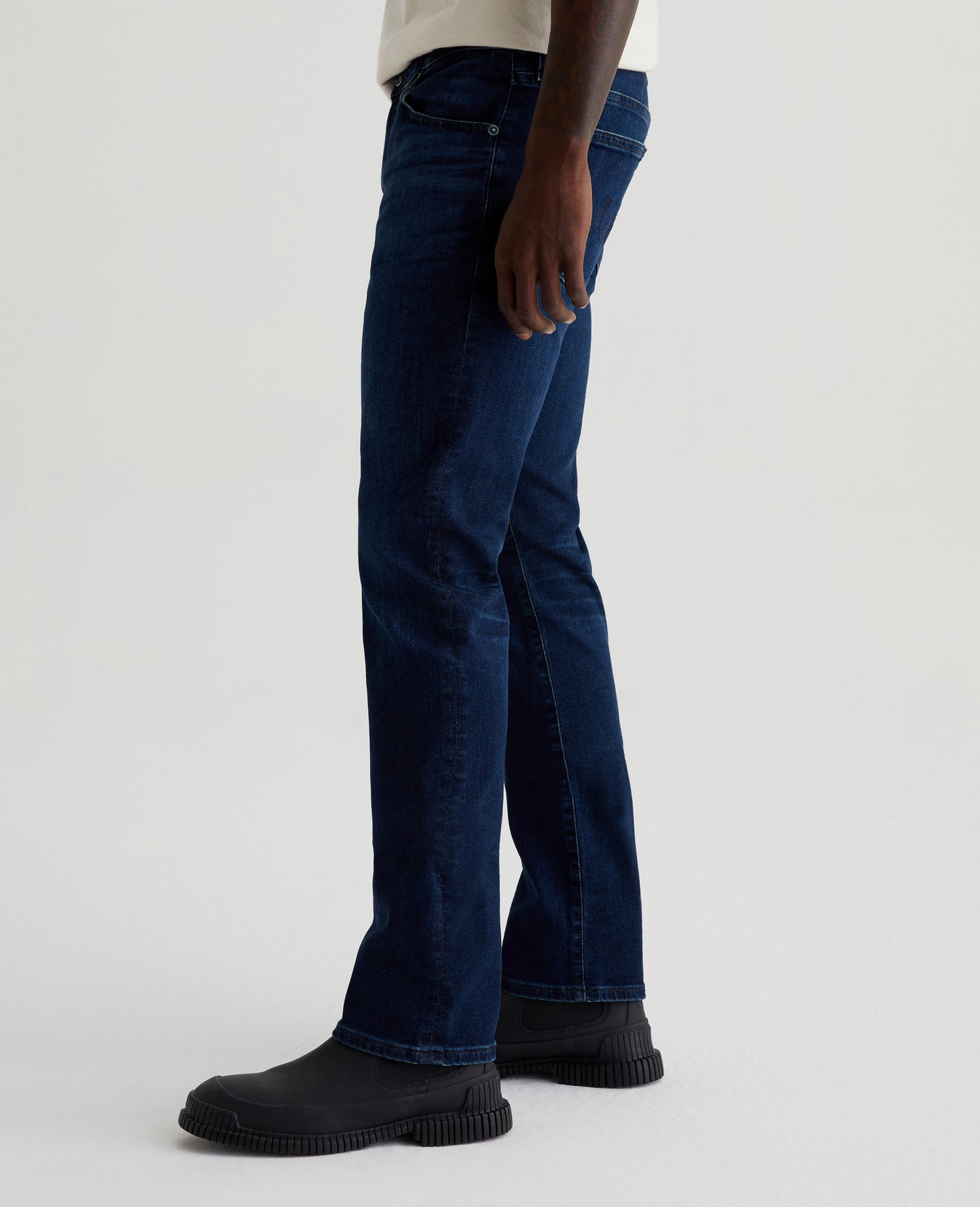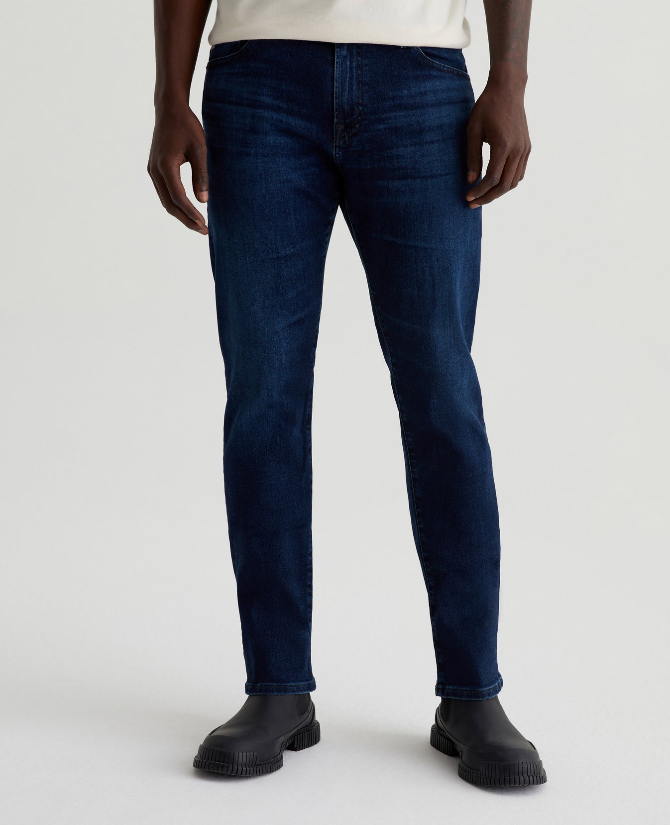 Everett is a pair of slim straight men's jeans featuring an AG-ed™ dark blue wash with a 5-year fade. Cut with a comfortable mid-rise waist, the style has a straight fit that’s relaxed from hip to knee before slightly tapering at the leg opening. This pair is designed in 10 oz. Empower Denim with high stretch for ease and recovery. Our AG Vapor Wash™ process significantly reduces the use of water, chemicals, and energy to lessen environmental impact. Finished with a vegan and 100% biodegradable cellulose patch at the back waistband.