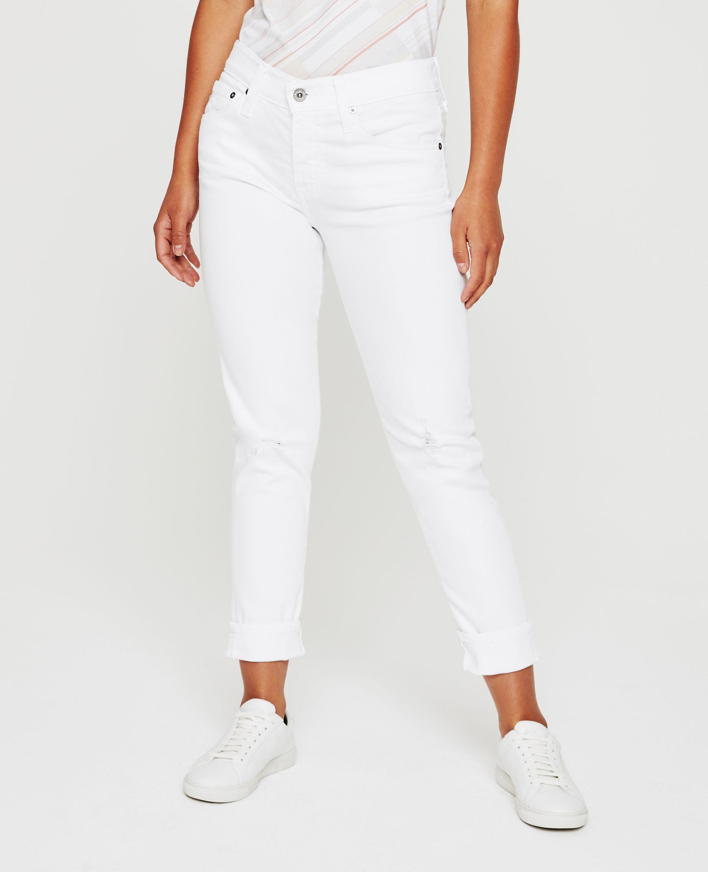 Our Ex-Boyfriend Slim jean for women features an authentic 1-year denim wash that’s been uniquely washed down, destructed, and faded to mimic a genuine pair of vintage jeans. The Ex-Boyfriend is cut with a flattering mid-rise waist, and fits slouchy and relaxed from hip to knee before slightly tapering at the leg opening for a slimming effect. This women’s slouchy boyfriend jean is designed in 10 oz. Dover Stretch Denim.