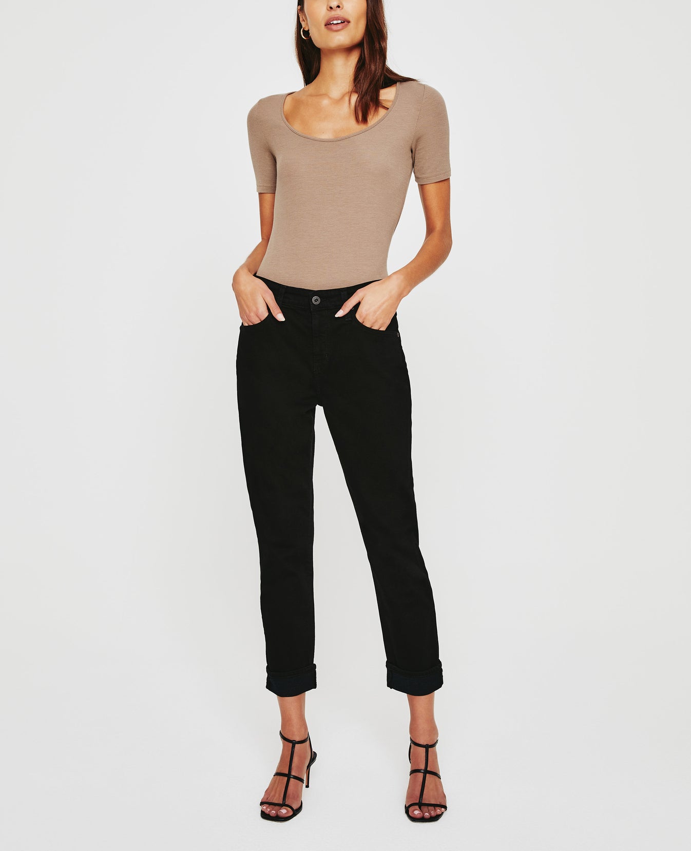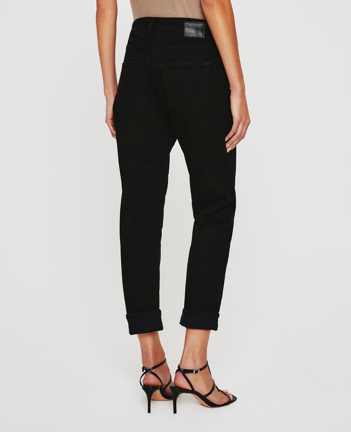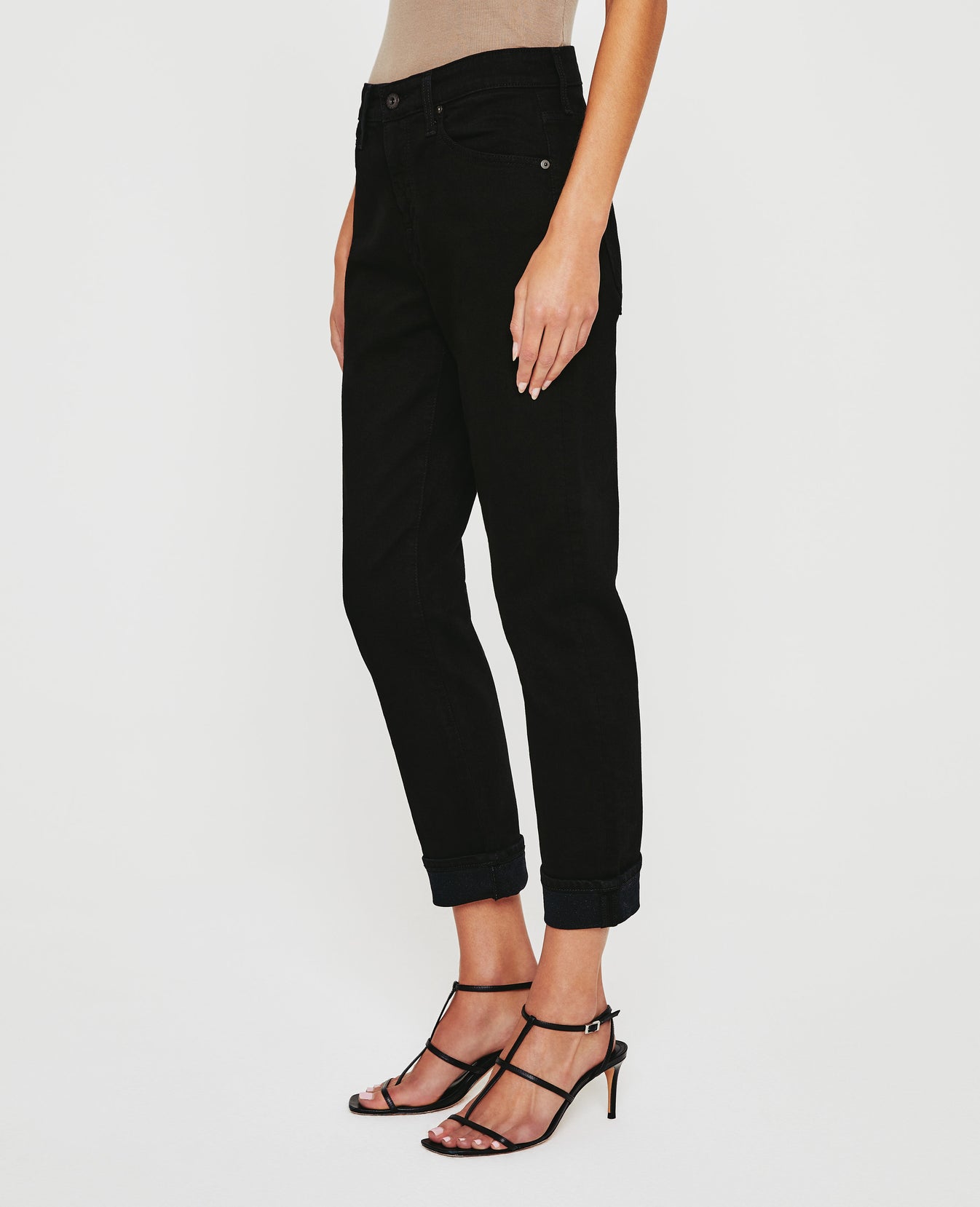 Our Ex-Boyfriend Slim Jean for women features a deep black hue. The Ex-Boyfriend is cut with a flattering mid-rise waist, and fits slouchy and relaxed from hip to knee before slightly tapering at the leg opening for a slimming effect. This women’s slouchy boyfriend jean is designed in 11 oz. Static Stretch Denim.