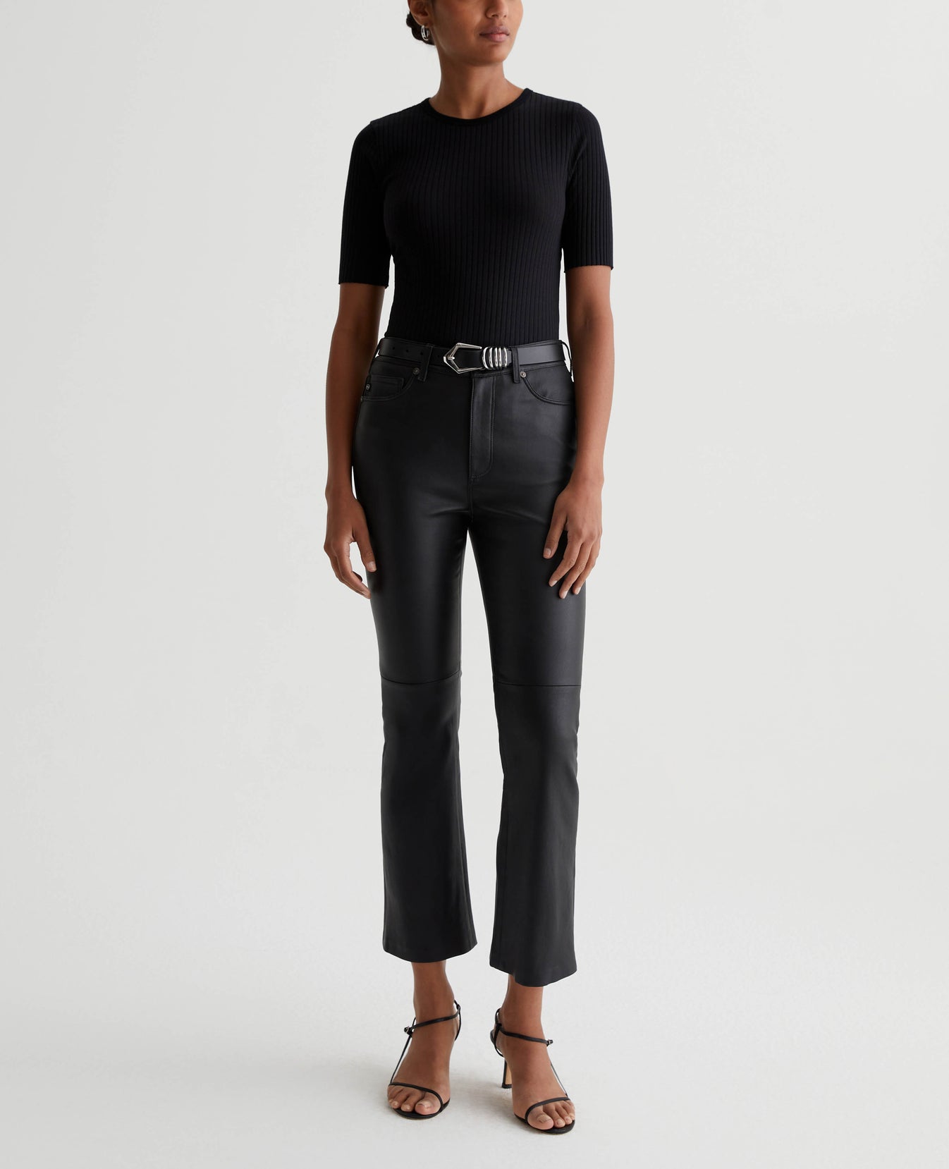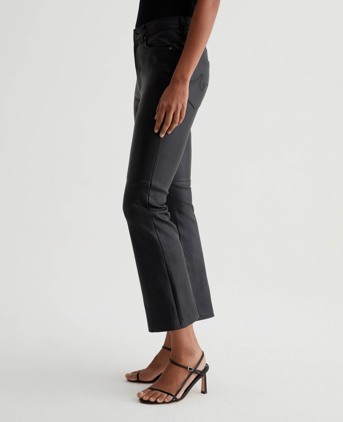 The Farrah Boot Crop in supple black leather instantly elevates any ensemble—it's a versatile statement that you can style for day or night. Cut for a mid-rise bootcut silhouette in a cropped length, the pair has a skinny fit through the legs before opening into subtly flared hems.