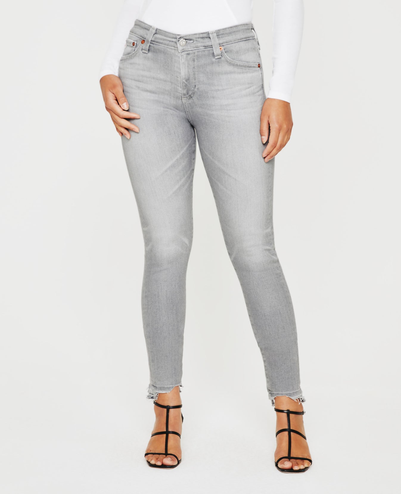 The Farrah Skinny Ankle is a women's AG-ed™ skinny jean with a flattering mid-rise waist and a streamlined fit through the legs, finishing at ankle length. This pair comes in 11.75 oz. Carbone Stretch Denim featuring a 20-year faded grey wash and wavy let-down hems with a freshly cut look. There's just the right amount of stretch woven in, offering premium comfort and ease of movement.