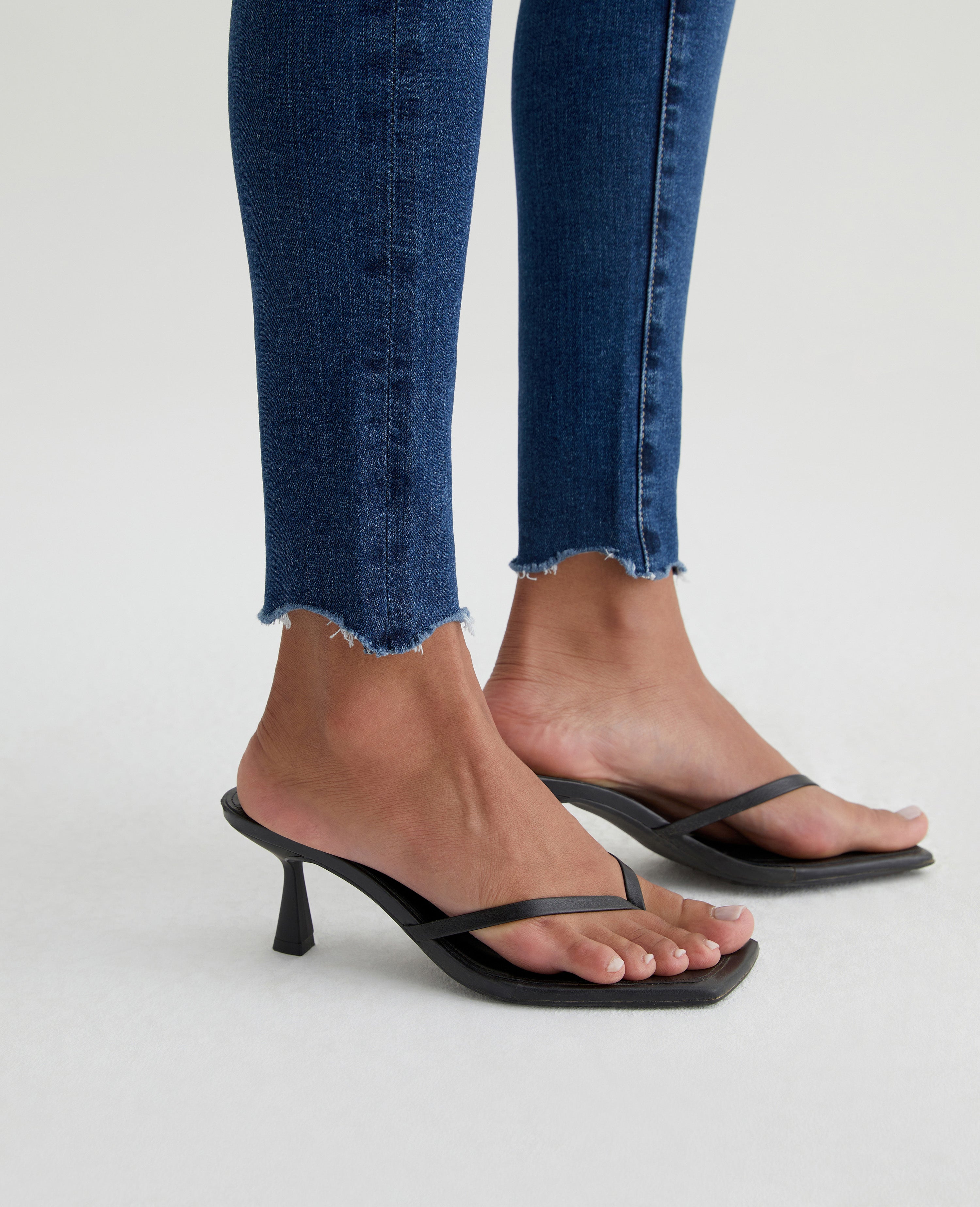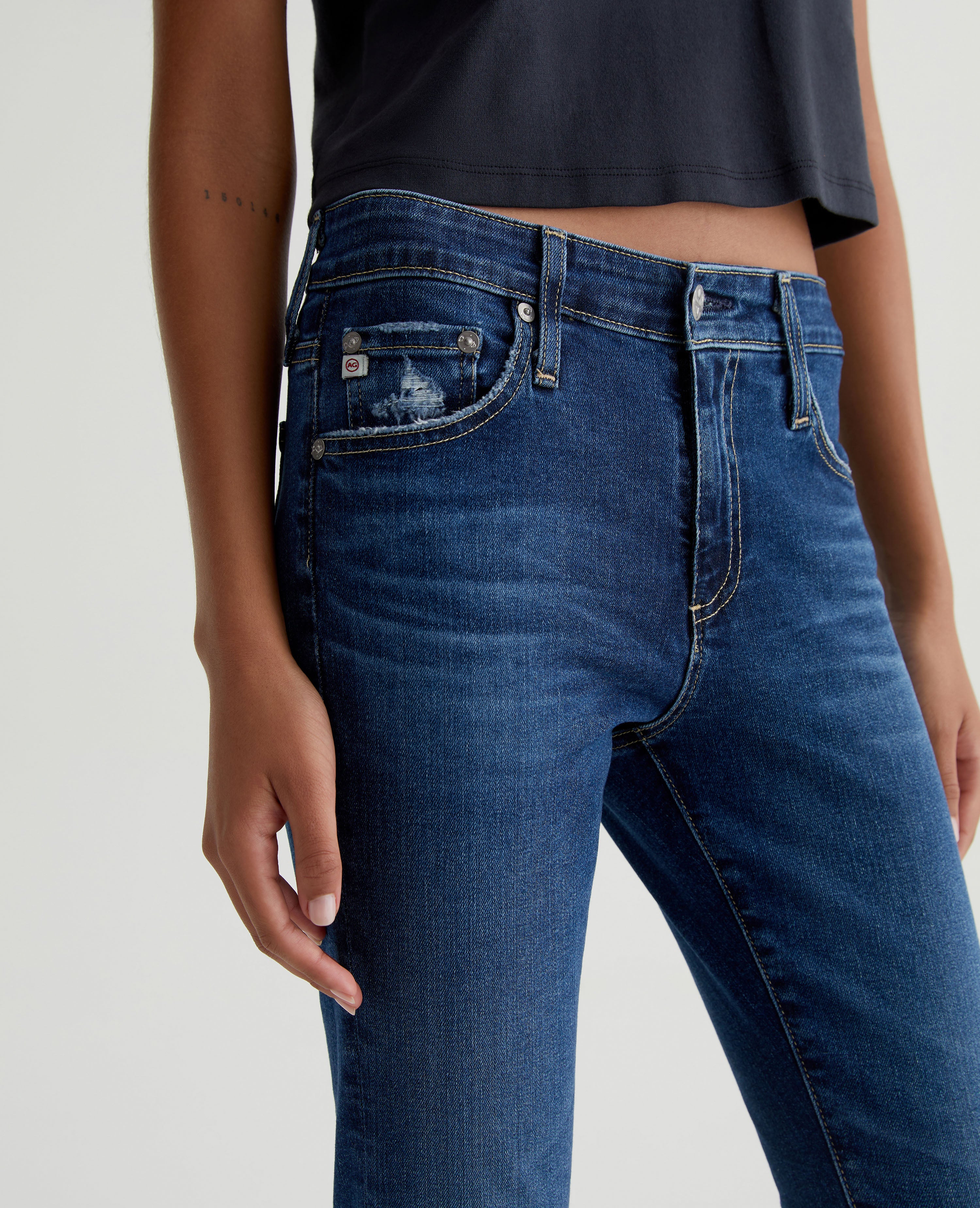 The Farrah Ankle jean for women is a mid-rise skinny in an AG-ed™ dark wash with a 9-year fade, distressing at the pockets, and chewed hems. The ankle-length pair features 10 oz. Empower Denim with superstretch construction for a sleek, sculpted shape.