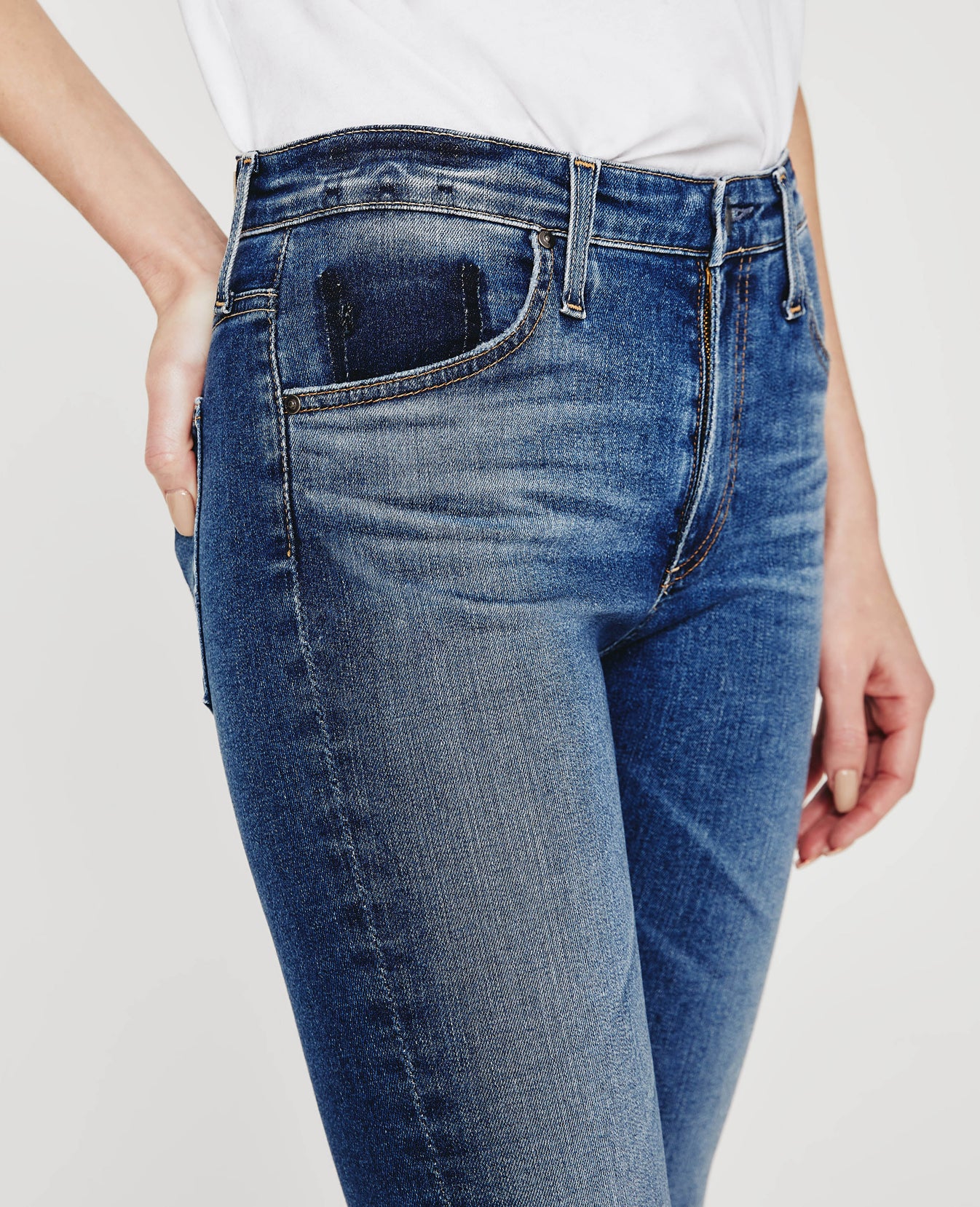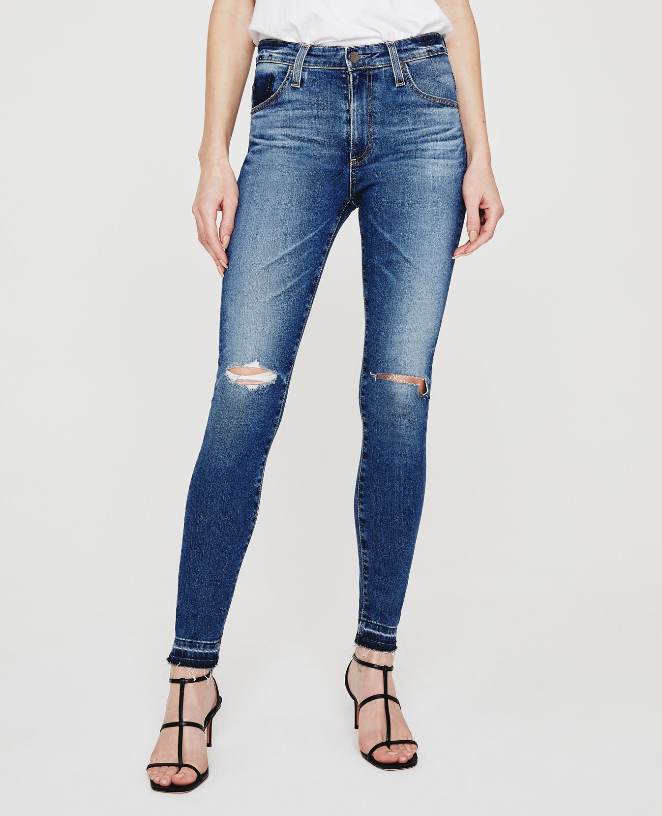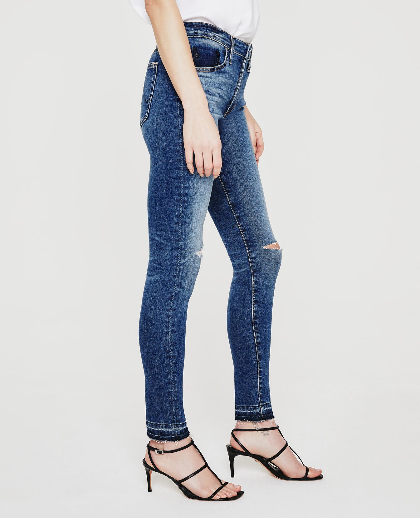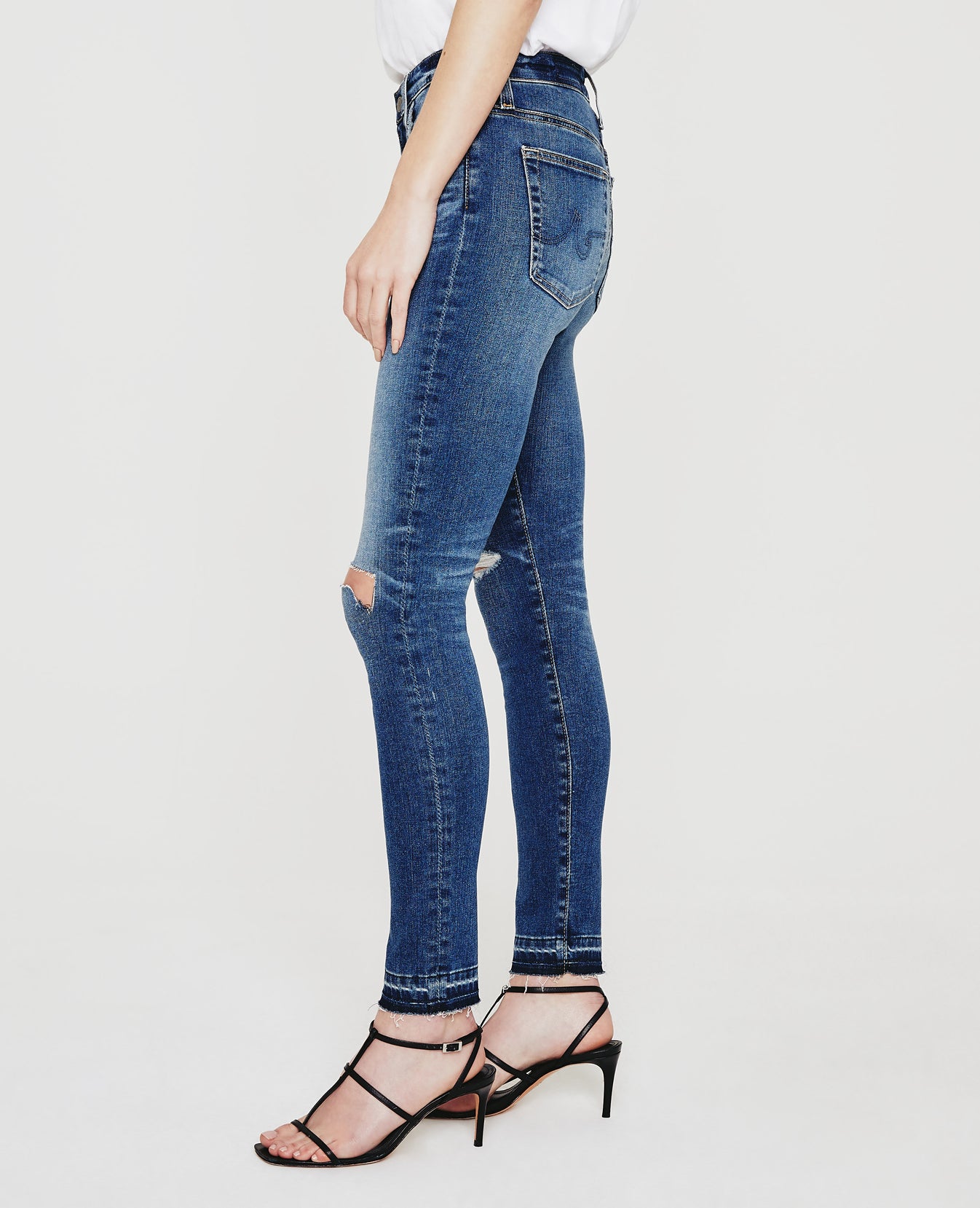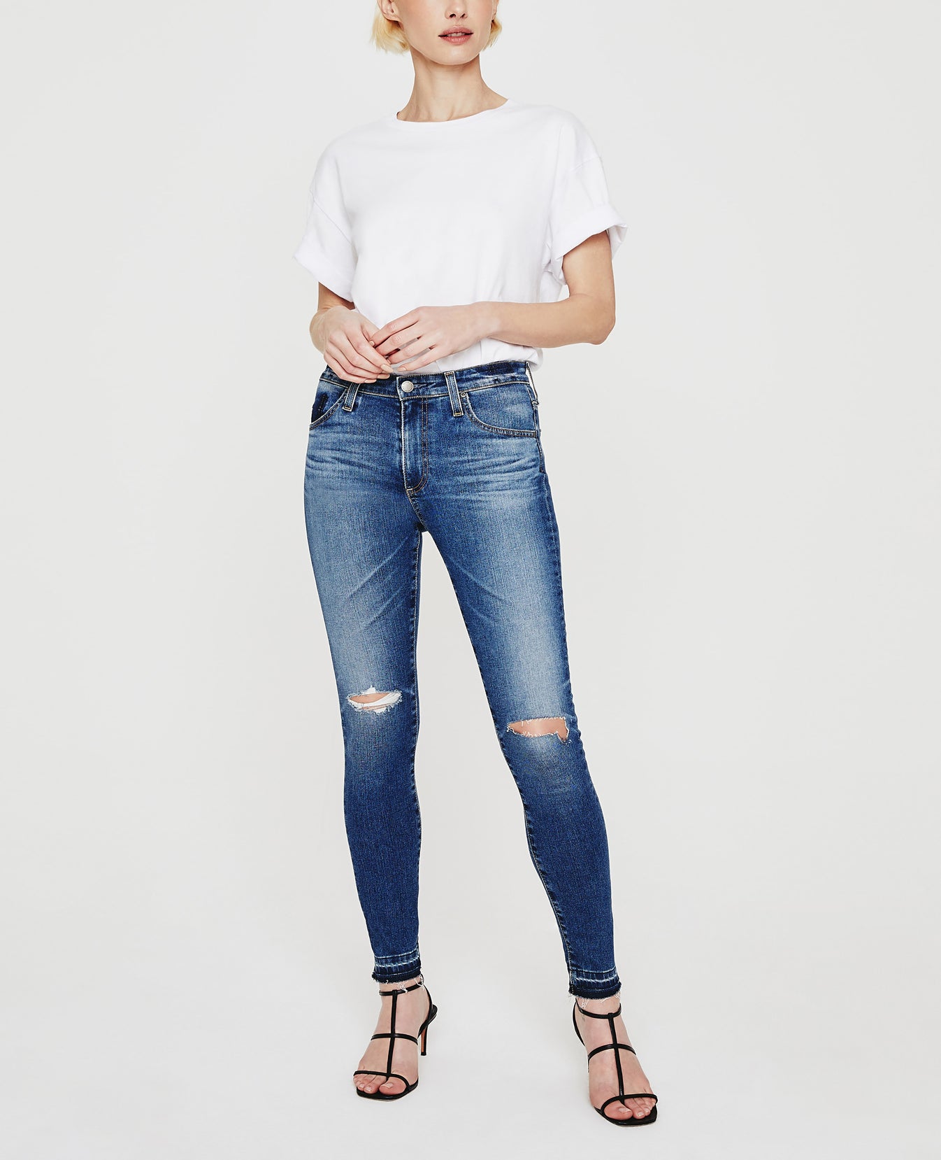 The Farrah Ankle skinny jean for women features a vintage-inspired AG-ed™ dark wash that's been faded and distressed to emulate 10 years of wear. Shredded holes at the knees and raw, let-down hems give the pair authentic lived-in character. Cut with flattering mid rise waist and cropped length at the ankle, this women’s skinny jean is designed in 10 oz. Empower Denim with added stretch for luxurious, all-day wearability.