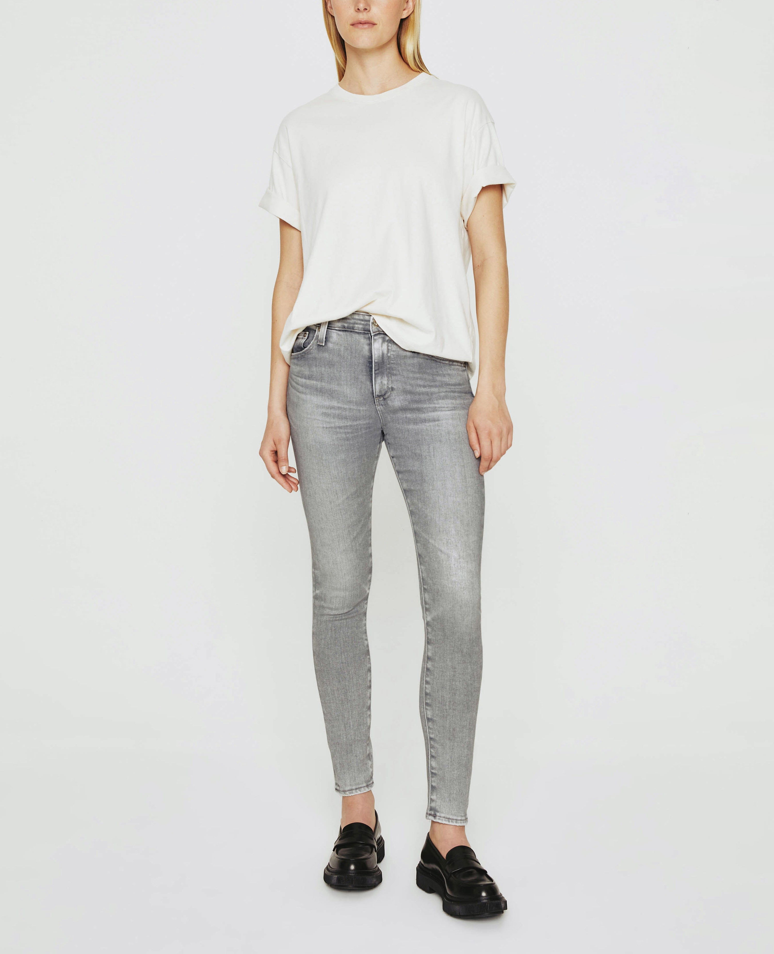 The Farrah Skinny Ankle is a women's skinny jean with a flattering mid-rise waist and a streamlined fit through the legs, finishing at ankle length. Made using AG's eco-friendly AG Vapor Wash™ technology, this pair comes in 11.75 oz. Carbone Stretch Denim featuring a 22-year faded grey wash with whiskering and crease marks at natural wear points. Our AG Vapor Wash™ process significantly reduces the use of water, chemicals, and energy to lessen environmental impact. Finished with a vegan and 100% biodegradable cellulose patch at the back waistband.