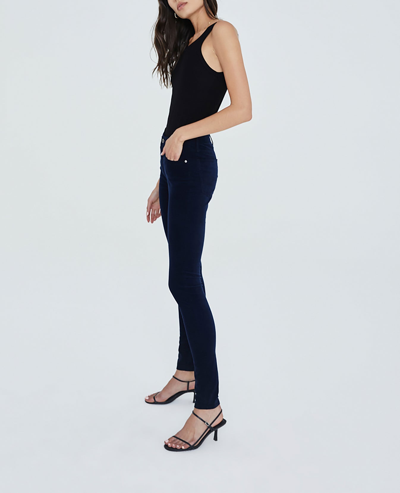 Farrah Ankle Skinny Pant for women features a saturated navy blue dye, flattering mid-rise waist for a sleek silhouette, and is fitted skinny at ankle. This women’s jean is designed in an extra-plush, baby wale corduroy with a velvety finish and added stretch.