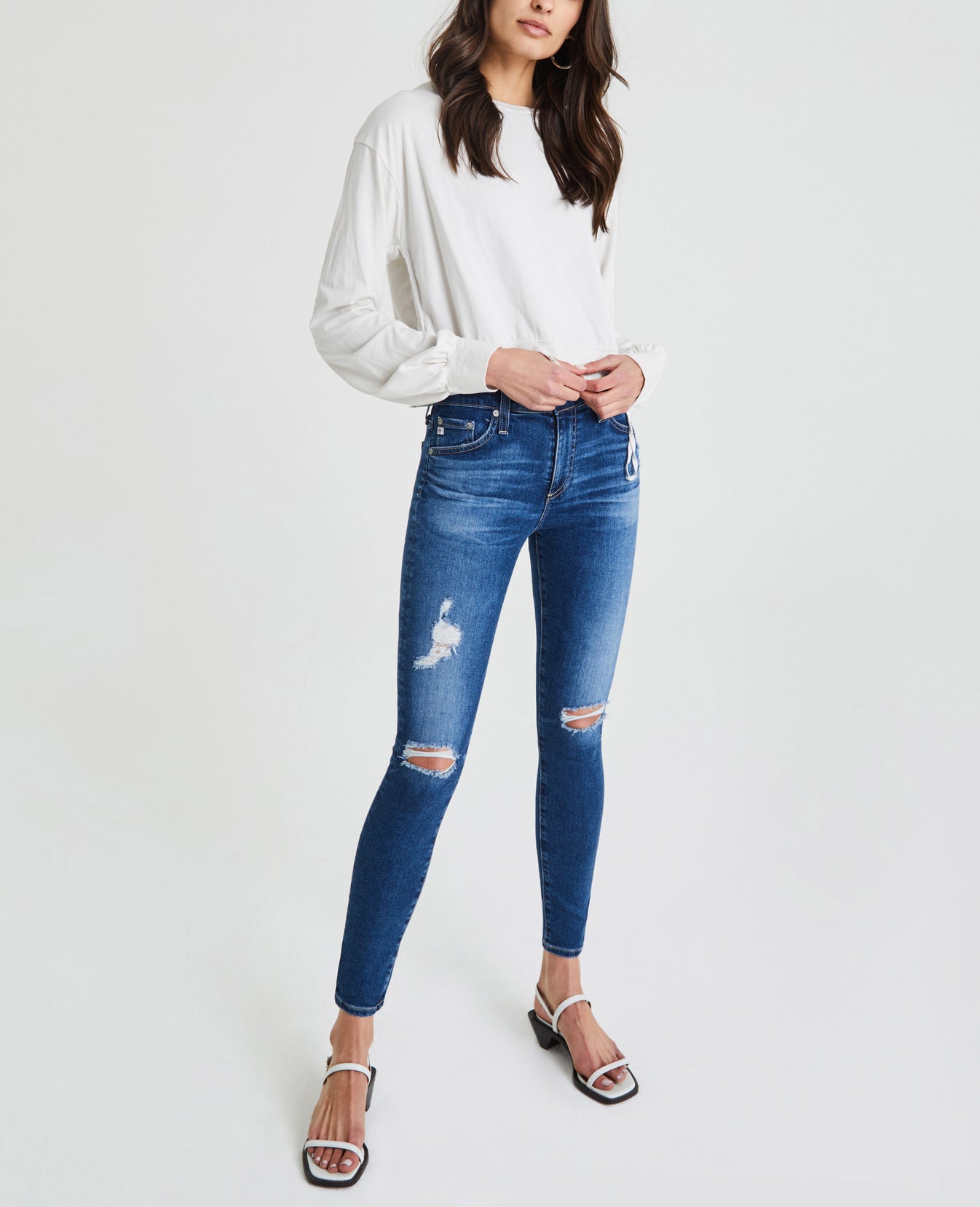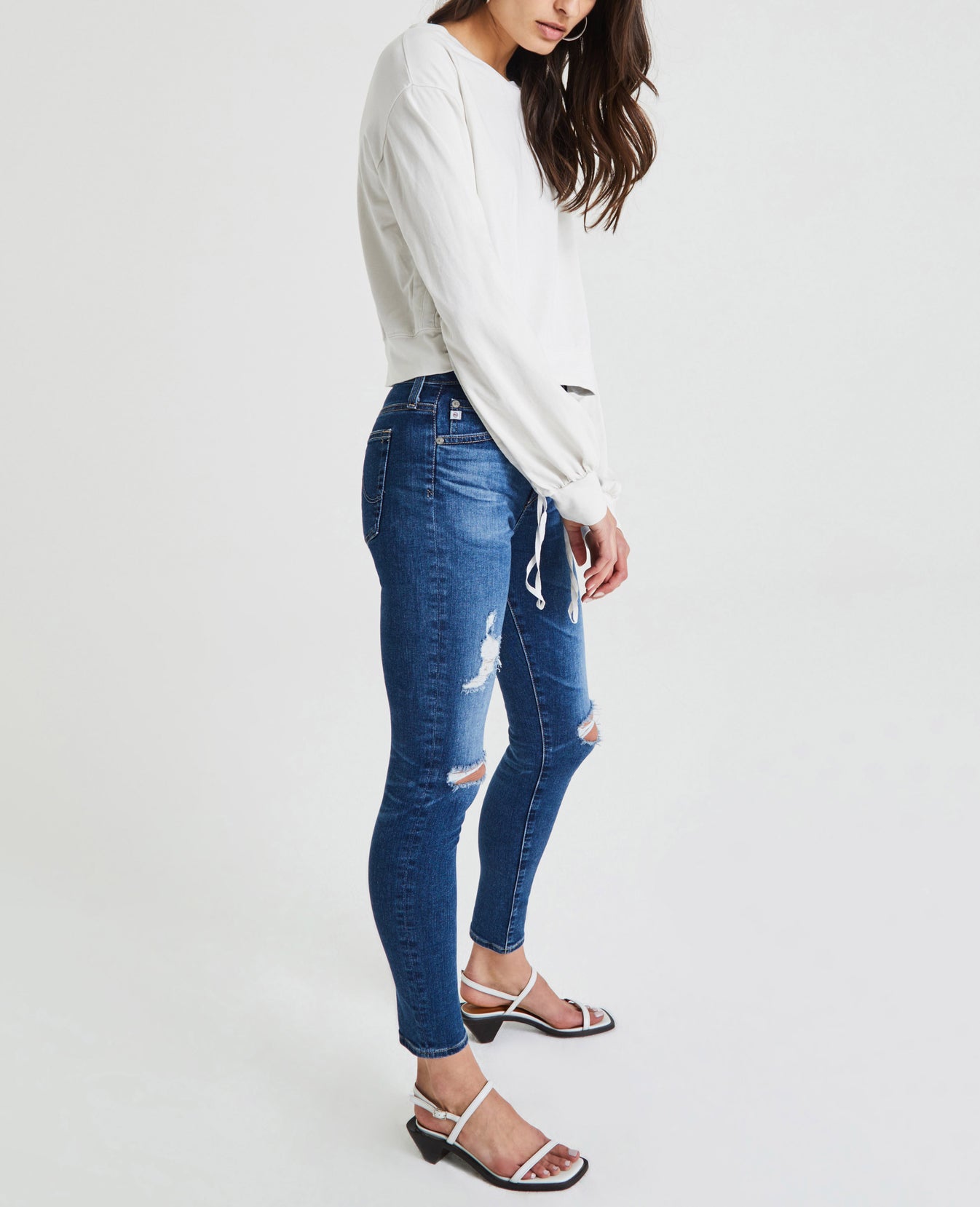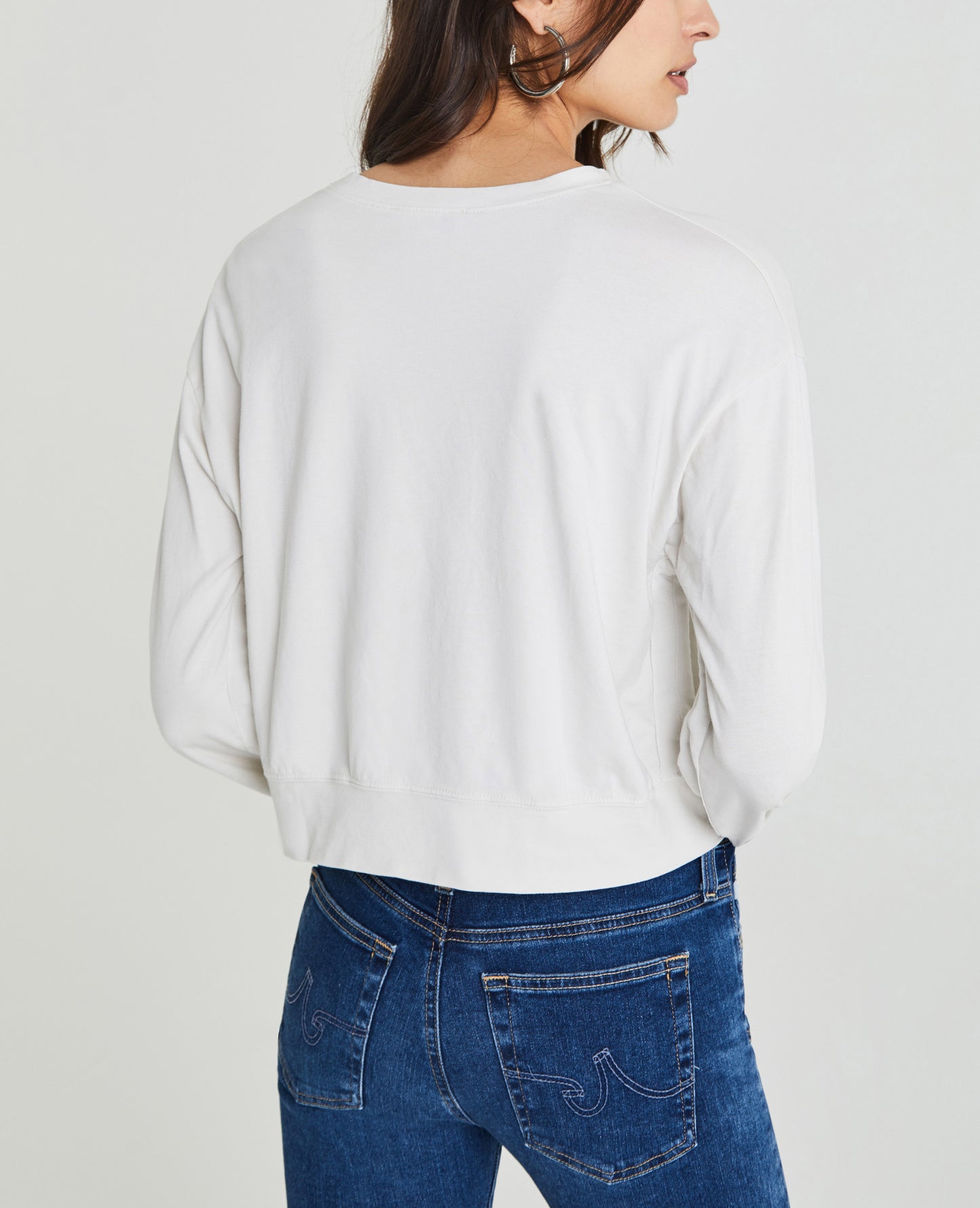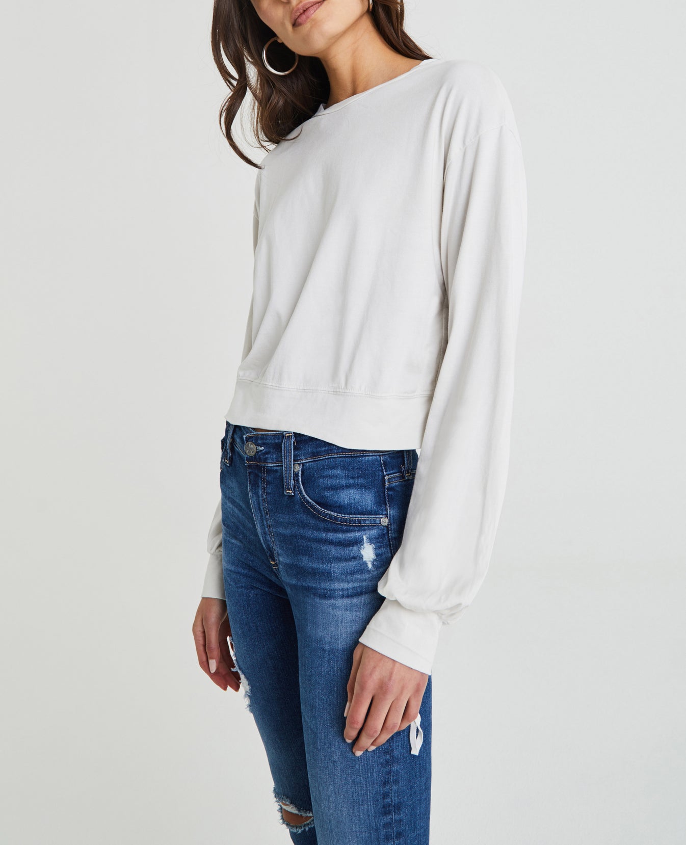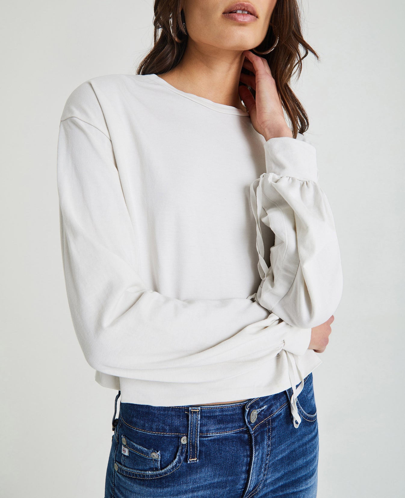 The Farrow Sweatshirt for women features a warm off-white hue, classic crew neck, ballerina-inspired ruching at the sleeves, and drawcord details for a utilitarian-effect cinch. This women's pullover is designed in a luxurious plated jersey, offering a soft cotton interior and structured face for the perfect basic knit.