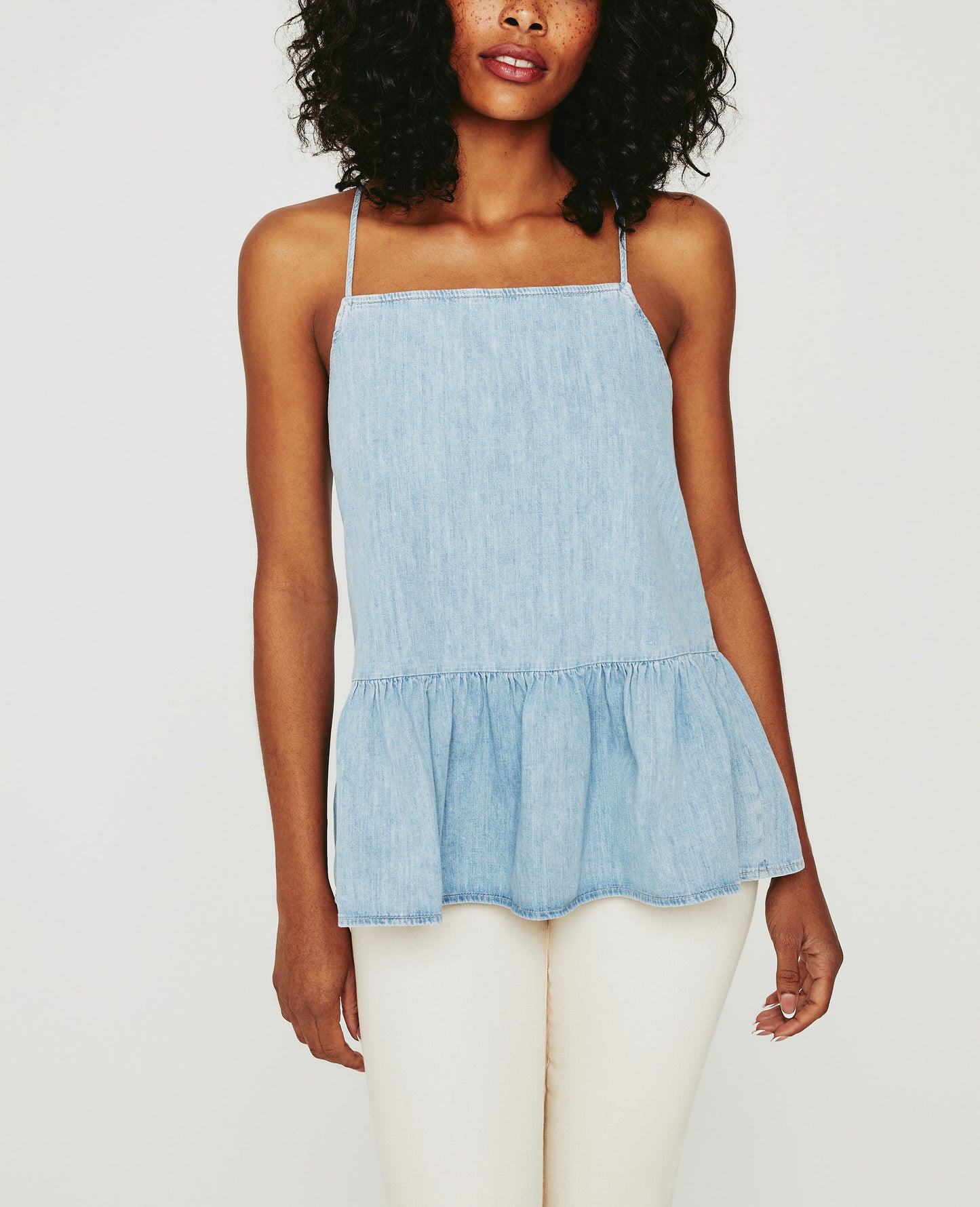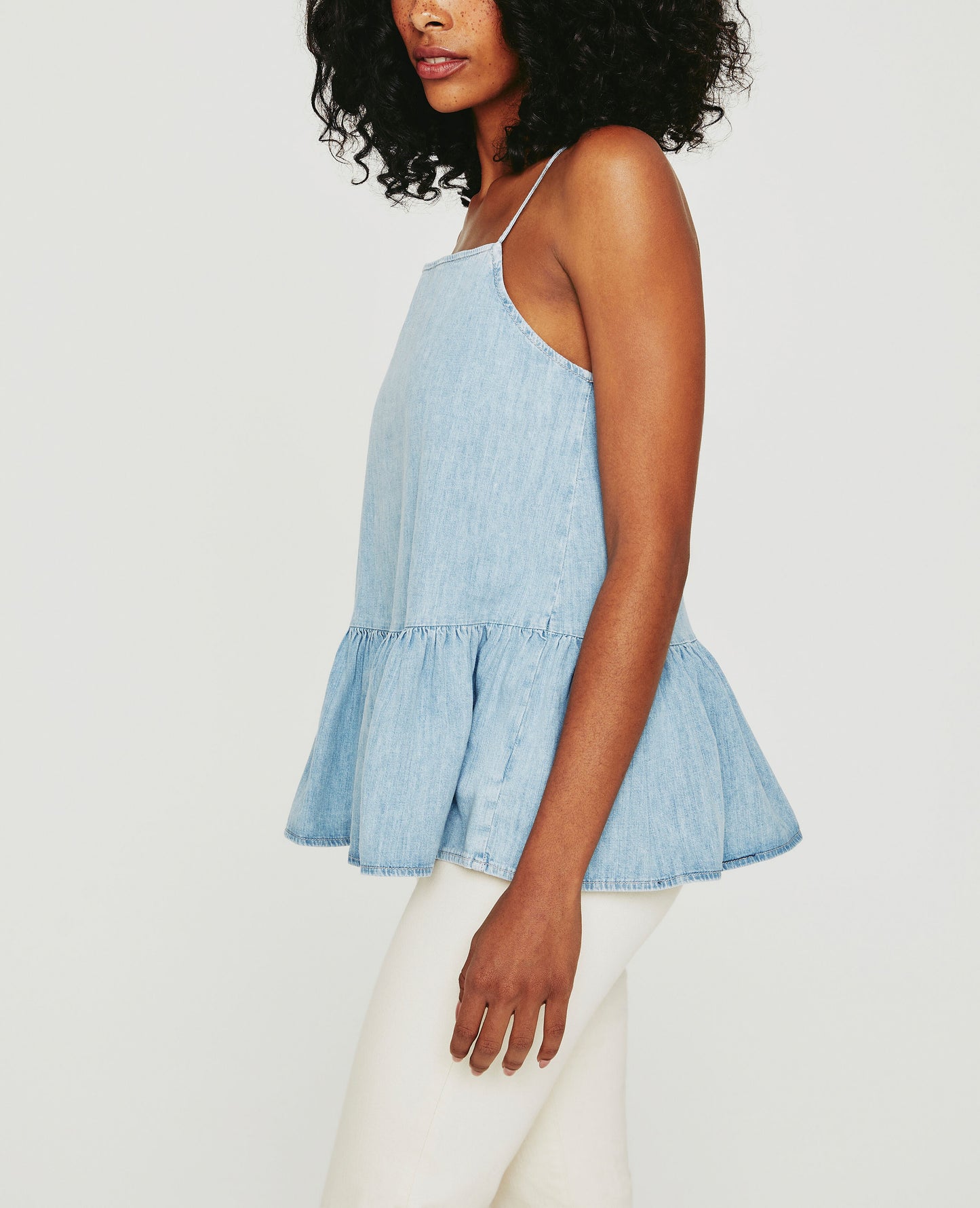 Finley is our new cami tank featuring a flirtatious ruffle hem detail. Bold when worn alone, or versatile when layered over your favorite relaxed tee to take you look from day to night. This dark rinse wash offers an elevated, clean look. Designed in a classic 2x1 Chambray fabrication.