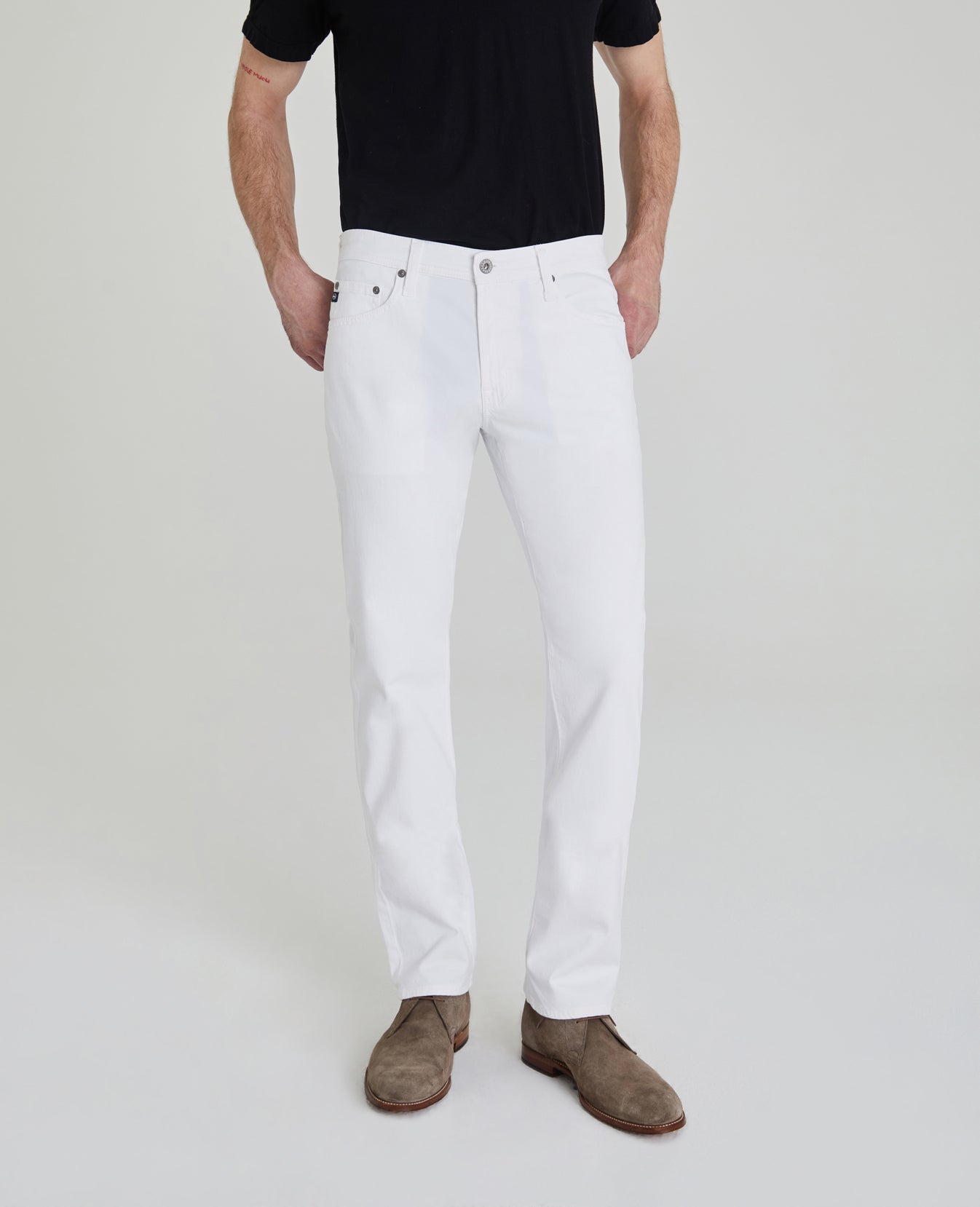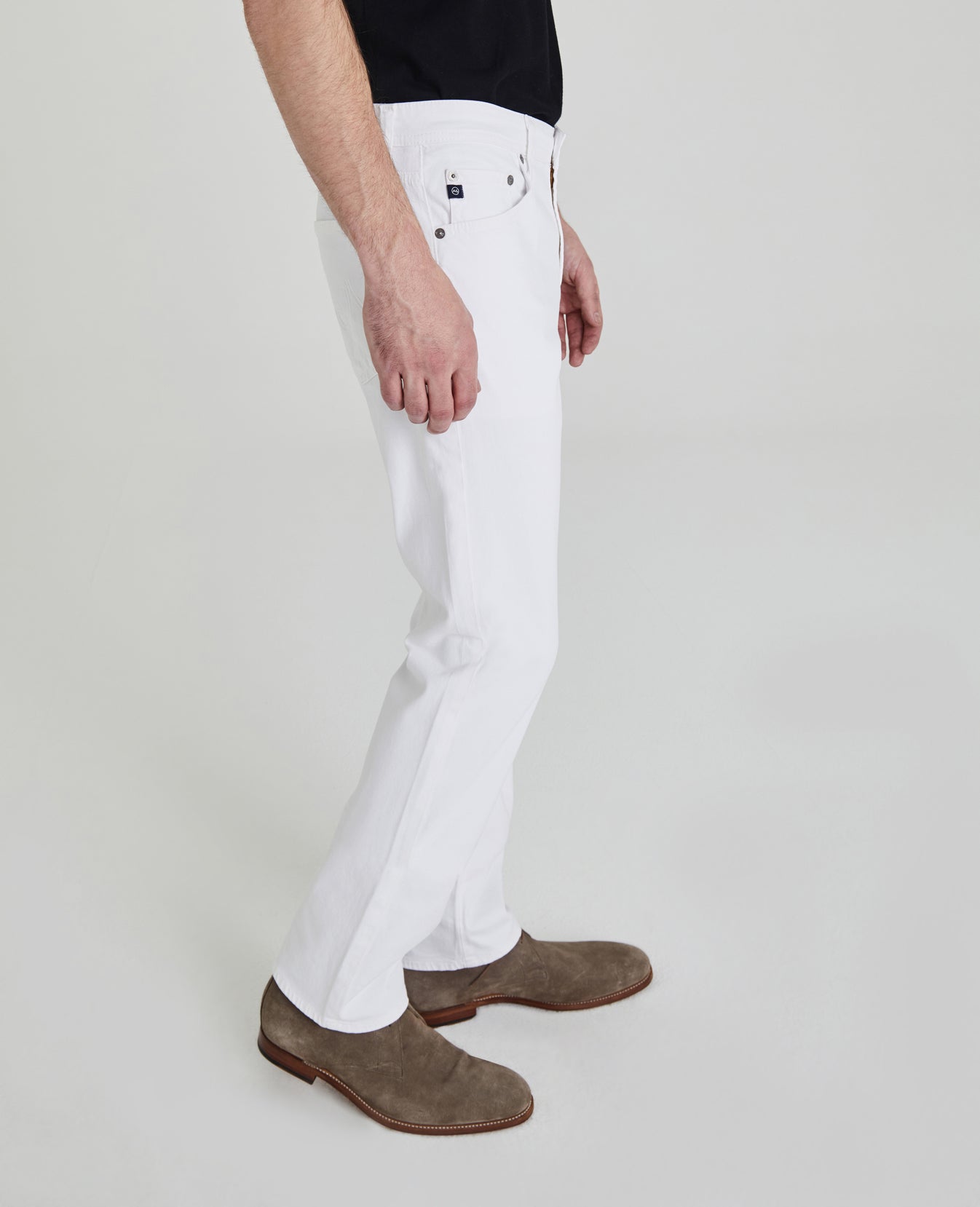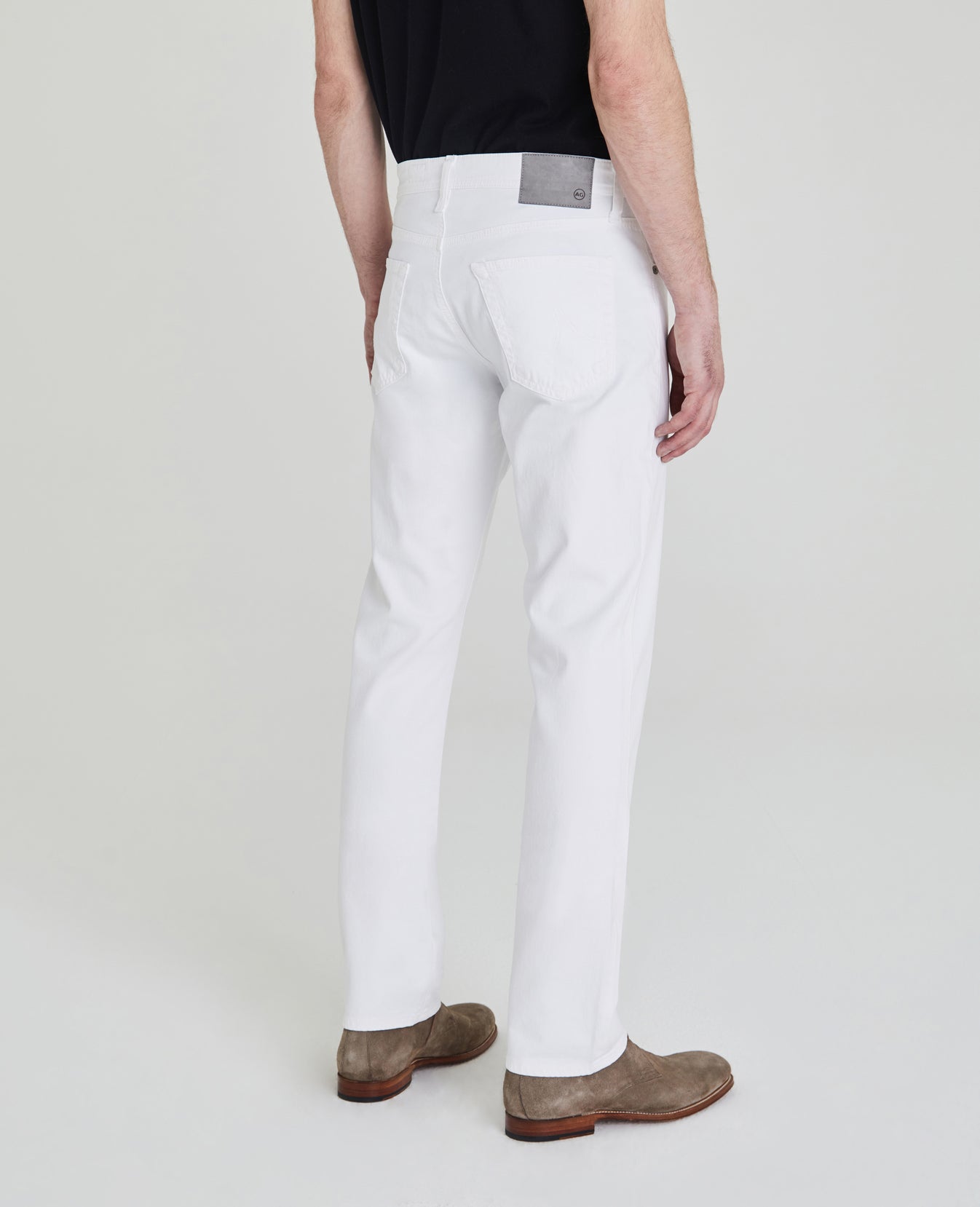 The Graduate is a tailored leg jean for men featuring a white hue. The Graduate is cut in a slim mid-rise waist with a relaxed fit from the hip to the knee before tapering at the leg opening. This men’s slim straight jean is designed in 8.4 oz. Sueded Stretch Sateen.