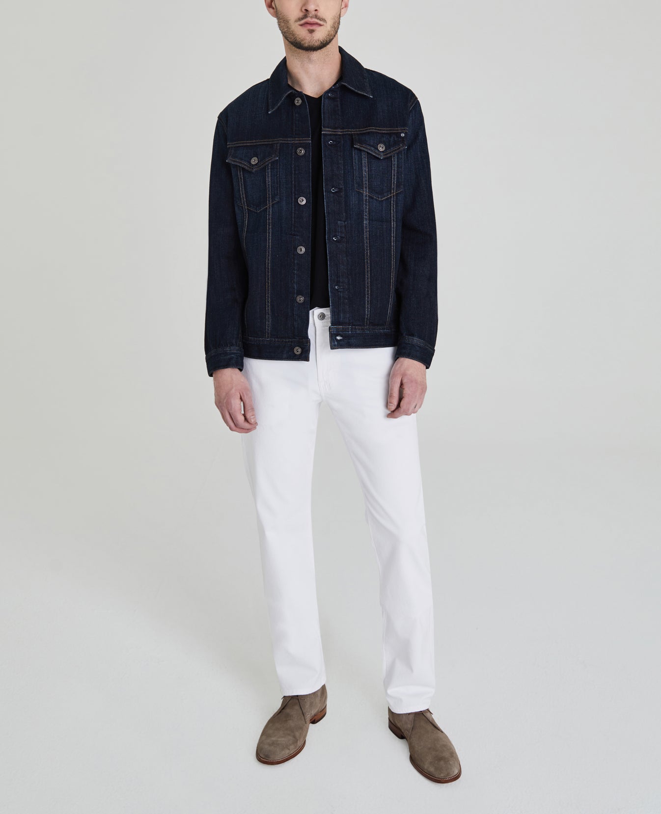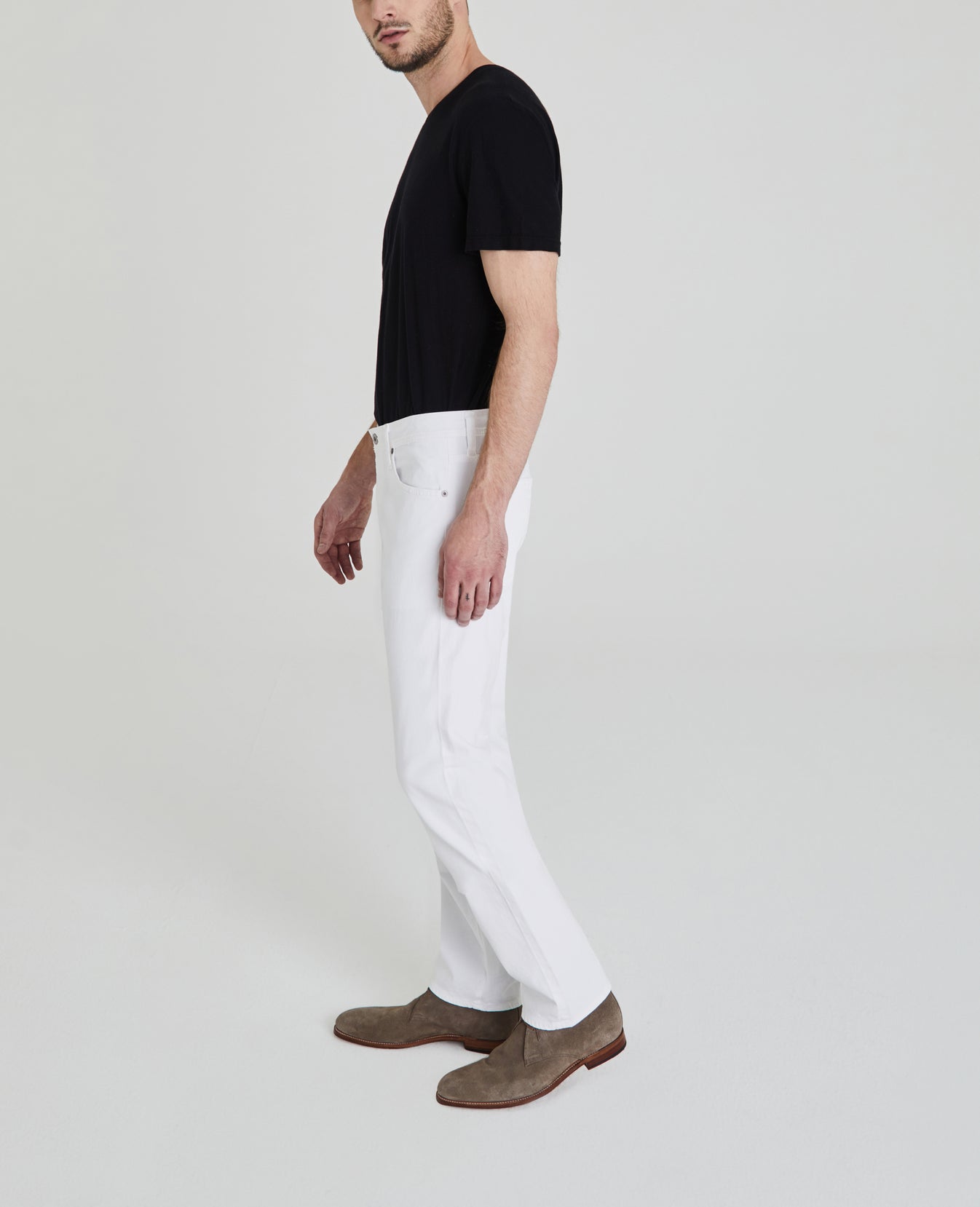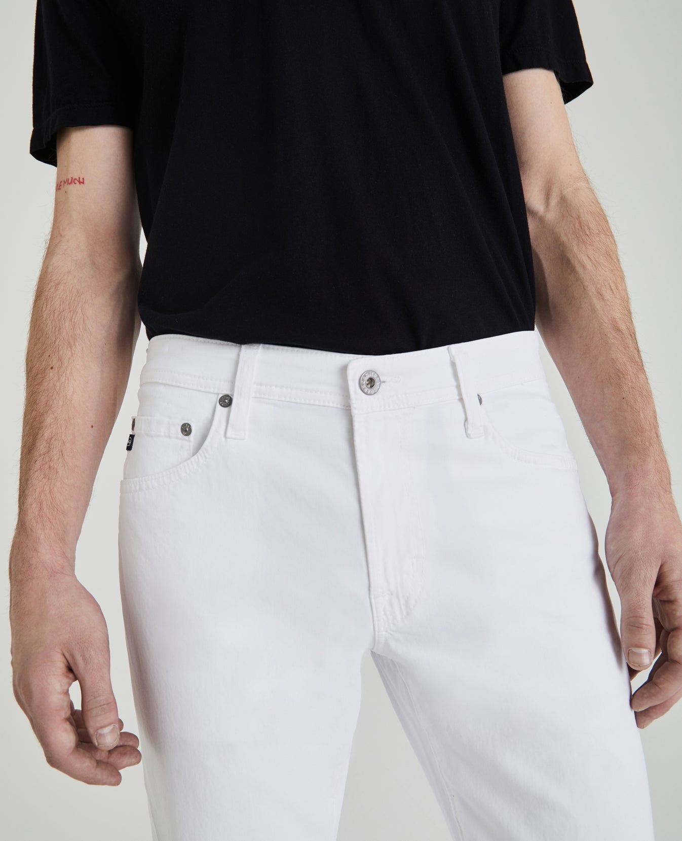 The Graduate is a tailored leg jean for men featuring a white hue. The Graduate is cut in a slim mid-rise waist with a relaxed fit from the hip to the knee before tapering at the leg opening. This men’s slim straight jean is designed in 8.4 oz. Sueded Stretch Sateen.