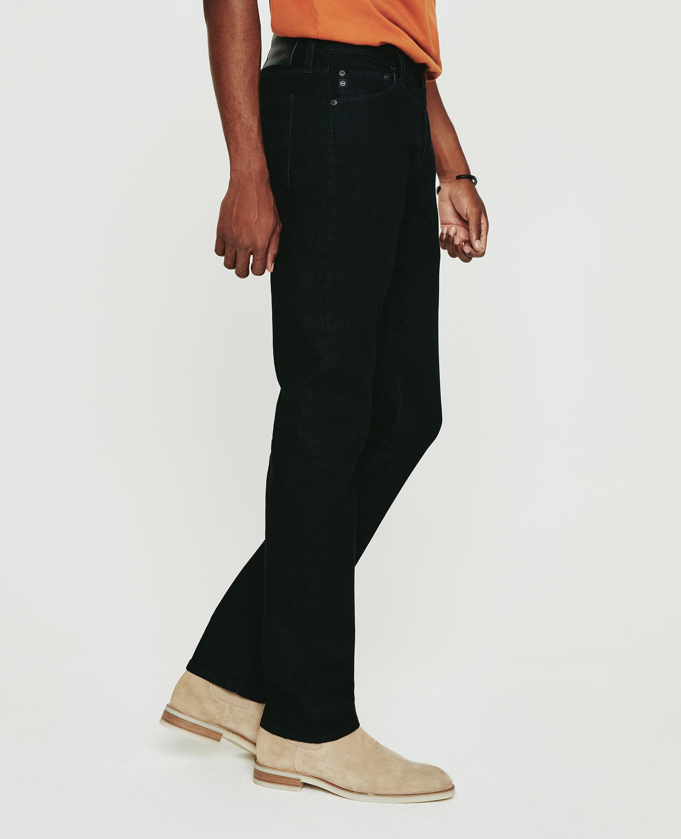 The Graduate is a tailored leg jean for men featuring a dark wash. The Graduate is cut in a slim mid-rise waist with a relaxed fit from the hip to the knee before tapering at the leg opening. This men’s slim straight jean is designed in 11 oz. Lead Denim.