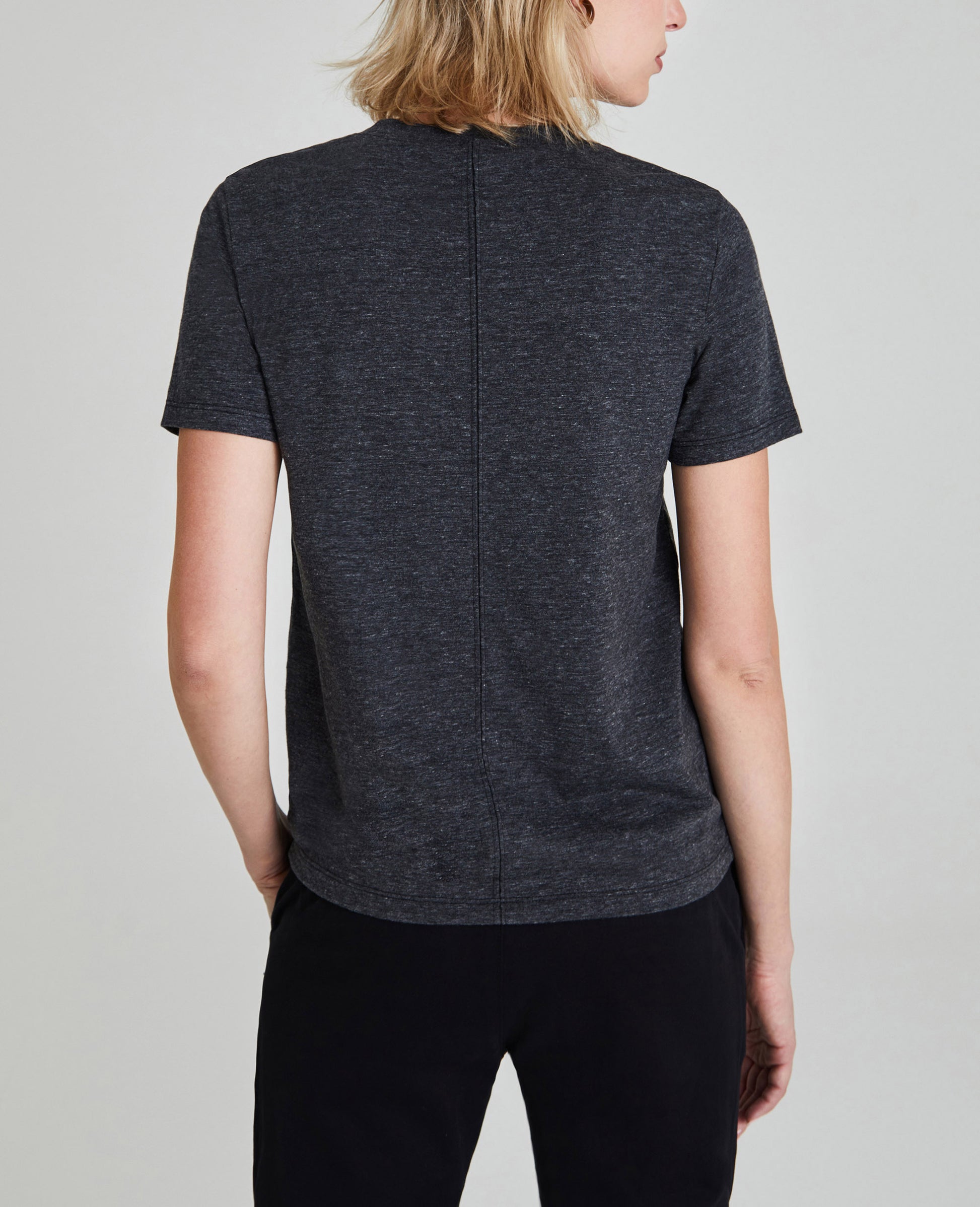 The Gray Boy Tee for women features a rich charcoal grey shade with subtle flecking and a classic crew neck line. This women’s t-shirt is designed in a lightweight pima cotton blend for an ultra-smooth feel, well-worn vintage look, and modern wrinkle-free properties.