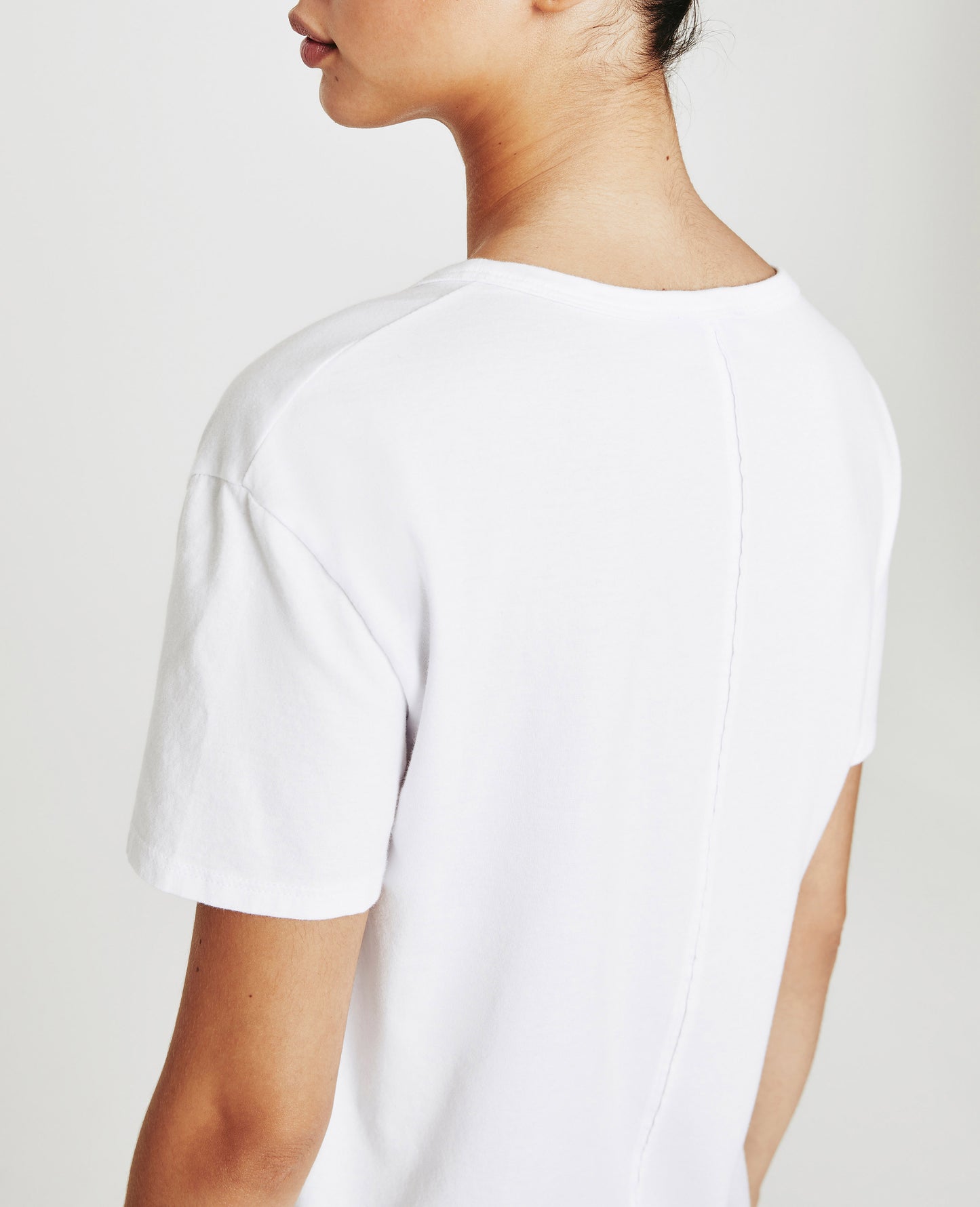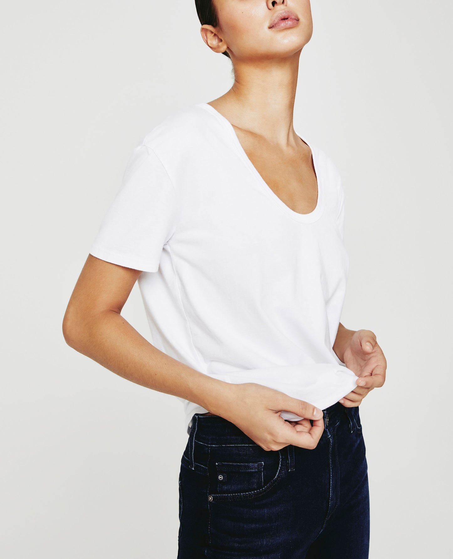 The Henson Tee for women features a bright white hue, double-tuck seam detailing at the back, and a beautifully draped V neckline. This women’s t-shirt is designed in a sumptuous Luxe Comfort Jersey fabrication for that touch of sophistication, still with undeniable comfort.