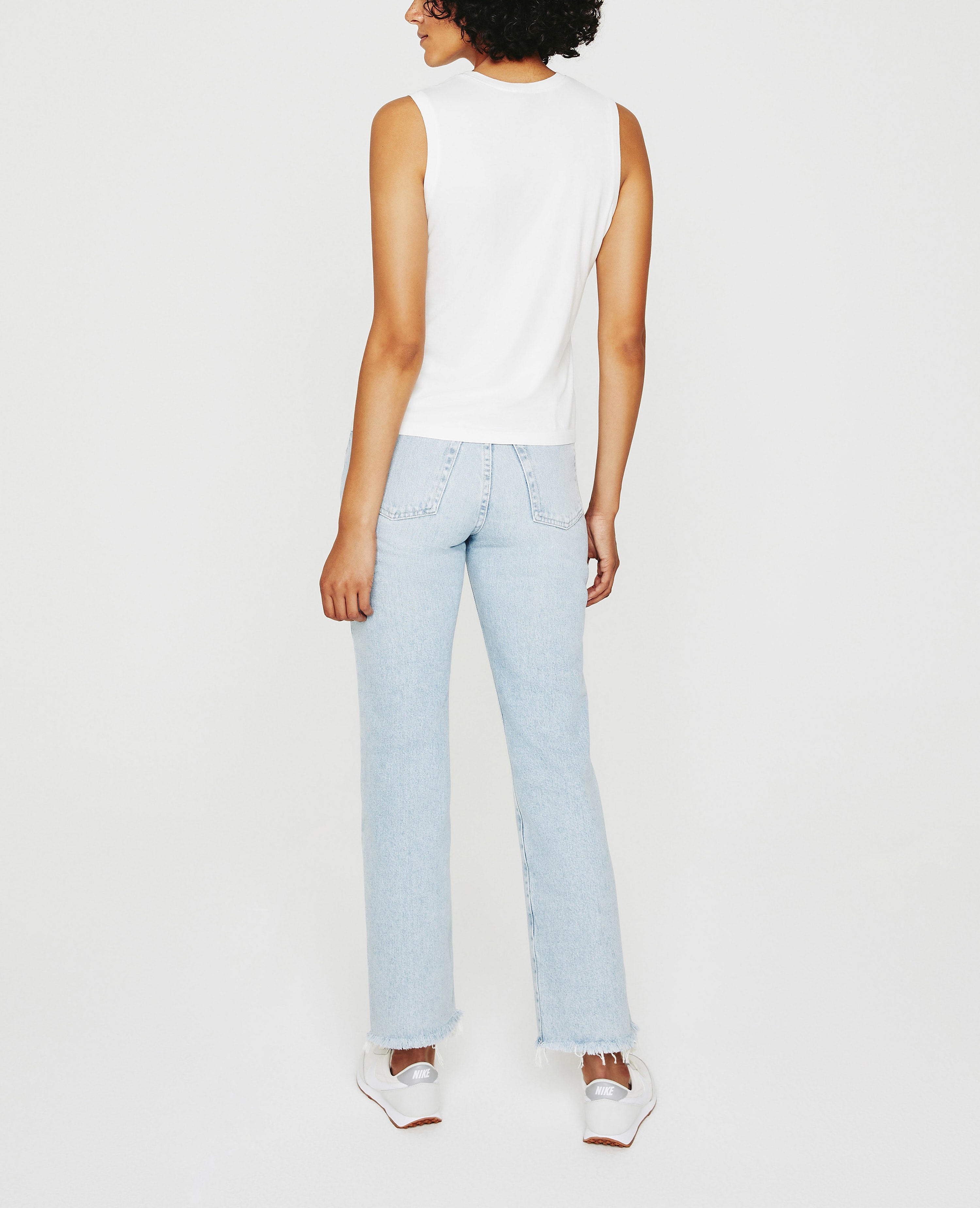 Our Jagger Muscle Tank in ivory is the perfect sleeveless muscle tank for all year round, cut with a higher arm hole to be worn alone or under jackets and blazers. The 1X1 rib neckband makes this a classic—yet it still feels modern, casual, and cool in its silhouette. Our Jersey Knit offers a luxurious comfort that is unrivaled—knitted with both S-twist and Z-twist yarn to sustain longevity and stability, preventing unnecessary twisting and torquing. During the production process, the S-twist yarn is spun counter-clockwise creating a right-handed twill. The Z-twist yarn works in opposition, spinning clockwise for a left-handed twill. This opposition—when working together—yields a softer, more durable fabrication and gives strength to the yarn making it more difficult to pull apart. Designed in 100% Cotton