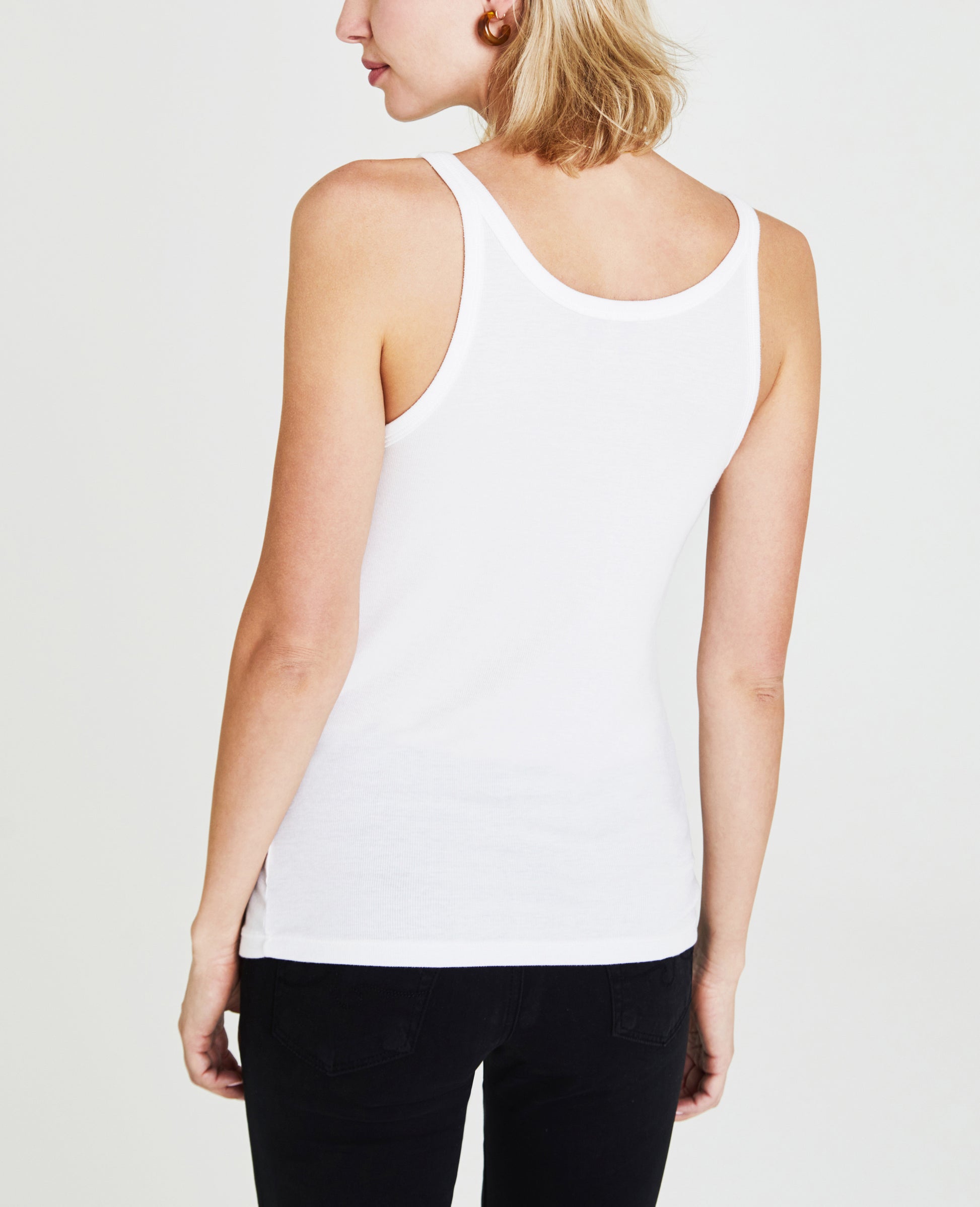The Jagger Tank for women features a clean white hue, fitted silhouette, and slim racer-inspired straps with scoop neckline. This women’s tank top offers self-binding details for a clean, minimal aesthetic for easy layering and versatility. Designed in an eco-friendly micro lyocell rib fabrication, offering touchable softness and luxury in a wider rib construction.