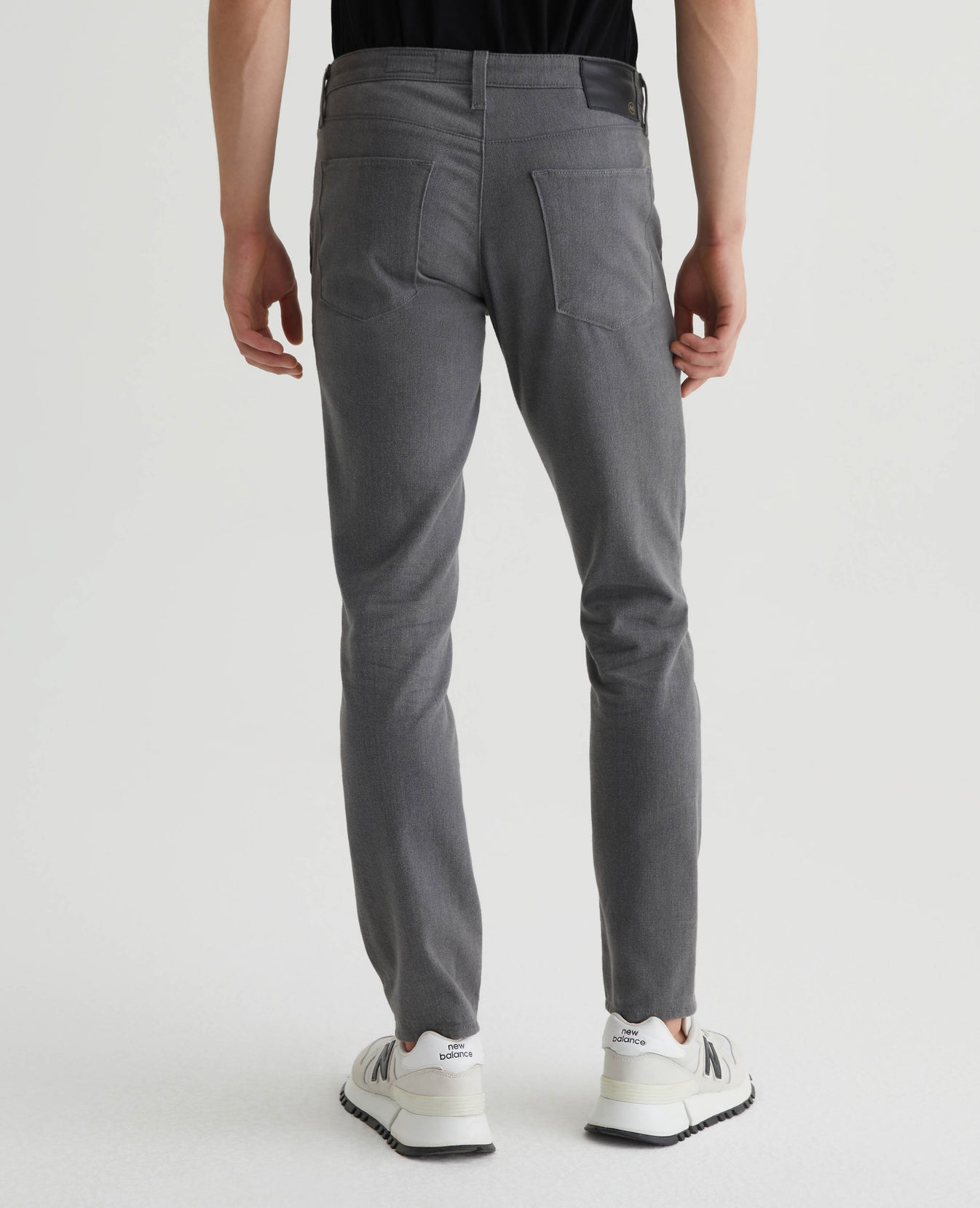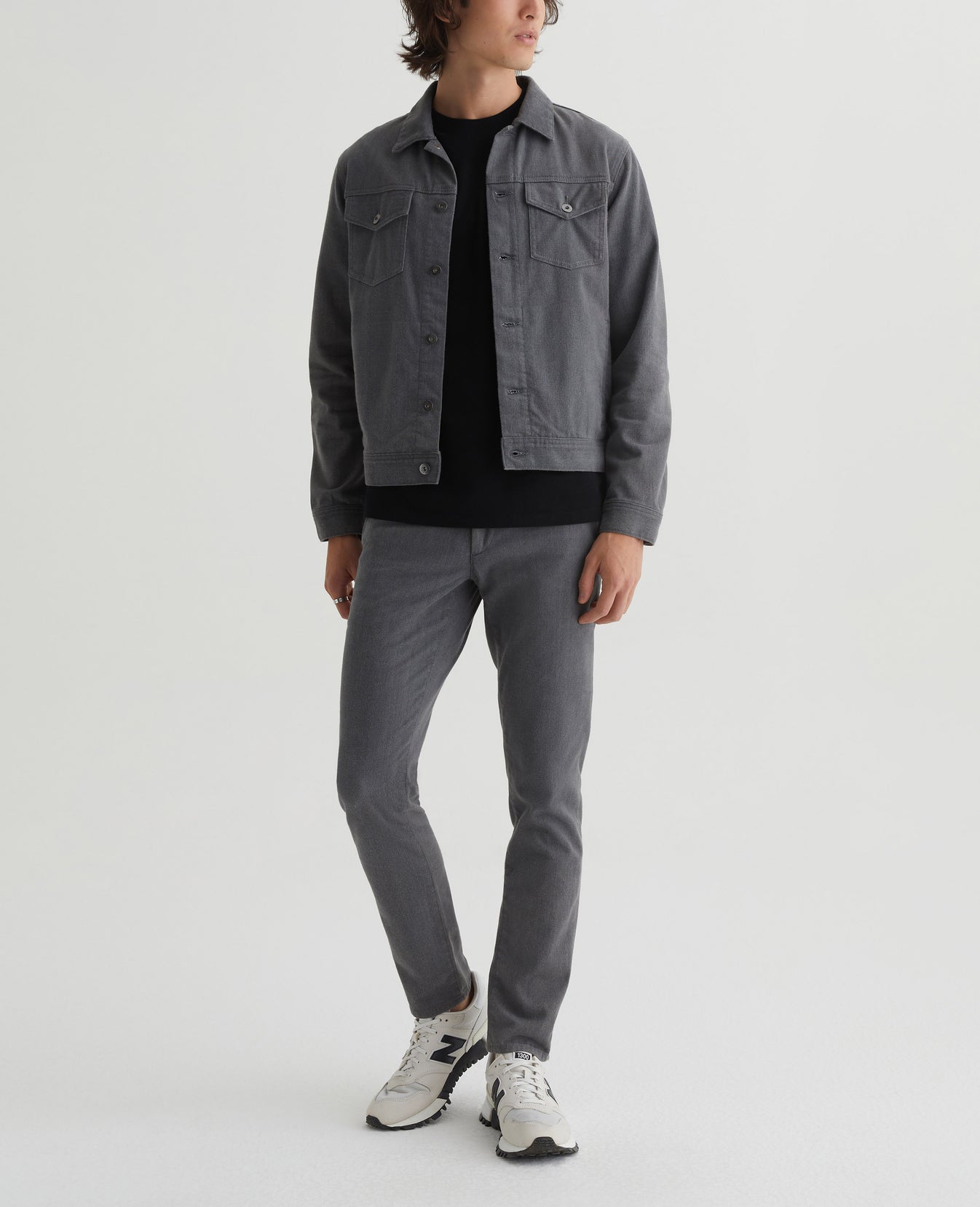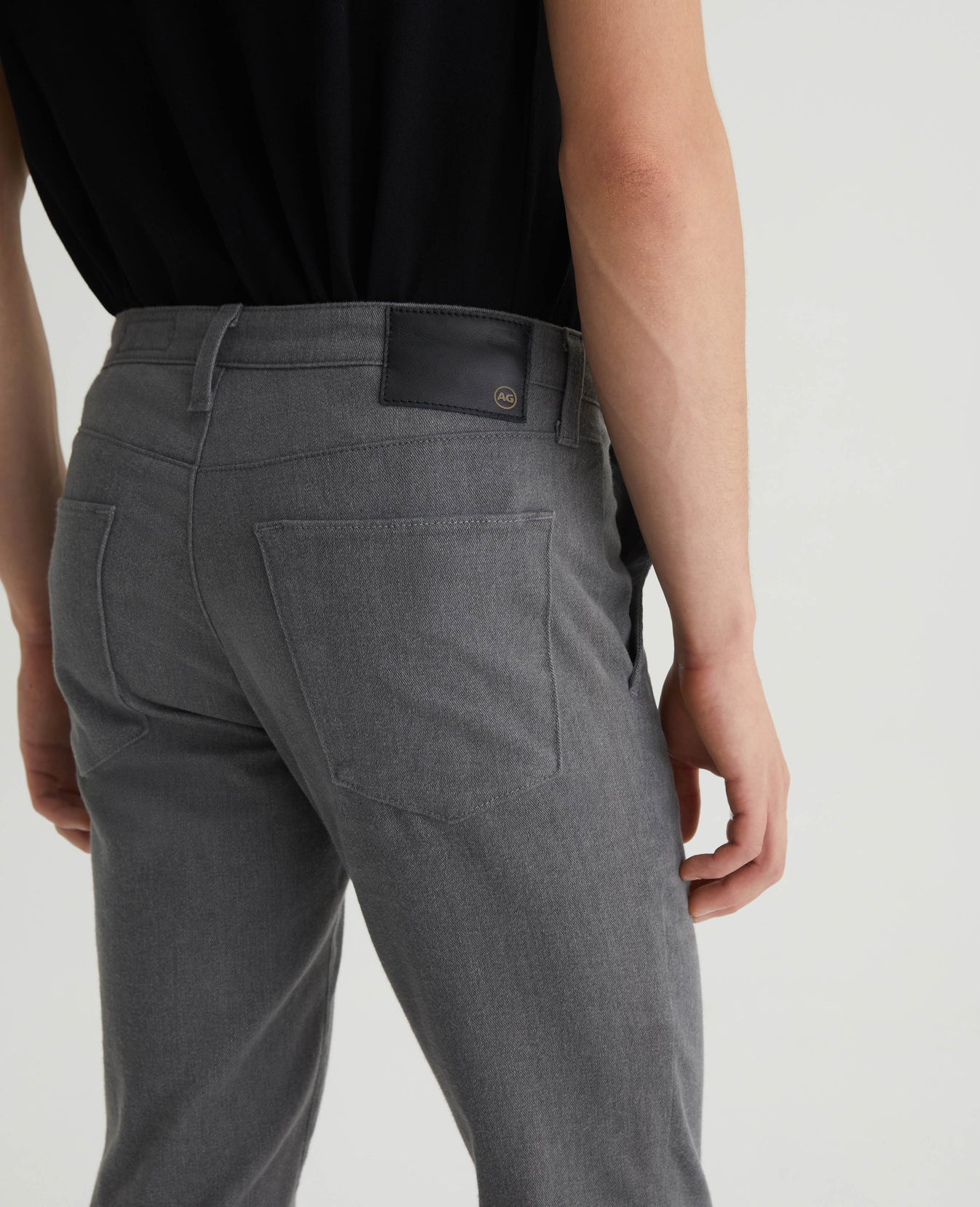 Jamison is a skinny trouser for men, updated in 9.1 oz. Hypersoft Black Denim with a versatile grey shade and a luxurious feel. This pair has a slim upper block and tapered leg openings, plus slash front pockets to complete the tailored look. AG Cloud Soft Denim™ fabrics feature a special left-hand twill construction, allowing the yarns to gently relax and untwist for a supple feel that gets softer with every wear. Dual-elastic performance fibers offer premium stretch and recovery.