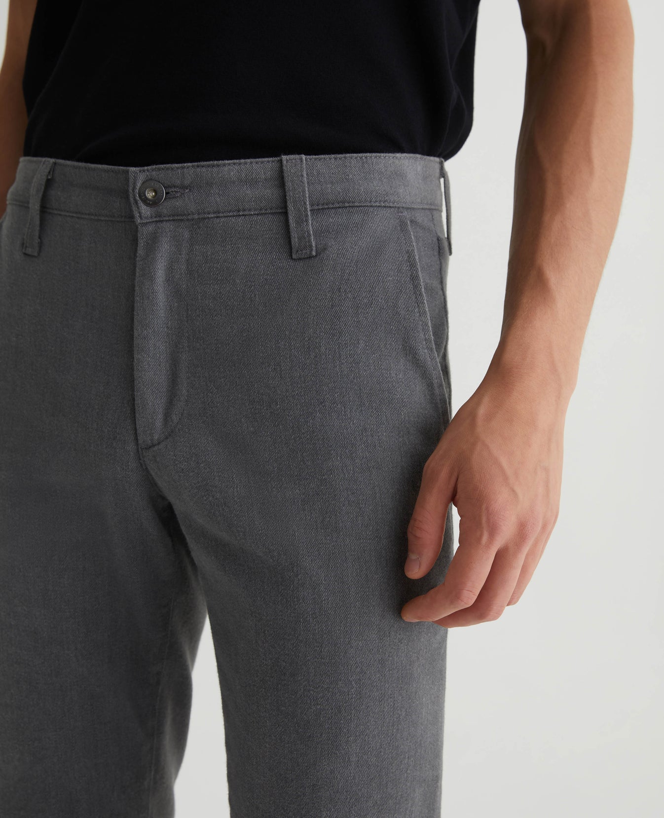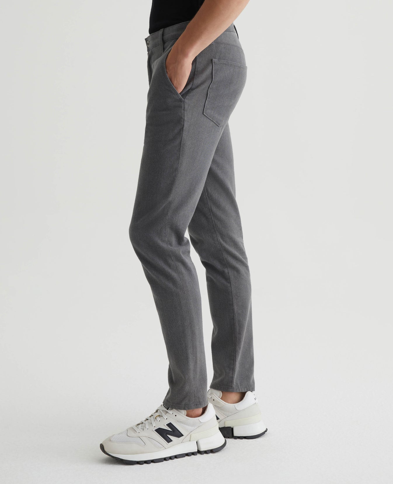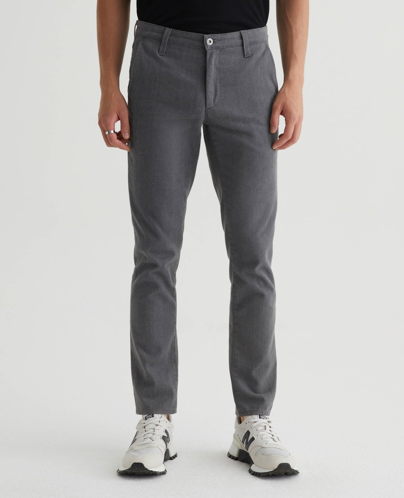 Jamison is a skinny trouser for men, updated in 9.1 oz. Hypersoft Black Denim with a versatile grey shade and a luxurious feel. This pair has a slim upper block and tapered leg openings, plus slash front pockets to complete the tailored look. AG Cloud Soft Denim™ fabrics feature a special left-hand twill construction, allowing the yarns to gently relax and untwist for a supple feel that gets softer with every wear. Dual-elastic performance fibers offer premium stretch and recovery.