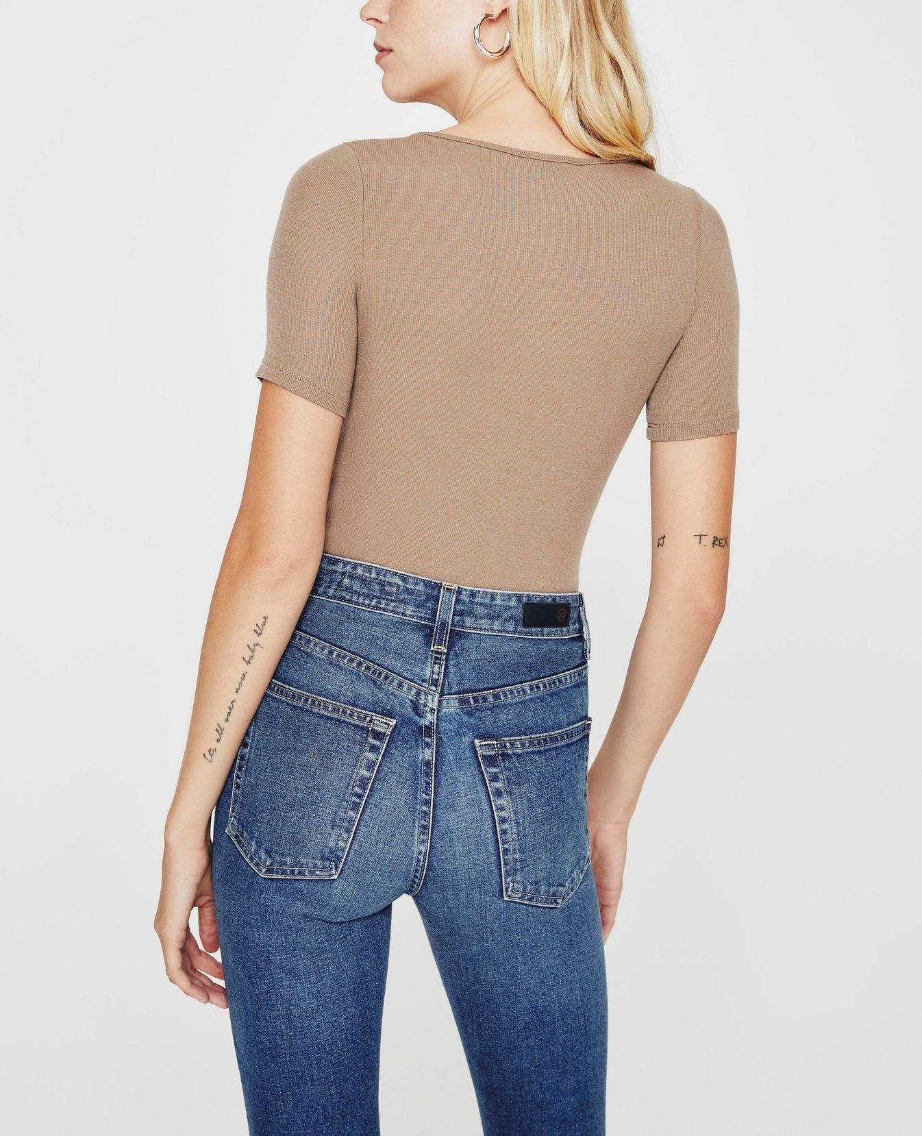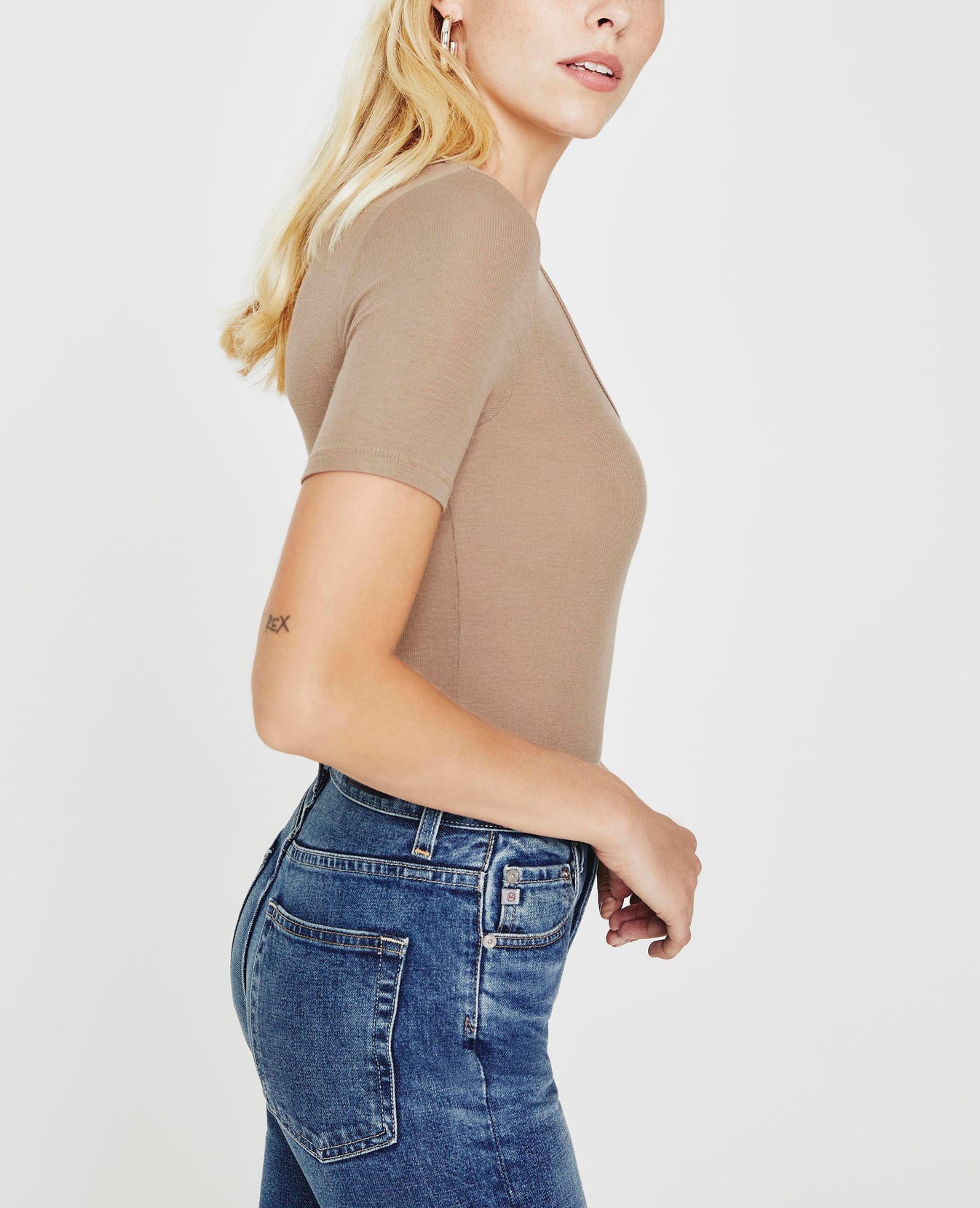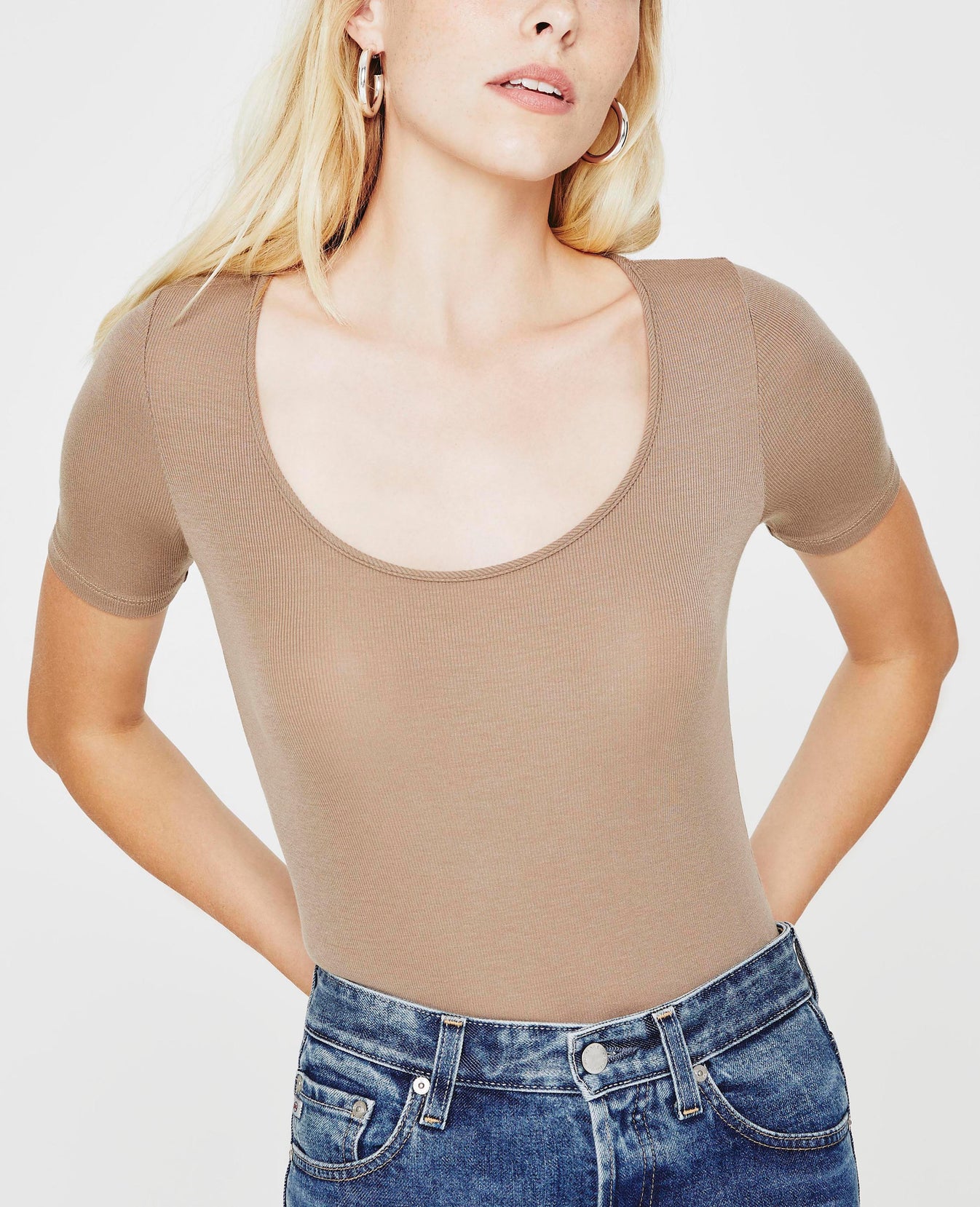 Jaxon Scoop for women features a beige hue, fitted silhouette, and slim racer-inspired straps with a scoop neckline. This women's tank top offers self-binding details for a clean, minimal aesthetic for easy layering and versatility. Designed in an eco-friendly 2x1 Lyocell Rib fabrication, offering touchable softness and luxury in a wider rib construction.