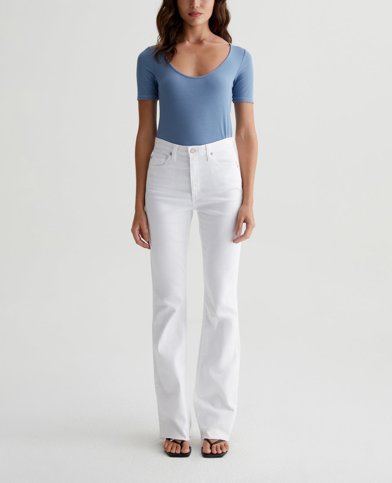 The Jaxon Scoop is a fitted short-sleeve tee with a scoop neckline and slim self-binding. Made from an eco-friendly 2x1 Lyocell Rib fabrication in sky blue, it's simple, comfortable, and luxuriously soft.