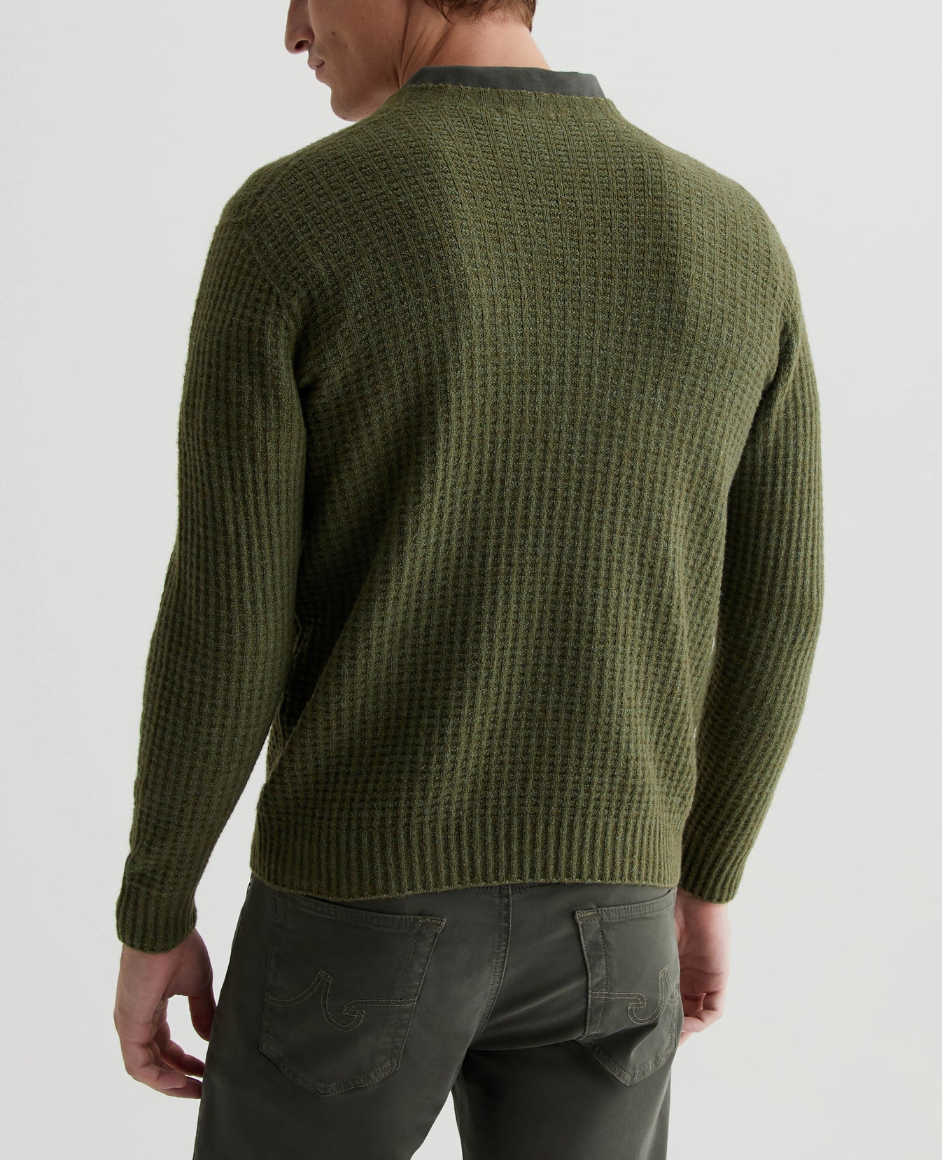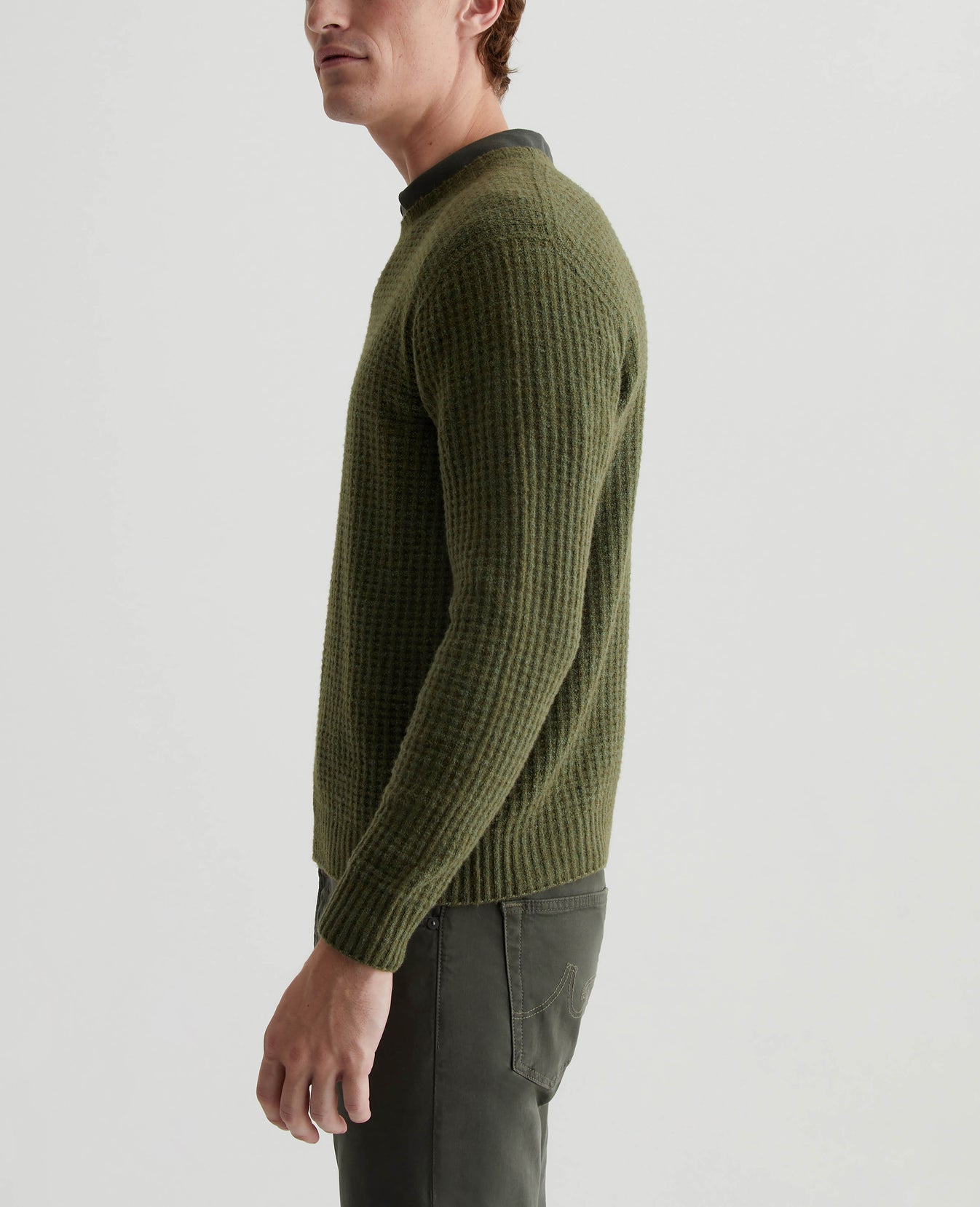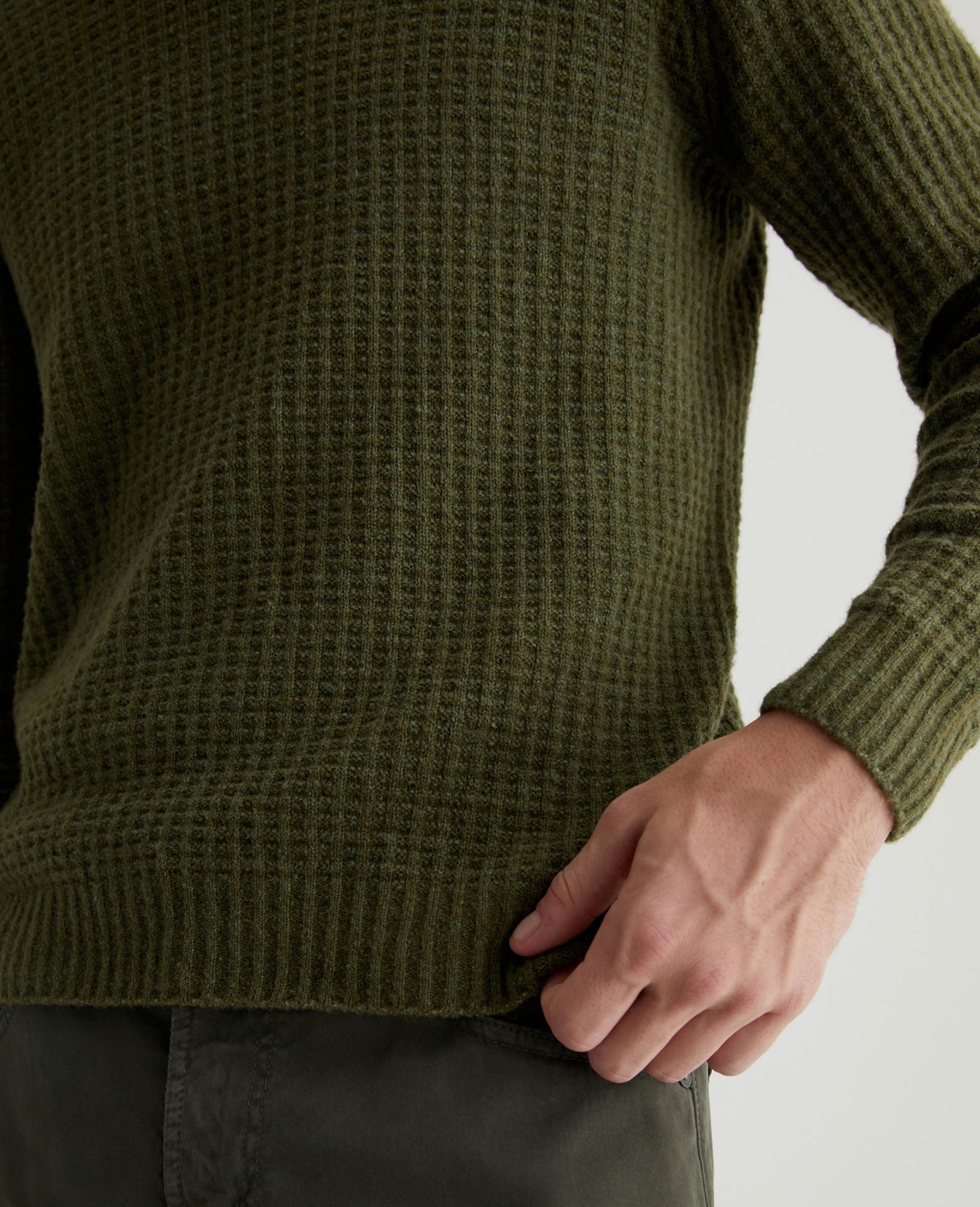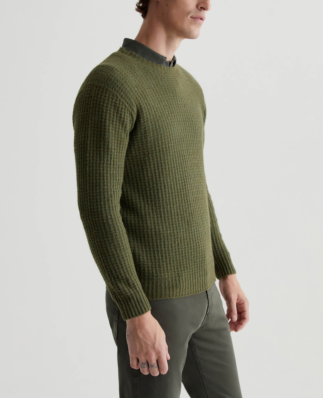 The Jayson Crew is a slim-fit crewneck sweater with long sleeves, waffle detailing, and a versatile green shade. Spun from a soft blend wool, it's a luxe staple to wear on its own or layered under a jacket.