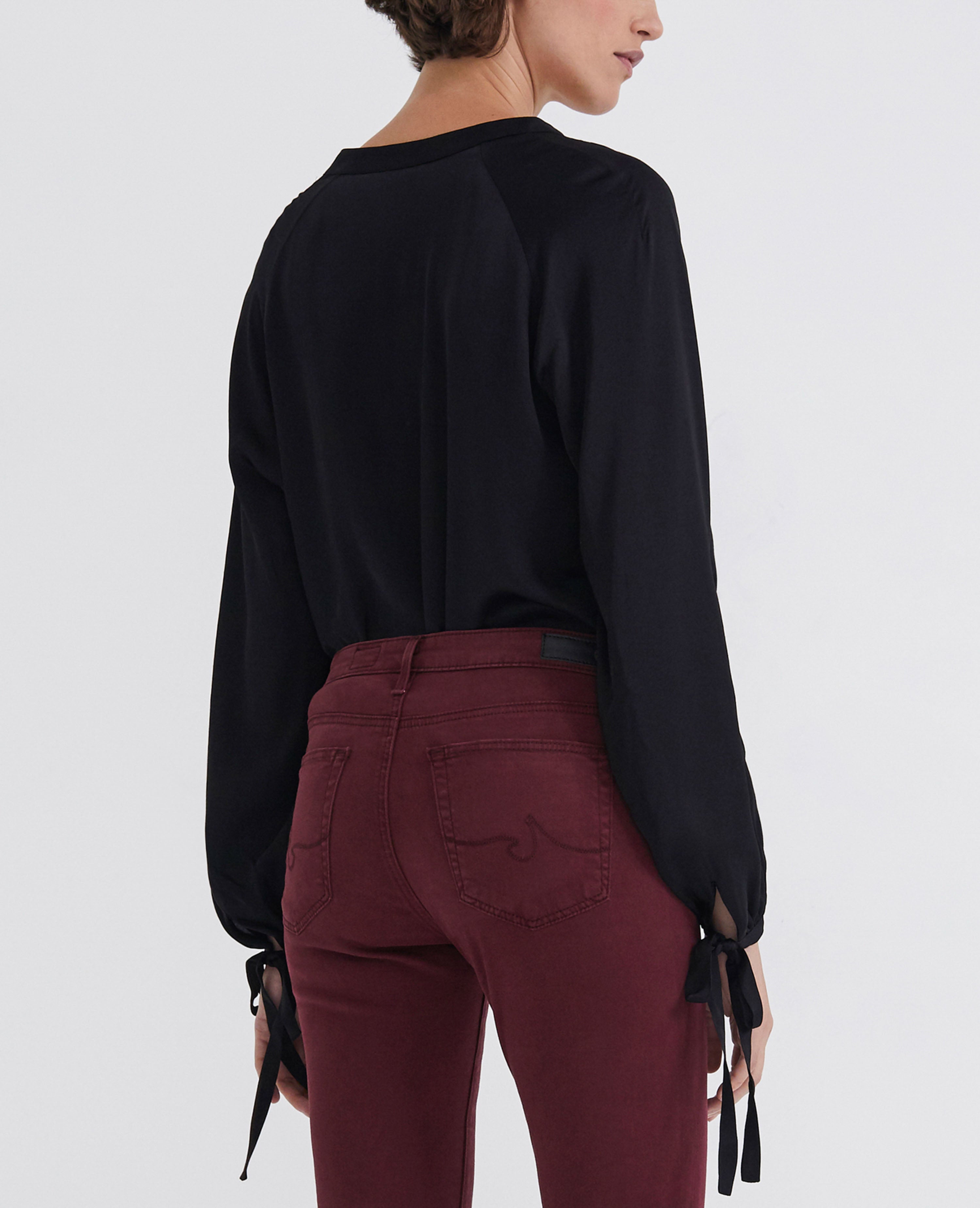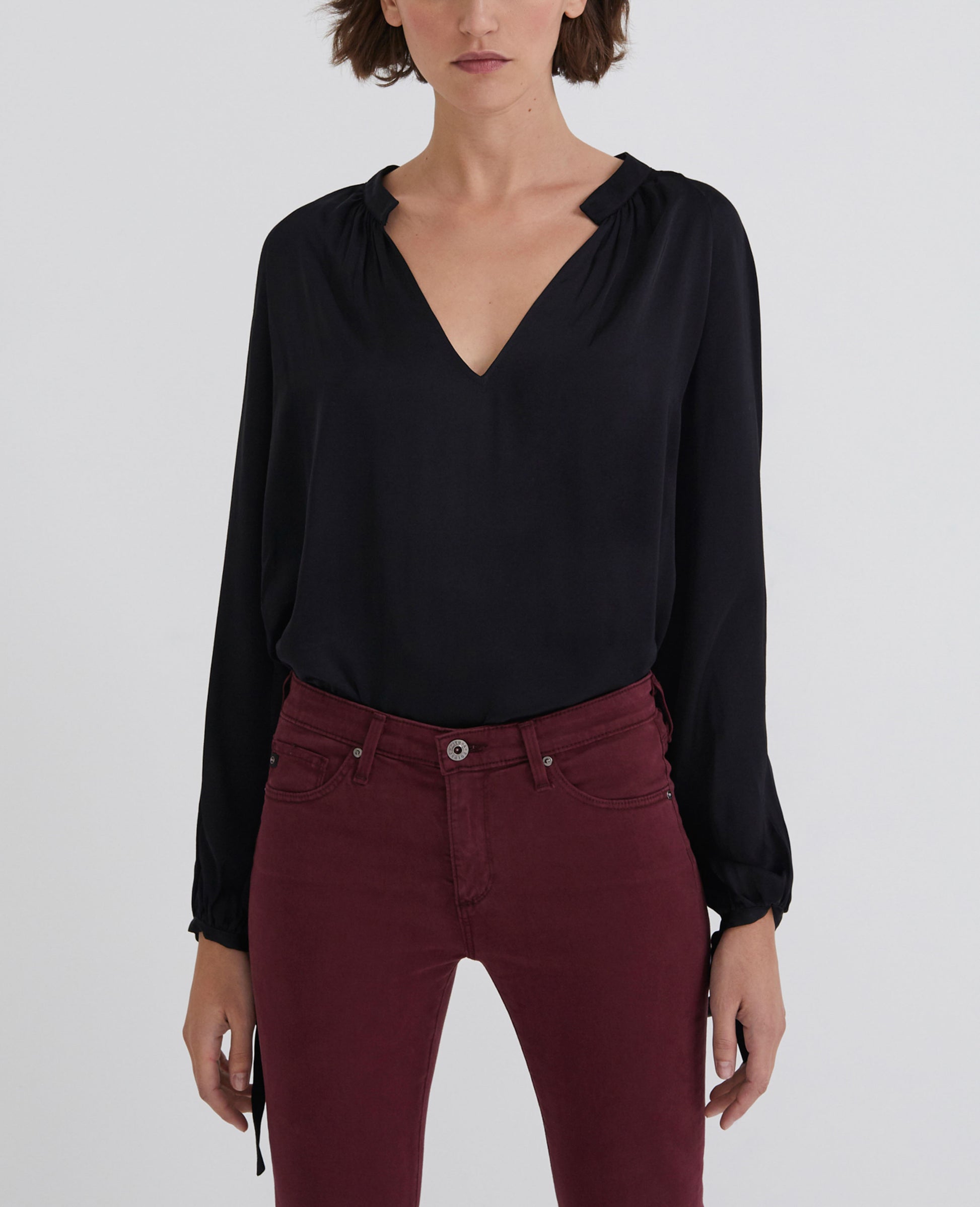 Cut from crinkle crepe for a lightweight feel, this shirt is elevated for everyday. With a V-neckline, standing collar, and tie cuffs, this style is classic and unexpected.