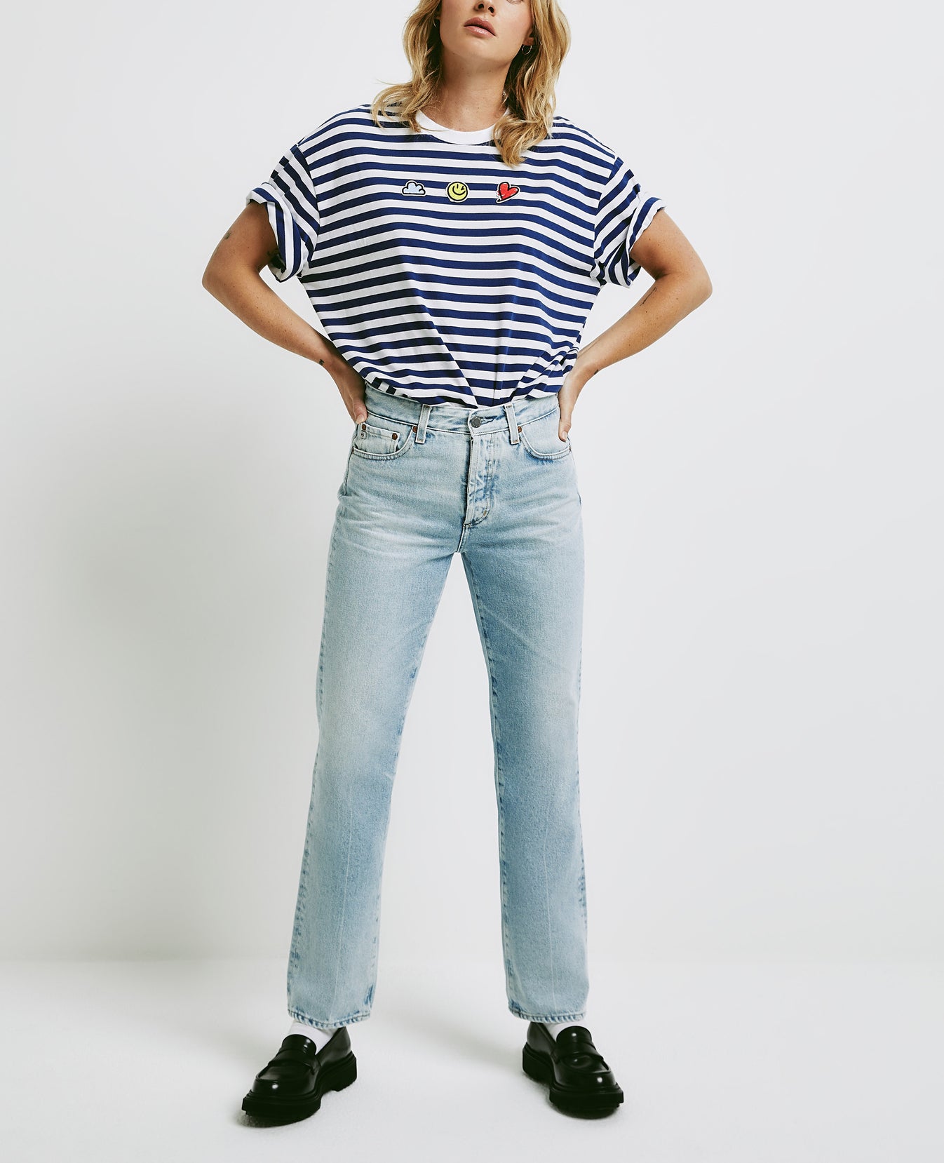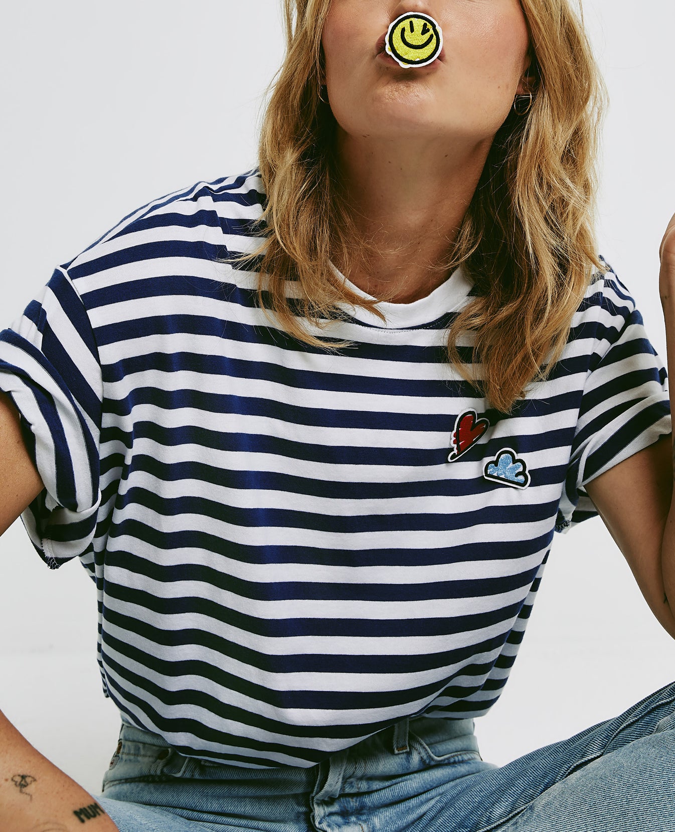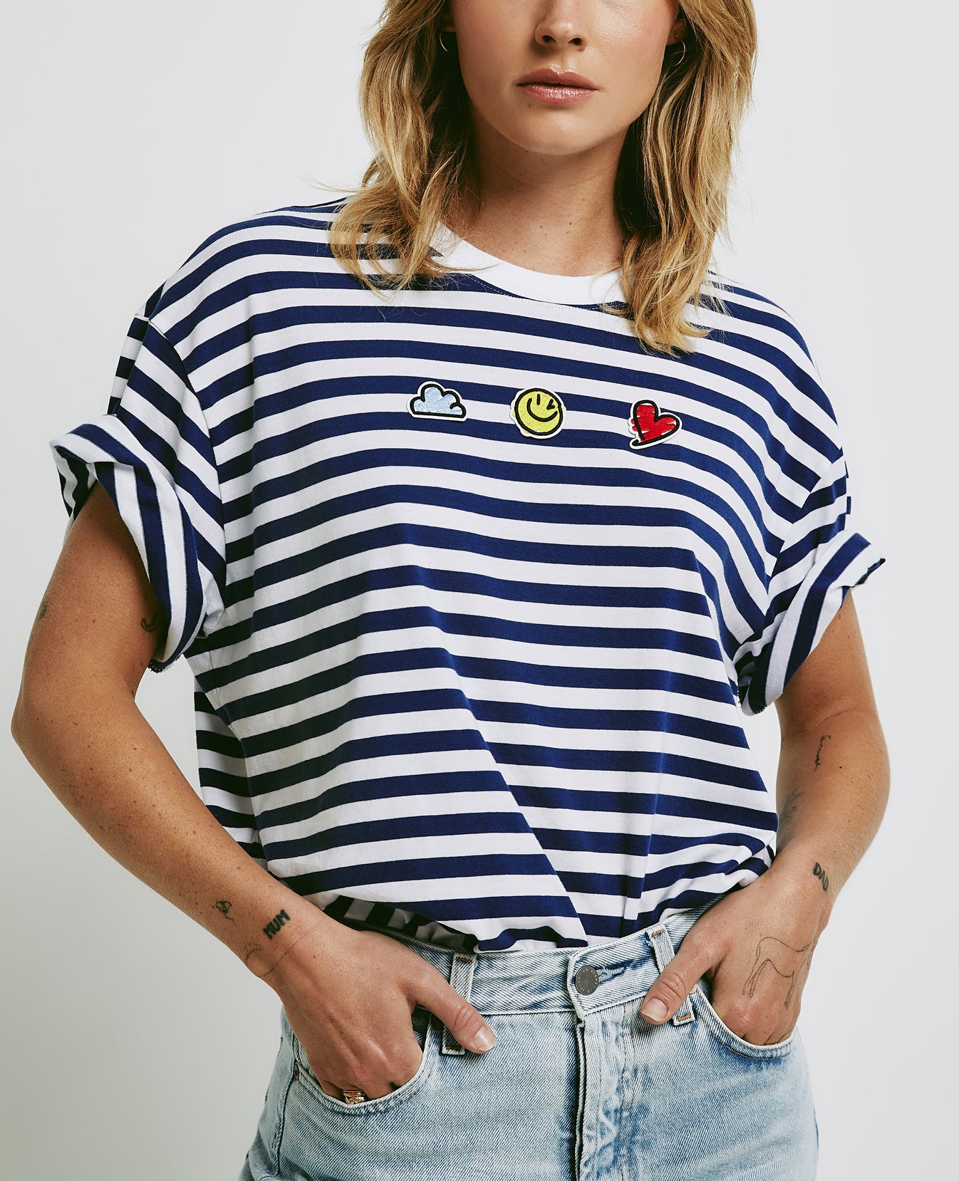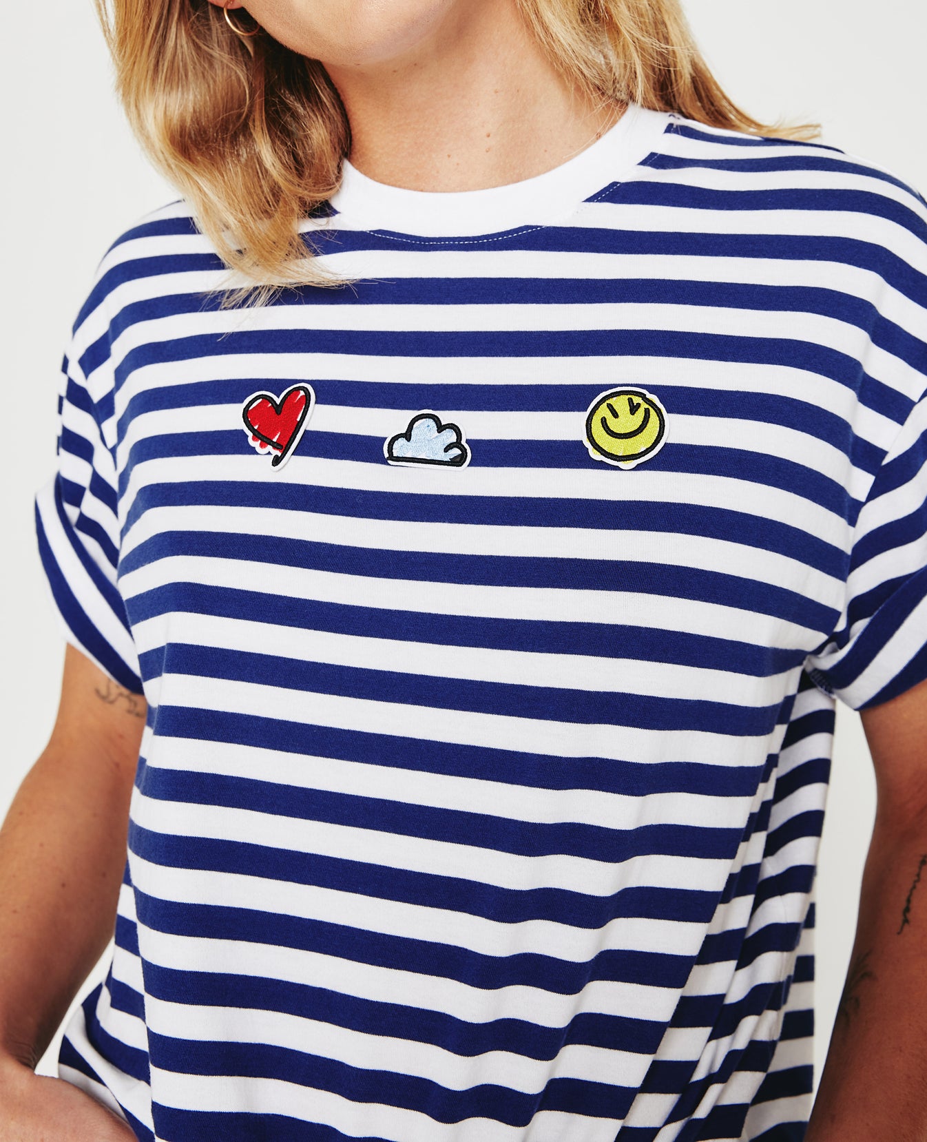 Part of our ALL THE FEELS collection, the Karter Ex-Boyfriend tee comes with a three-pack of iron-on patches so you can personalize the look. Soft and comfortable in striped cotton jersey, this women's tee has a relaxed, easy fit with a crew neck and drop-shoulder construction. Make it your own by adding the heart, smiley face, and cloud patches wherever you want.