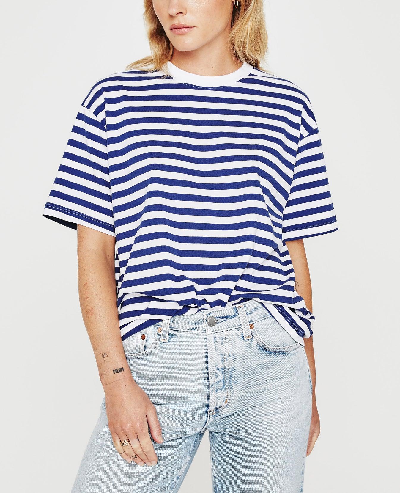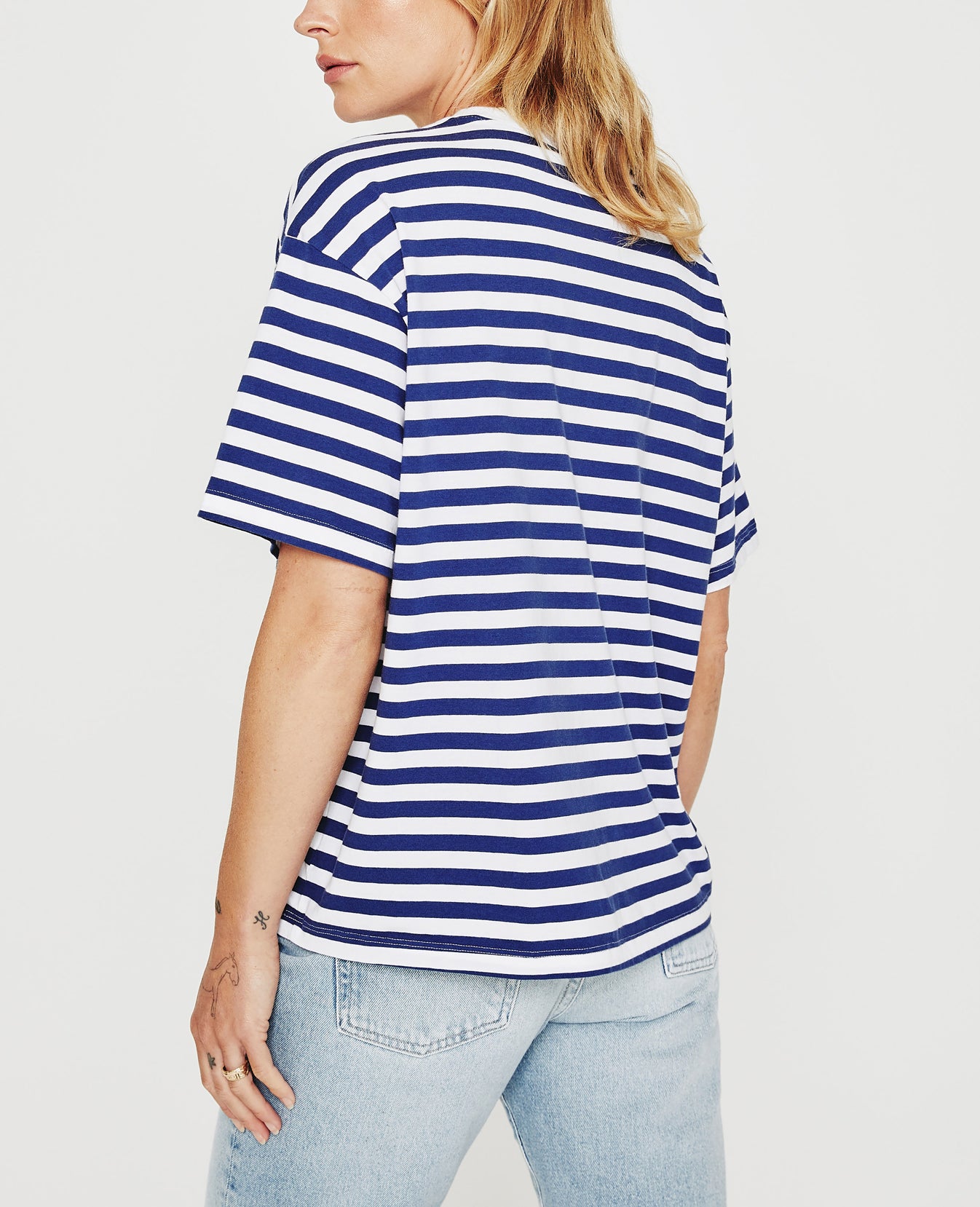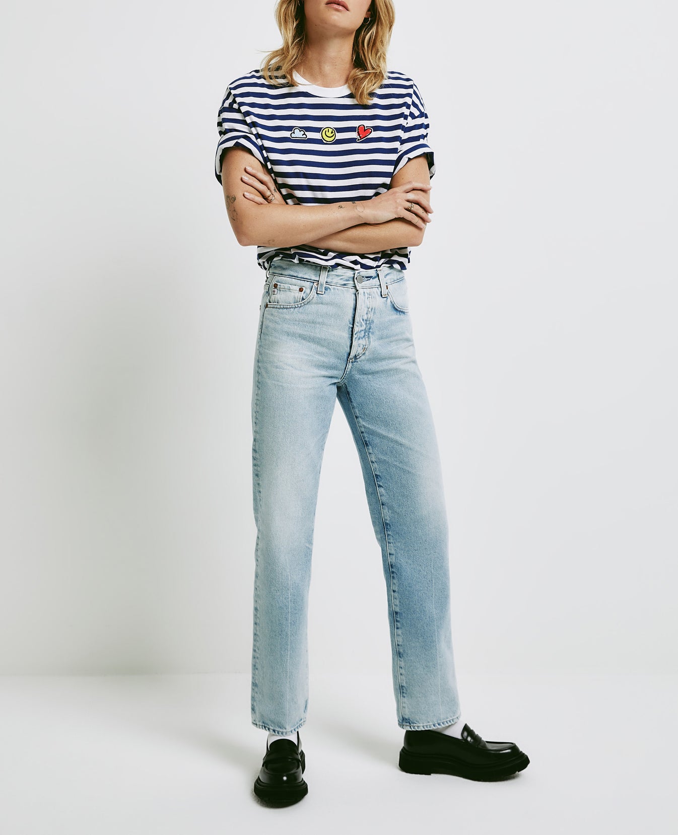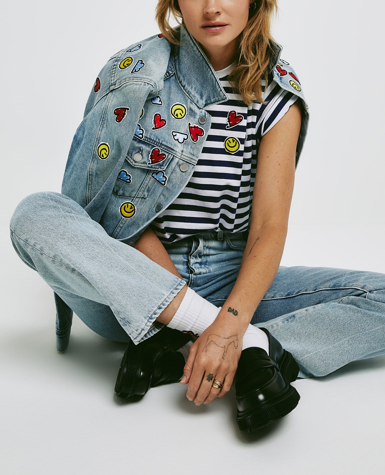 Part of our ALL THE FEELS collection, the Karter Ex-Boyfriend tee comes with a three-pack of iron-on patches so you can personalize the look. Soft and comfortable in striped cotton jersey, this women's tee has a relaxed, easy fit with a crew neck and drop-shoulder construction. Make it your own by adding the heart, smiley face, and cloud patches wherever you want.