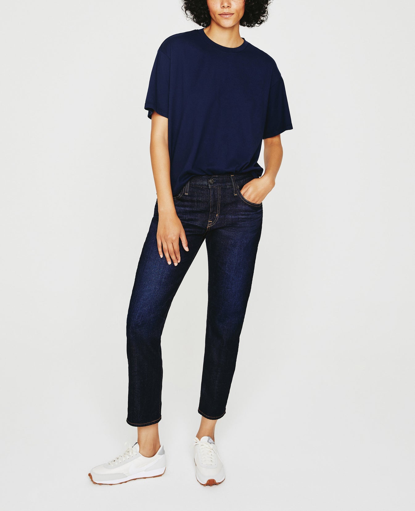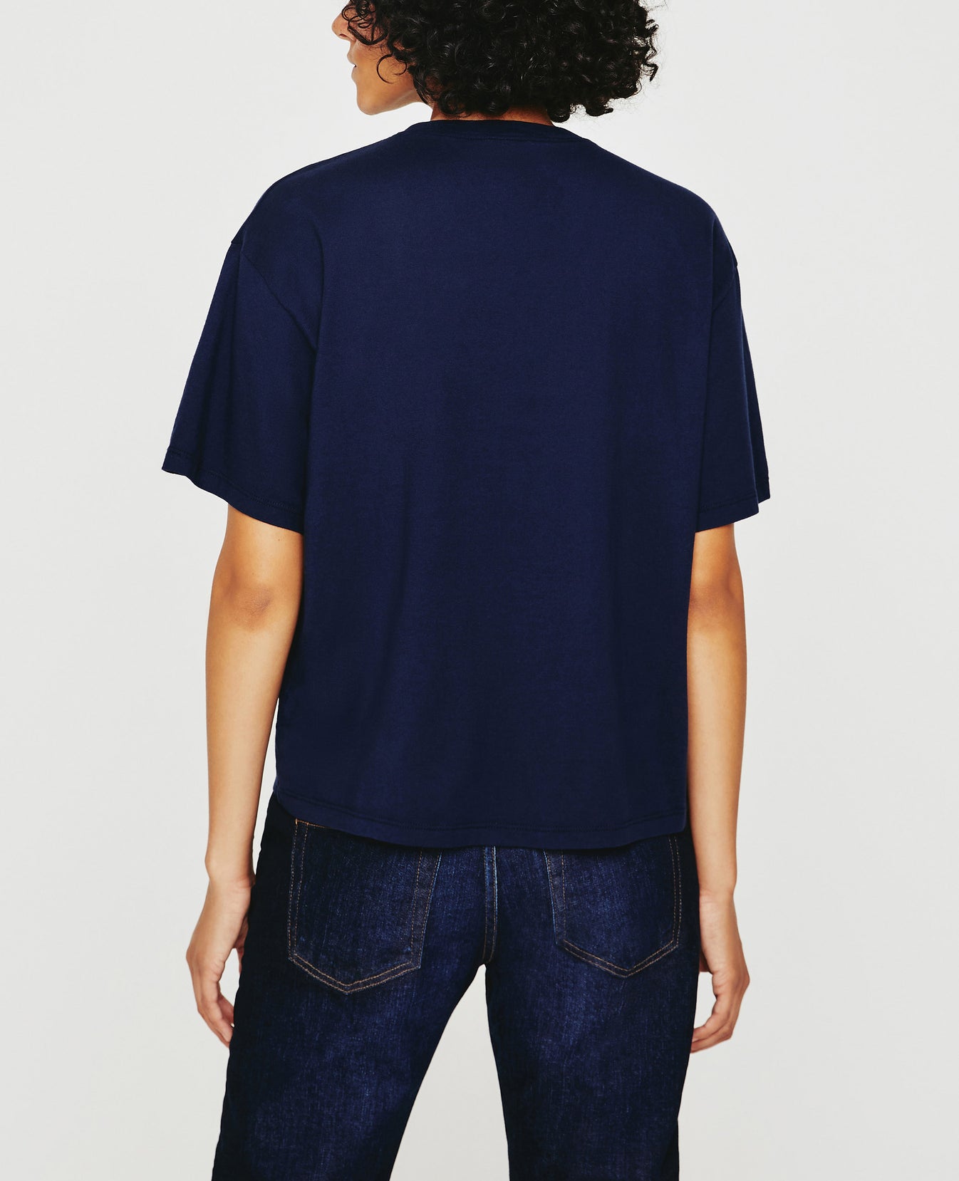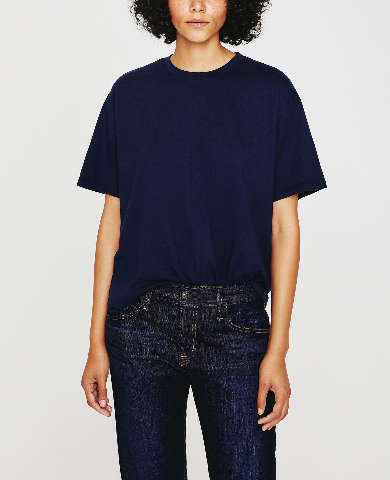 The Karter Ex-Boyfriend Short Sleeve Crew in navy is our first introduction to a relaxed fit short sleeve crew. Drop shoulders creates a modern, oversized take on the “borrowed from your boyfriend” look. Our Jersey Knit offers a luxurious comfort that is unrivaled—knitted with both S-twist and Z-twist yarn to sustain longevity and stability, preventing unnecessary twisting and torquing. During the production process, the S-twist yarn is spun counter-clockwise creating a right-handed twill. The Z-twist yarn works in opposition, spinning clockwise for a left-handed twill. This opposition—when working together—yields a softer, more durable fabrication and gives strength to the yarn making it more difficult to pull apart. Designed in 100% Cotton.