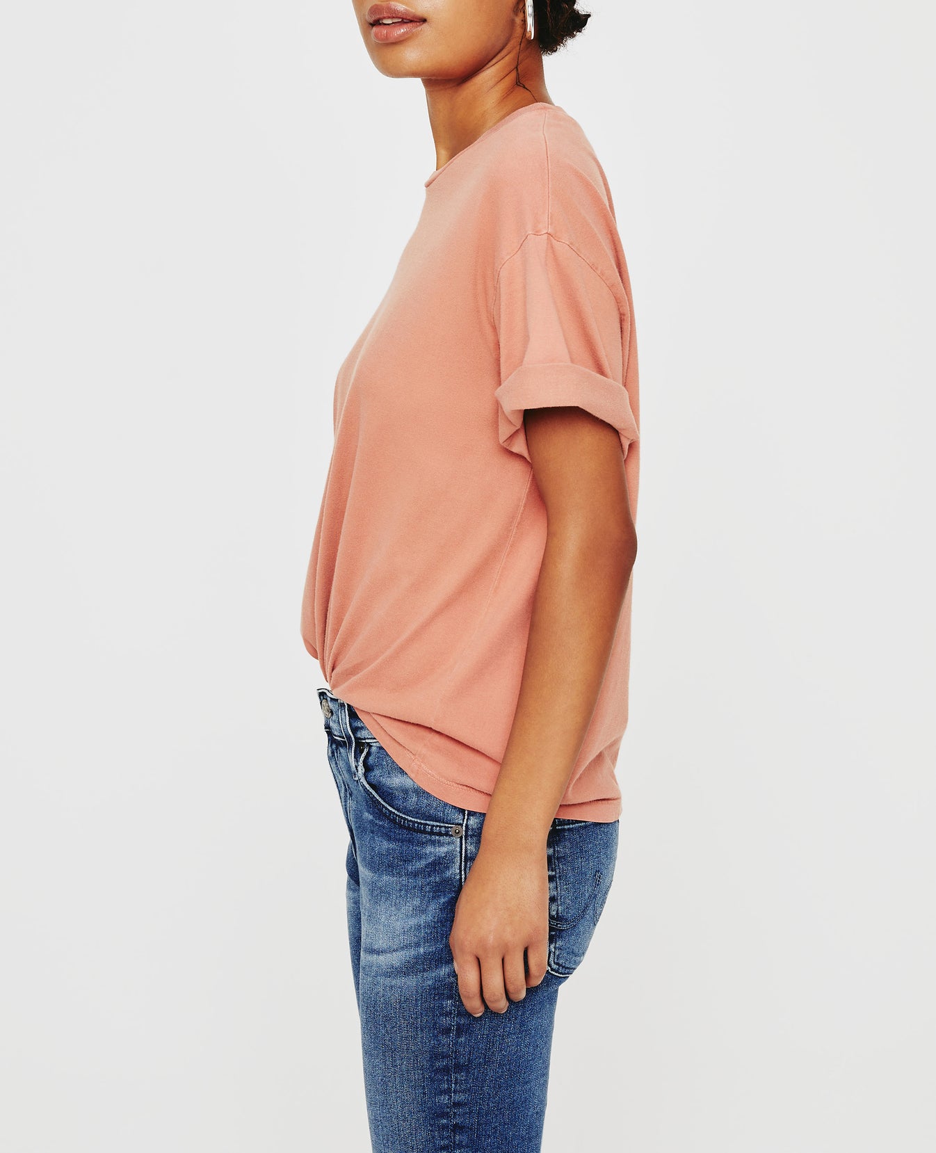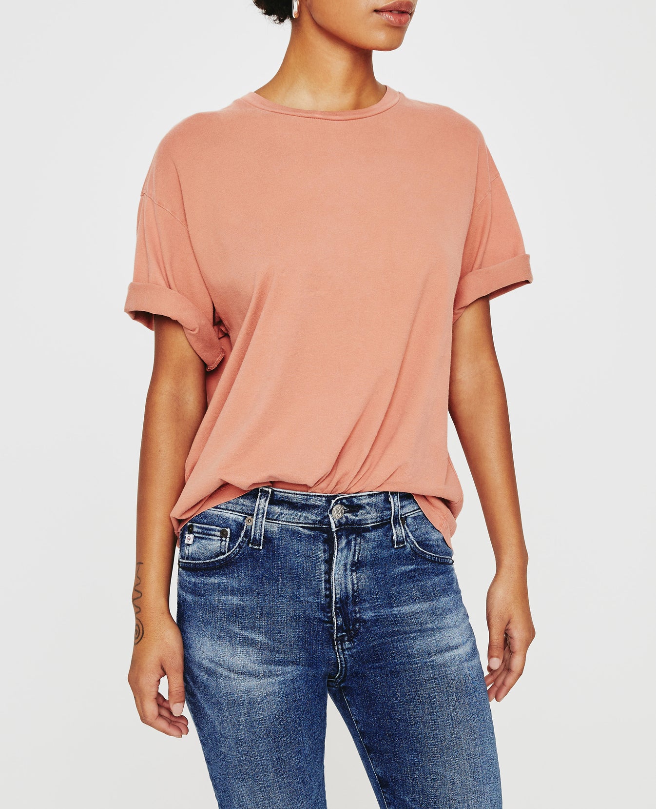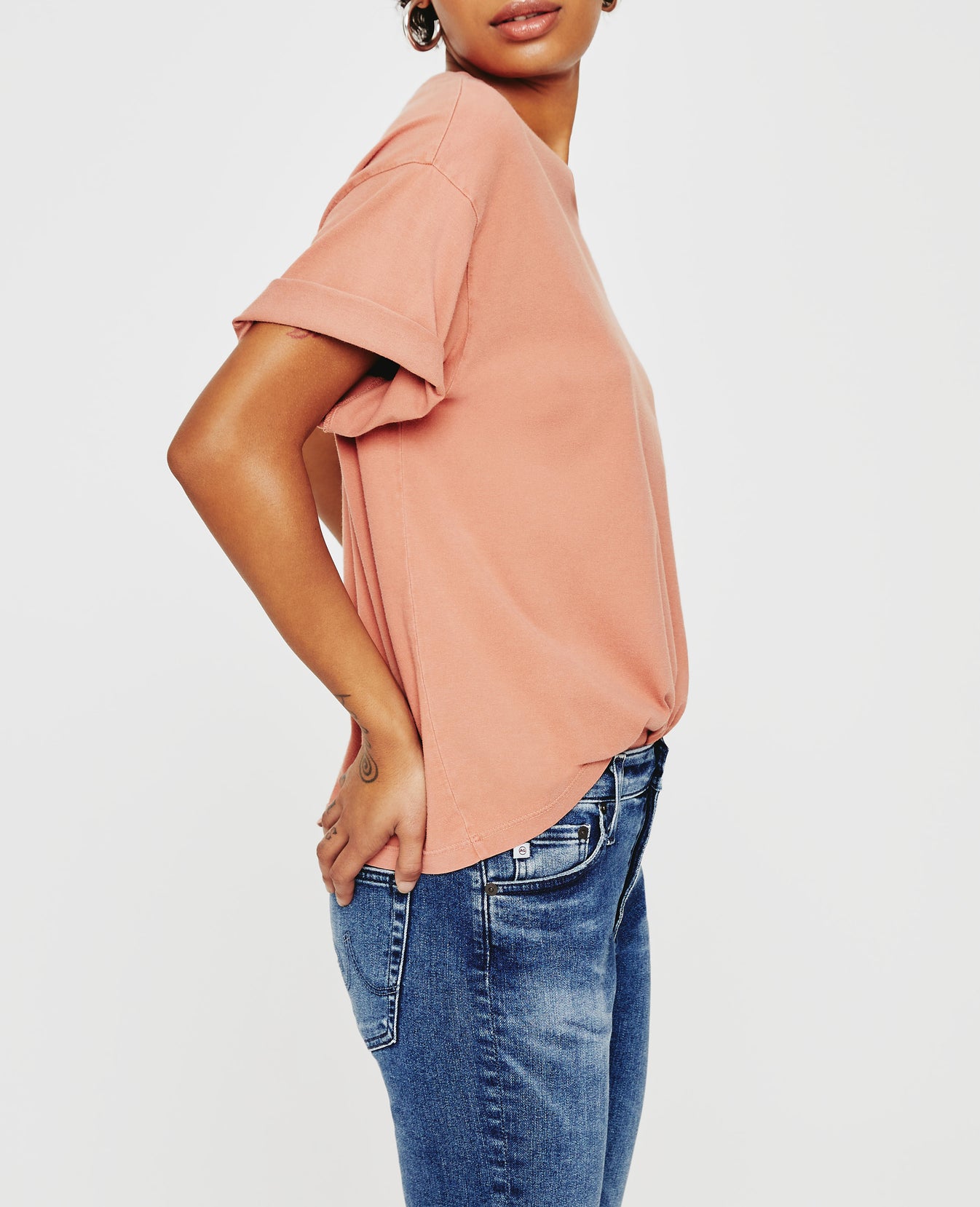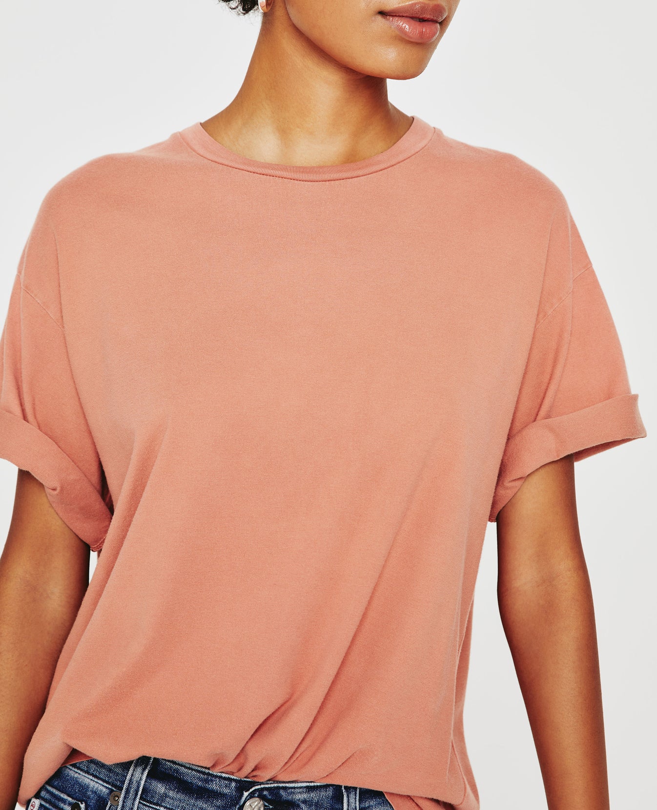 The Karter Ex-Boyfriend tee is a relaxed fit short sleeve crew for women, offered here in an antique pink. Drop shoulders creates a modern, oversized take on the “borrowed from your boyfriend” look. Our Jersey Knit offers a luxurious comfort that is unrivaled—knitted with both S-twist and Z-twist yarn to sustain longevity and stability, preventing unnecessary twisting and torquing. During the production process, the S-twist yarn is spun counterclockwise creating a right-handed twill. The Z-twist yarn works in opposition, spinning clockwise for a left-handed twill. This opposition—when working together—yields a softer, more durable fabrication and gives strength to the yarn making it more difficult to pull apart. Designed in 100% cotton jersey, it's lightweight, comfortable, and easy to wear.