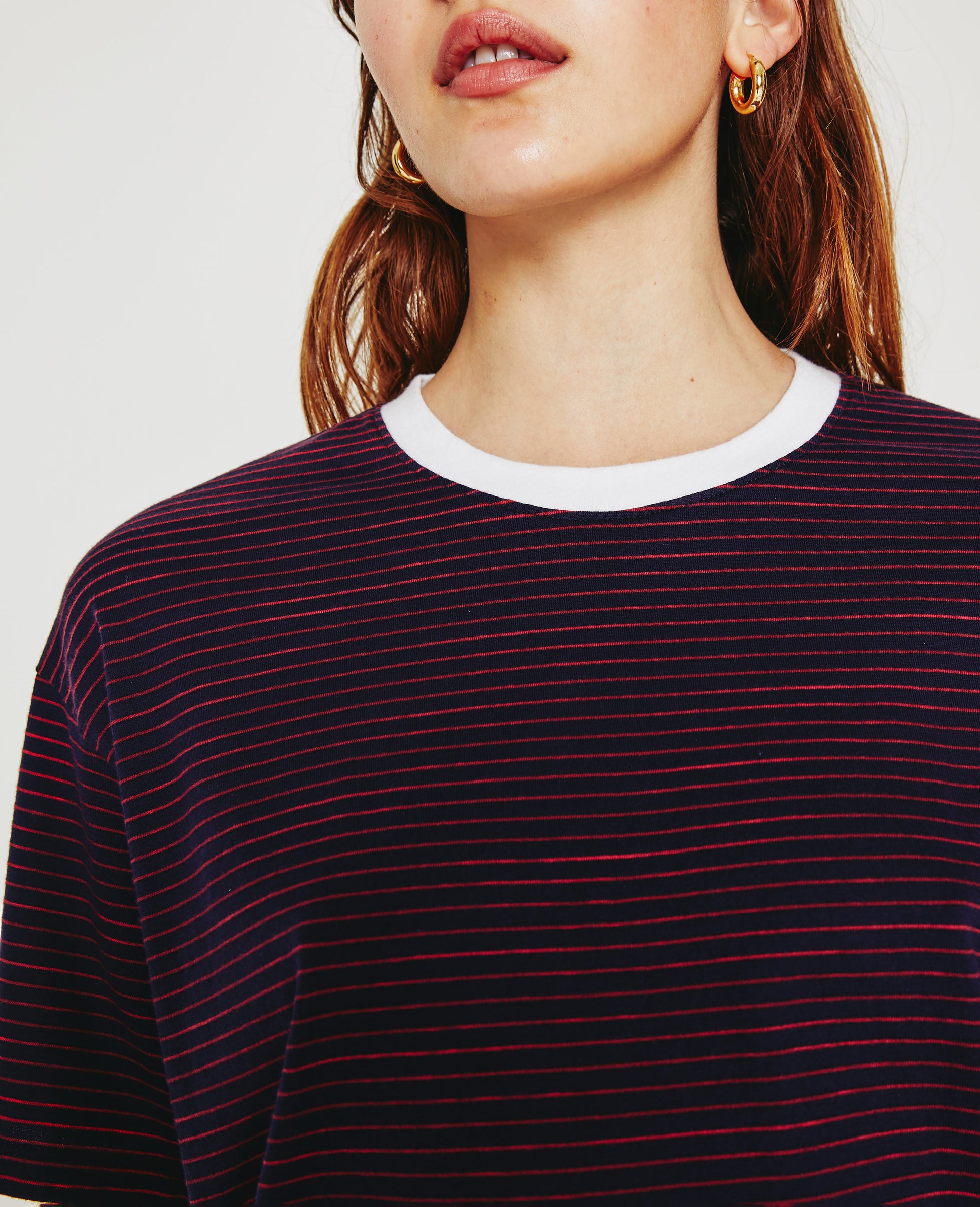 The Karter Ex-Boyfriend tee is a relaxed fit short sleeve crew for women. Drop shoulders creates a modern, oversized take on the “borrowed from your boyfriend” look. Our Jersey Knit offers a luxurious comfort that is unrivaled— to sustain longevity and stability, preventing unnecessary twisting and torquing.