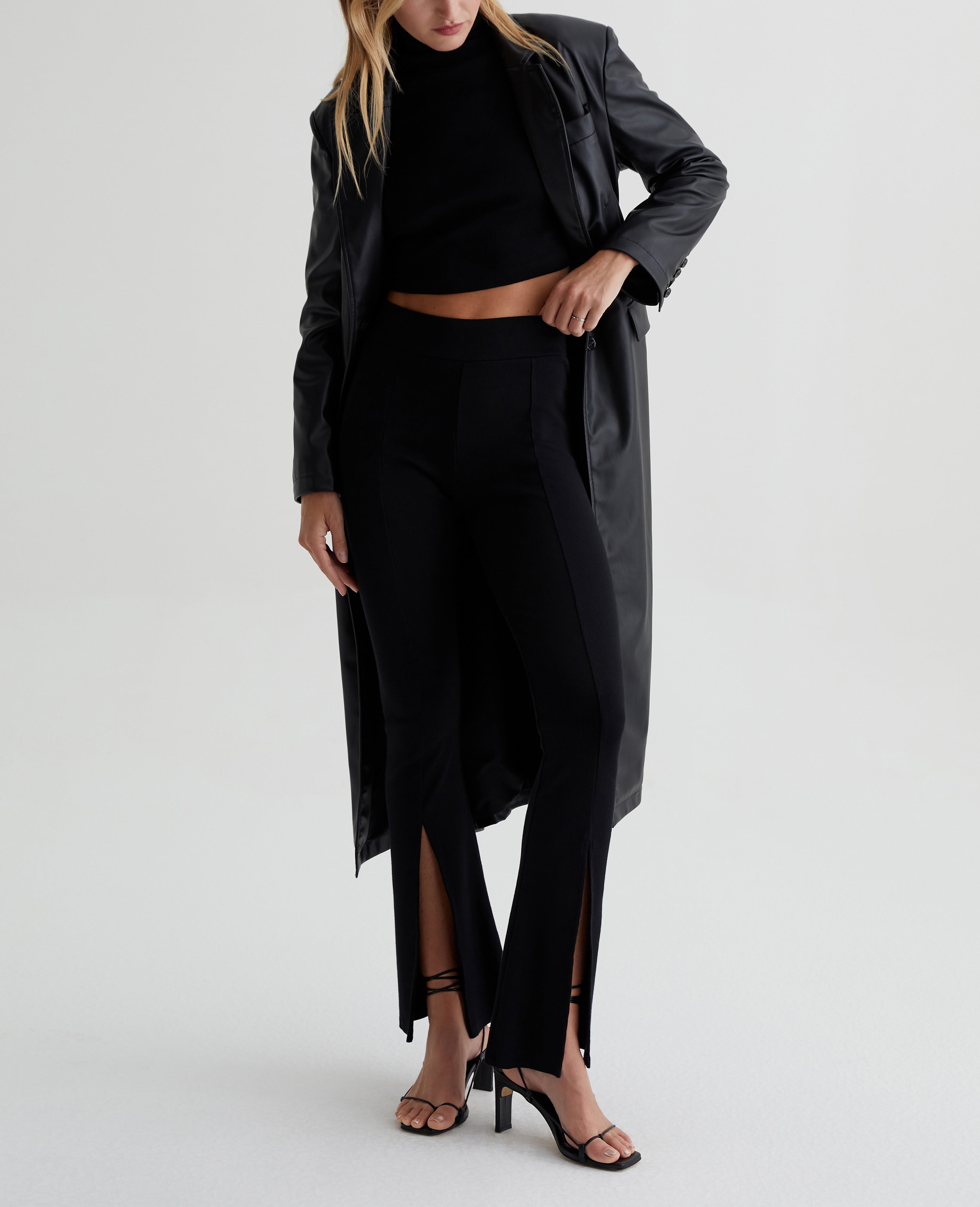 The EmRata x AG Kathryn top is a cropped long sleeve turtle neck exuding a romantic edge. This form fitted top is made of a comfortable cotton-blend heavy rib knit with exceptional wearability. The fashionable shape and lines of this midriff-baring top pairs well with classic denim or as a complete look with the matching flare pant in the same fabric. Specially designed in partnership with Emily Ratajkowski, drawing inspiration from the languid ease of city dressing and her iconic style. Mix and match the EmRata x AG capsule for easy elevated pairings.