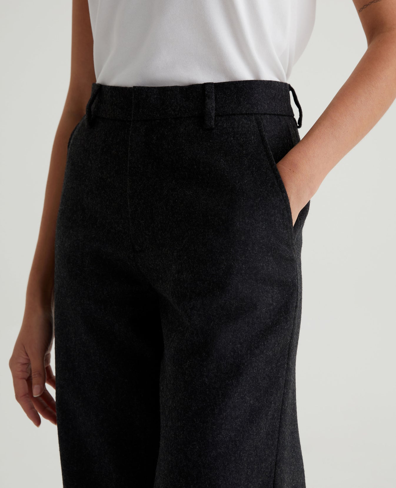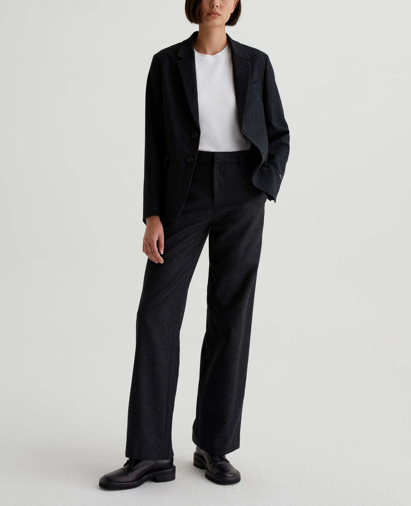 Kerra is a true straight trouser with a defined waist that gives it a feminine shape. Made from Italian Mélange Wool Twill, the pair comes in charcoal grey and features pared-back styling with tailored pockets and hidden closures. Wear it with our matching blazer or dress it down with a tee and sneakers.